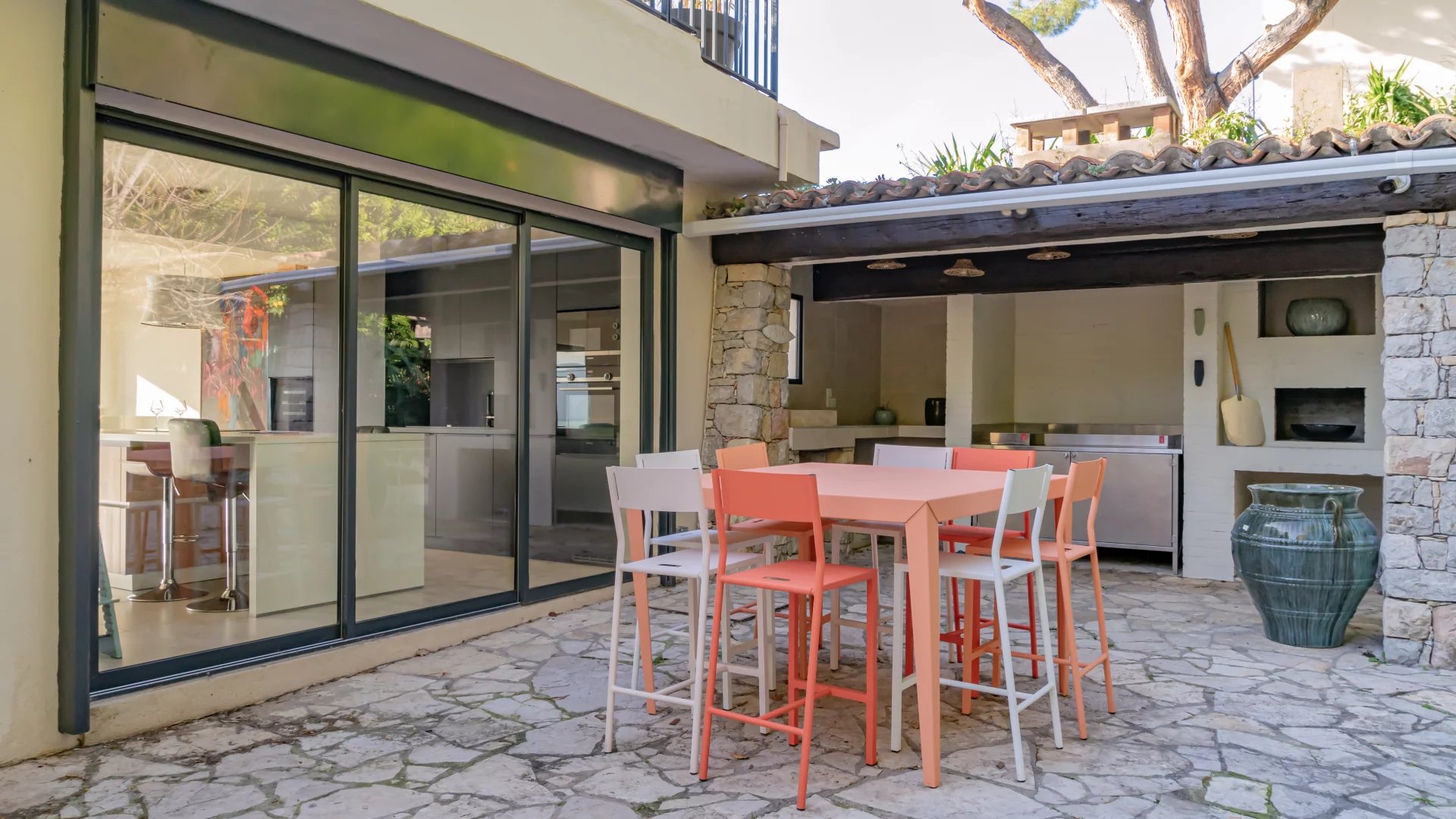 - East-facing terrace with summer kitchen.