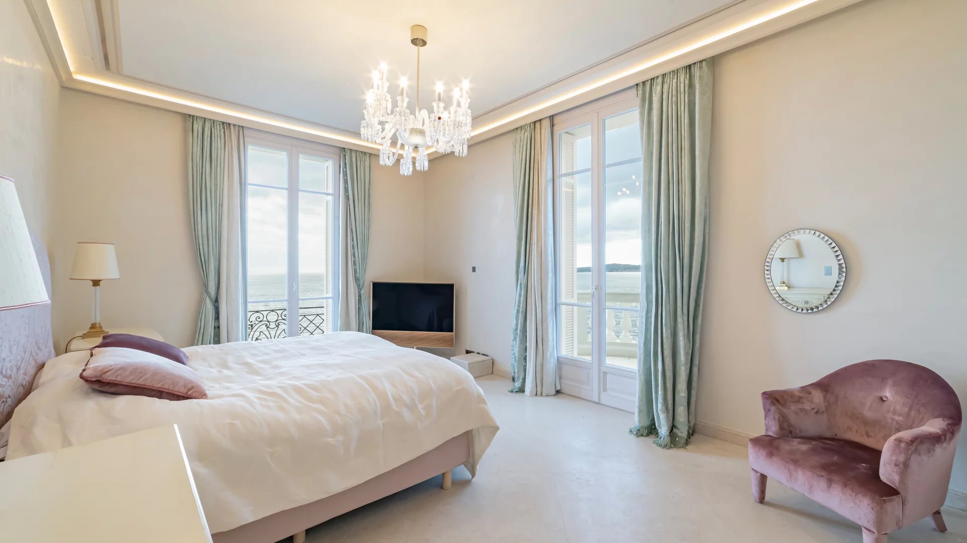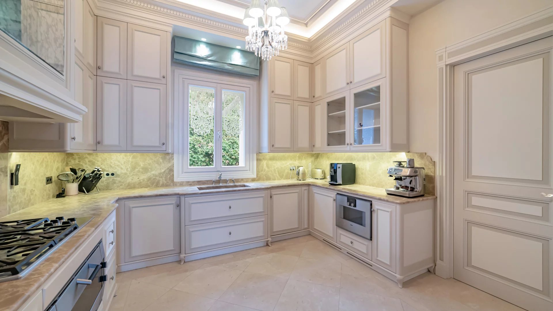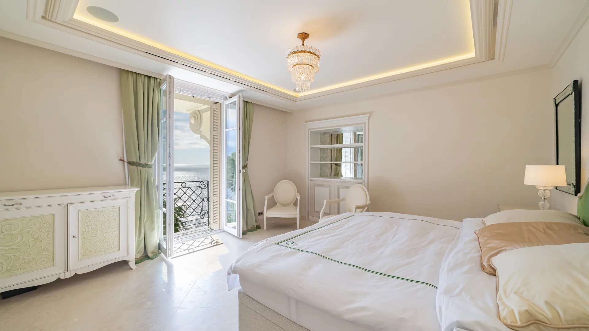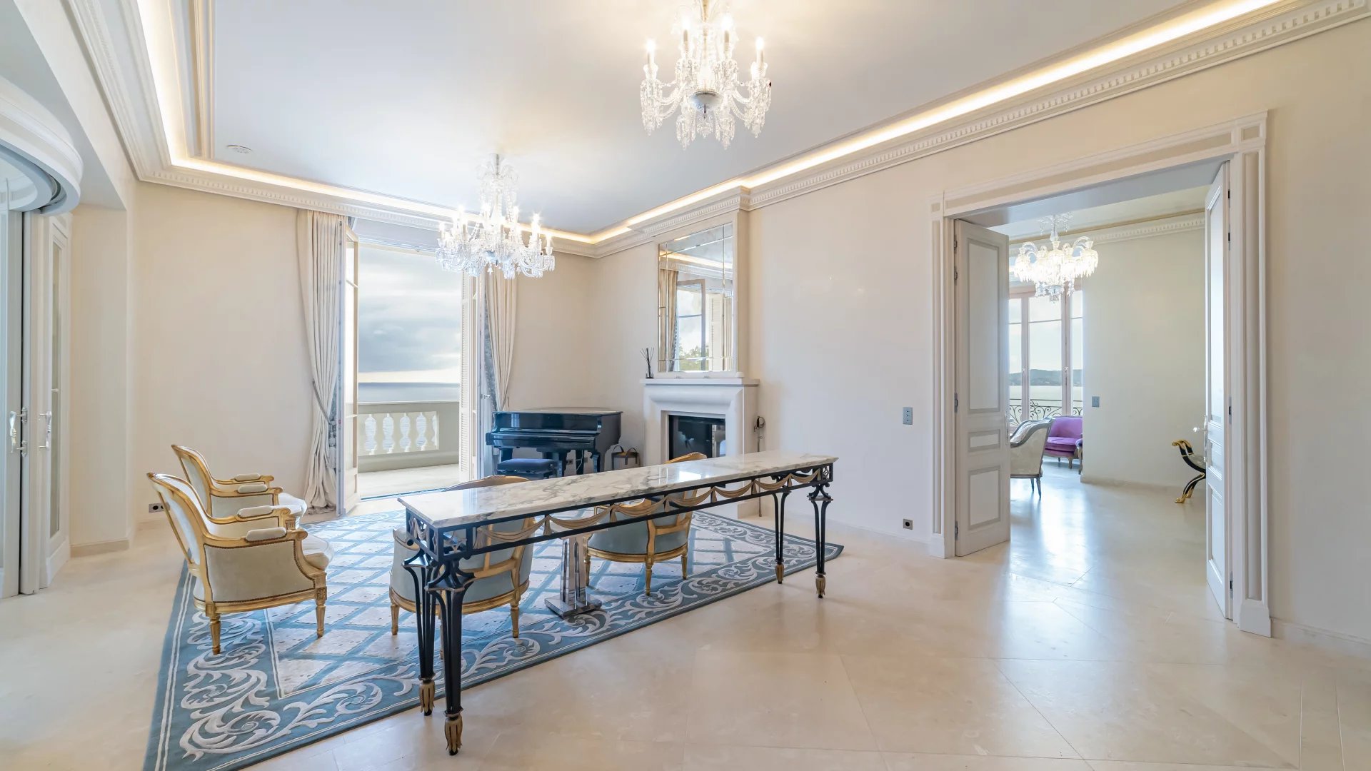Two living rooms, two dining rooms offering a very elegant living space, an office, 7 en-suite bedrooms with sea-view dressing rooms, including a very beautiful master bedroom with terrace. Two kitchens, including a professional kitchen, a cinema room, a games room, a wine cellar, a gym, a sauna, a summer kitchen, all set in a 1200 m2 garden with panoramic sea views.
