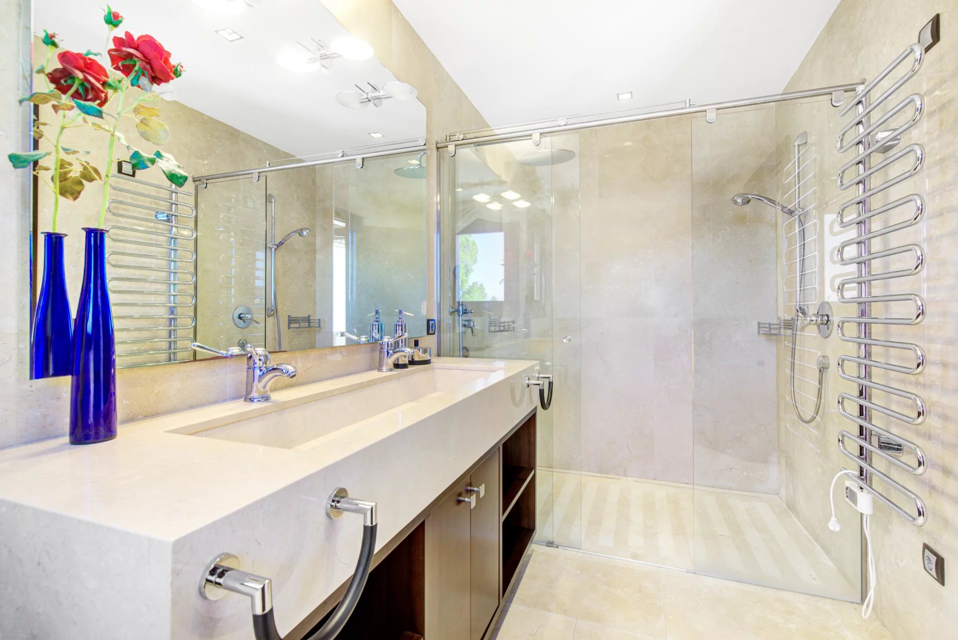 This spacious villa with wonderful sea views is located on an unusually large plot for the coveted Cas Catalá area and is a paradise especially for sports lovers and in general for a large family that enjoys outdoor activities. Apart from spacious terraces and a large heated pool, the property is completed with a tennis court that can also be used to practice other sports.