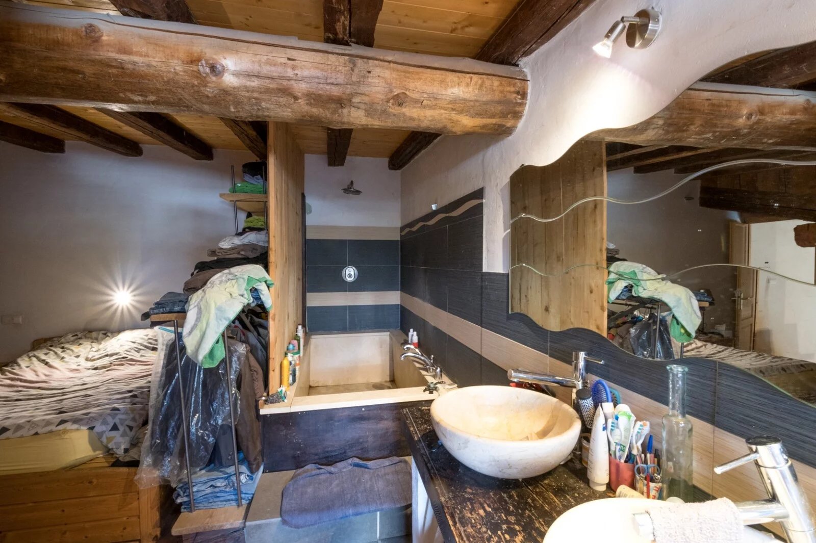 The small south-facing adjoining plot and the view of the Massif are assets for this village farmhouse.