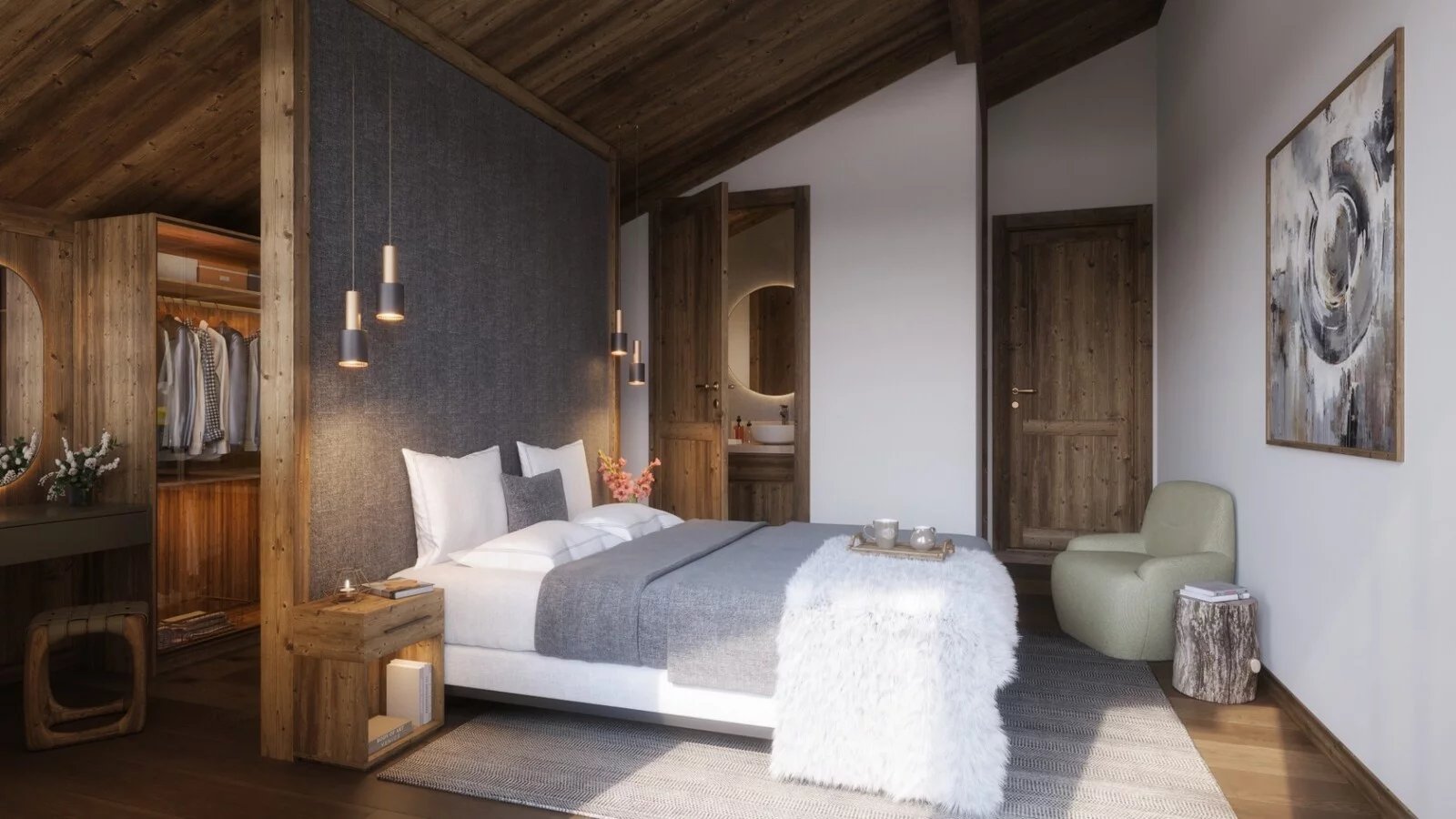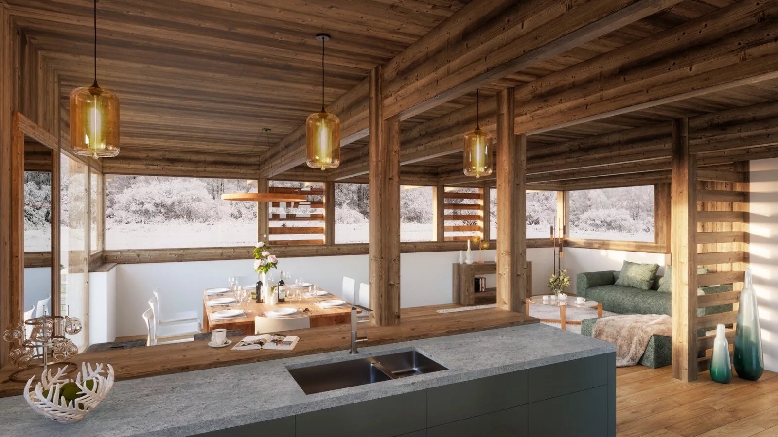Magnificent modern chalet of about 138 m2 delivered rough, built on a land of about 453 m². It is composed of a large open living room, 4 bedrooms en suite, a garage and a ski room.