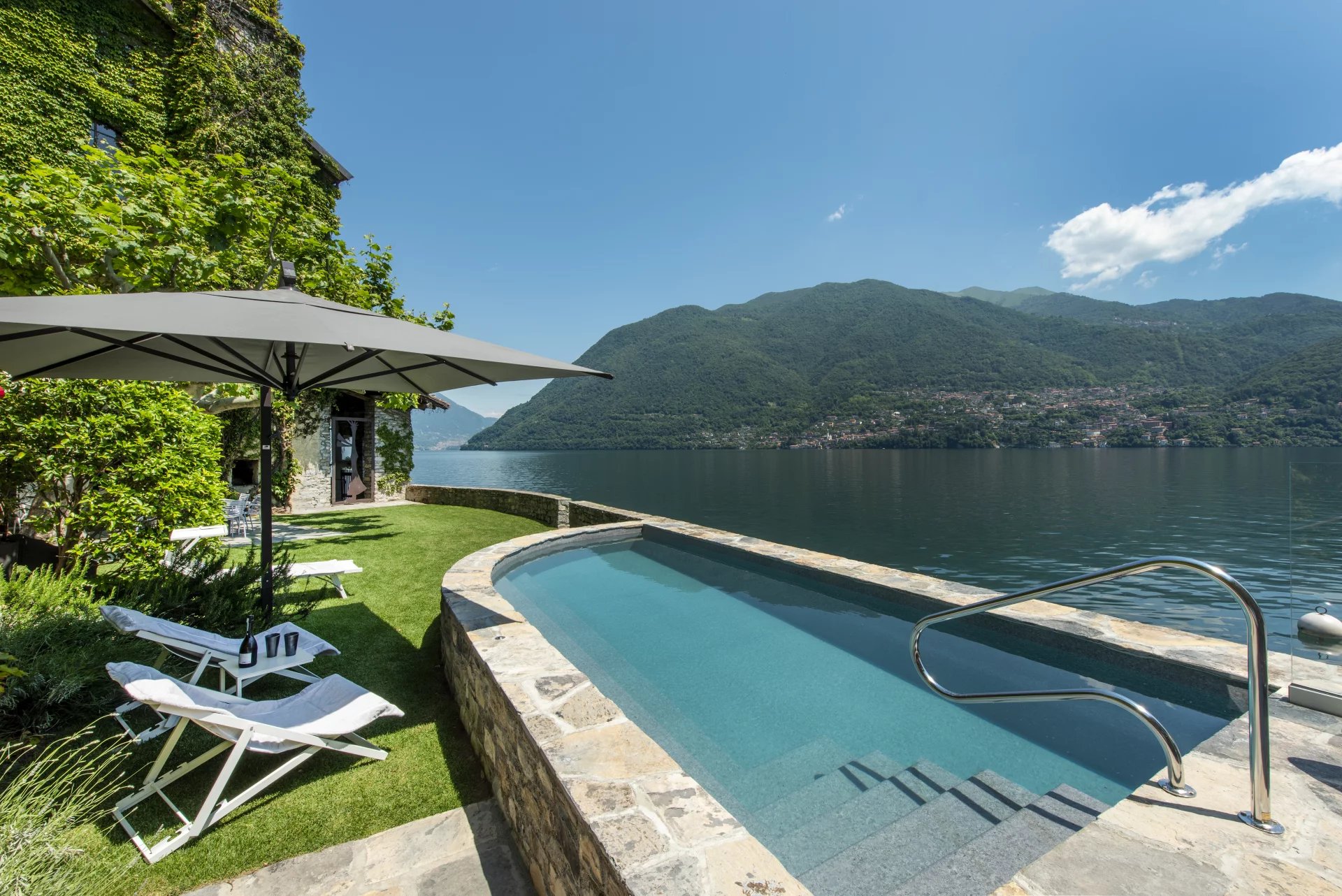 Learn moreThe particular design of La Filanda is based on stone walls, vaulted ceilings and a succession of windows that offer a spectacular view of the lake. The property is spread over three floors for over 700m2. On the ground floor we find a large kitchen, dining room, double large living room, large tavern with wood-burning fireplace. From the long stone porch on the lake shore you access the garden of approx. 200 sqm.with swimming pool which leads to the private dock. The first floor consists of 4 bedrooms, 3 bathrooms and walk-in closet. On the second floor we find a 200 sqm. ballroom/loft with a beautiful lake view and 9 meter ceilings.