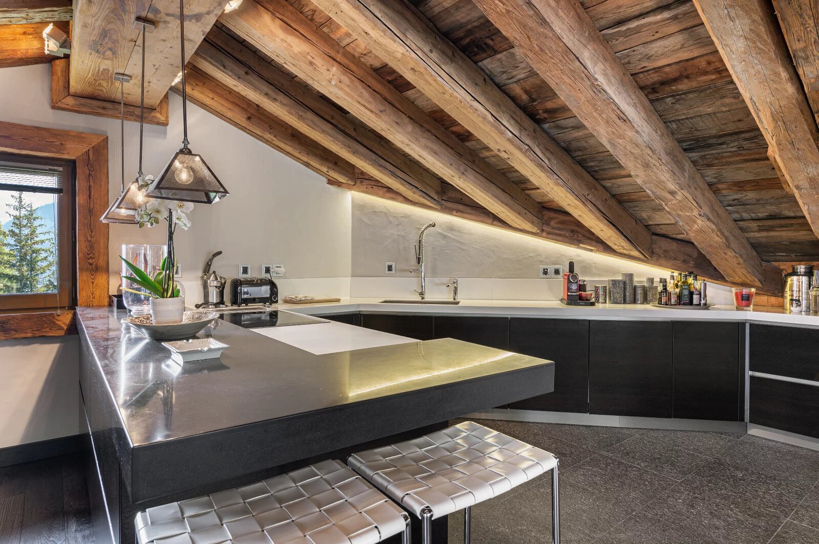 Prestigious chalet located at the foot of the ski slopes. It benefits from an exceptional view of the Vanoise summits. With a surface area of 277 sqm of living space, the chalet has a traditional architecture with a strong presence of wood. It includes a large living room, four bedrooms with bathrooms, a garage, a cellar and a ski locker