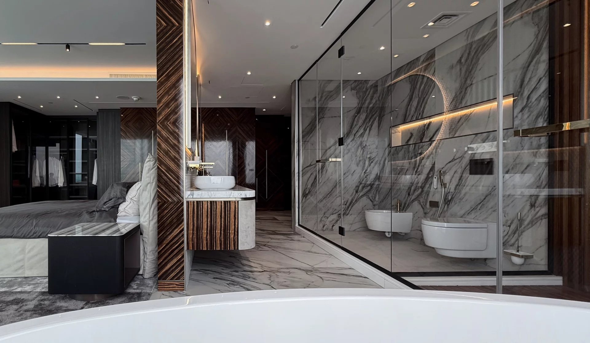 Master suite with a large wardrobe and a sea-facing bathroom