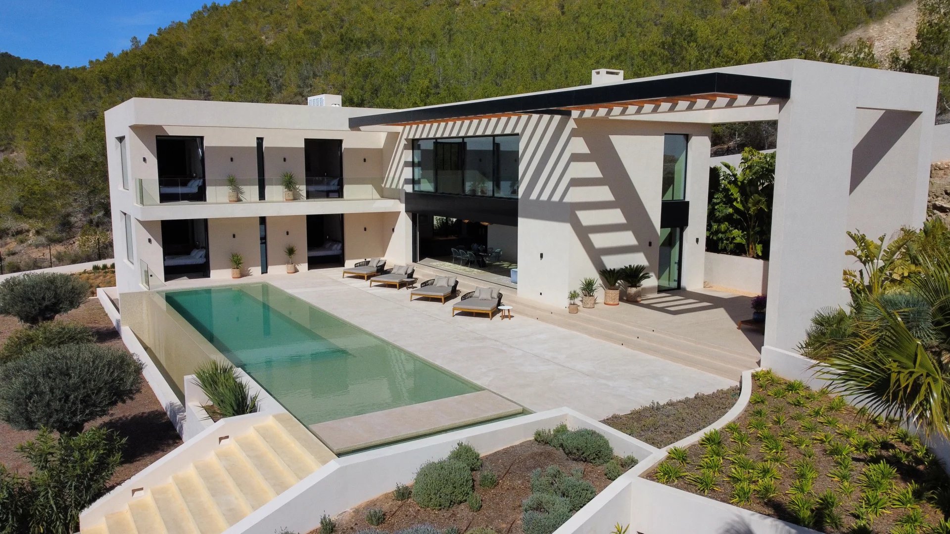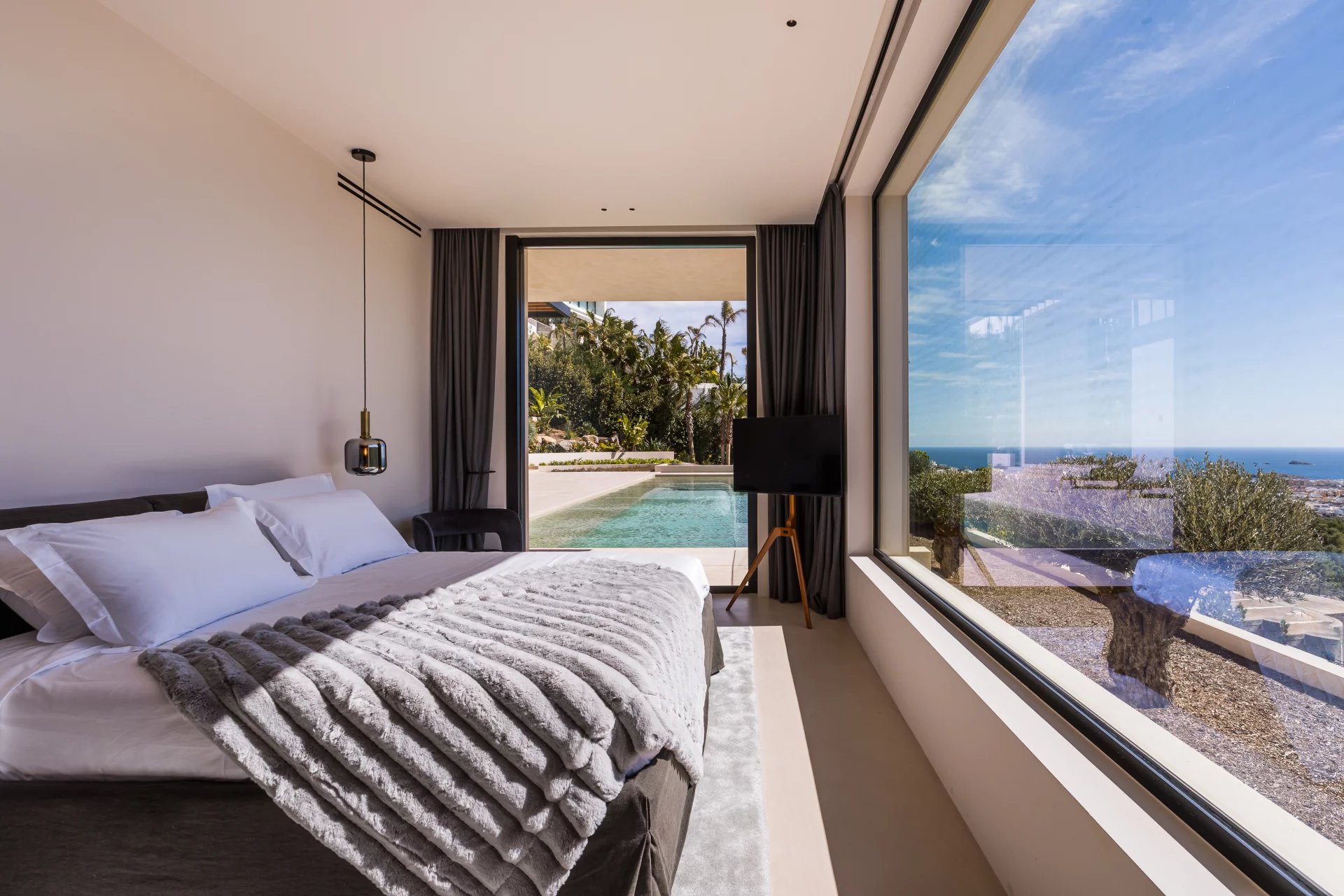 Luxury modern style villa of new construction, in an exclusive neighbourhood close to Ibiza town, magnificent views to the sea and Ibiza town.