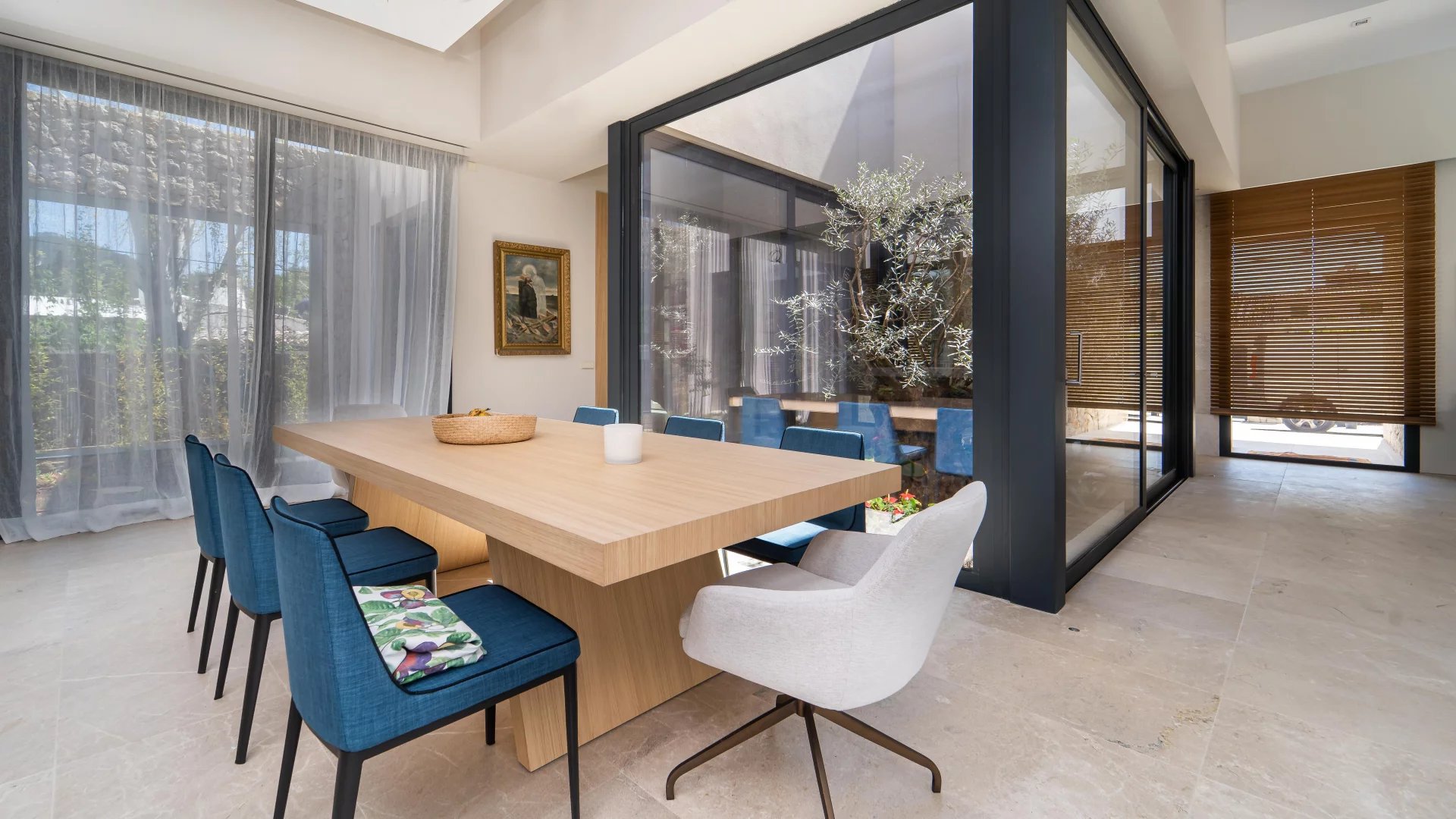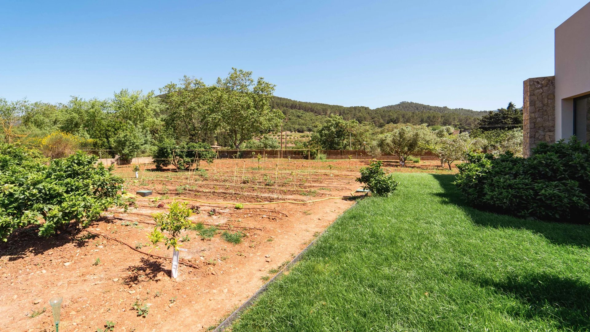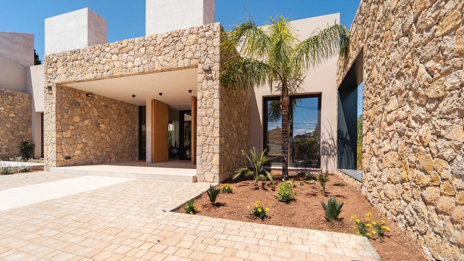 This new build Country house is located just 10mins from Palma. It's stunning architecture, floor to ceiling windows and open plan lay-out assures the maximum of design, natural light and absolute comfort. The main living area revolves around a central atrium with internal garden and consists of 4 bedrooms with bathrooms ensuite, living room with fireplace, fully fitted kitchen, pantry, wine celler, home office, guest cloakroom and lavatory, laundry room, private gym and garage parking, including two electric chargers. The entire interior area offers access to the exterior terrace area including B.B.Q. and Paella dedicated areas. The splendid garden includes both fruit trees and a vegetable patch. The property comes complete with the latest technology including underfloor heating, central A/C, alarm system, home automation system, integrated sound system. The property will be sold completely furnished and ready for its new owners to move in with everything ready to enjoy.