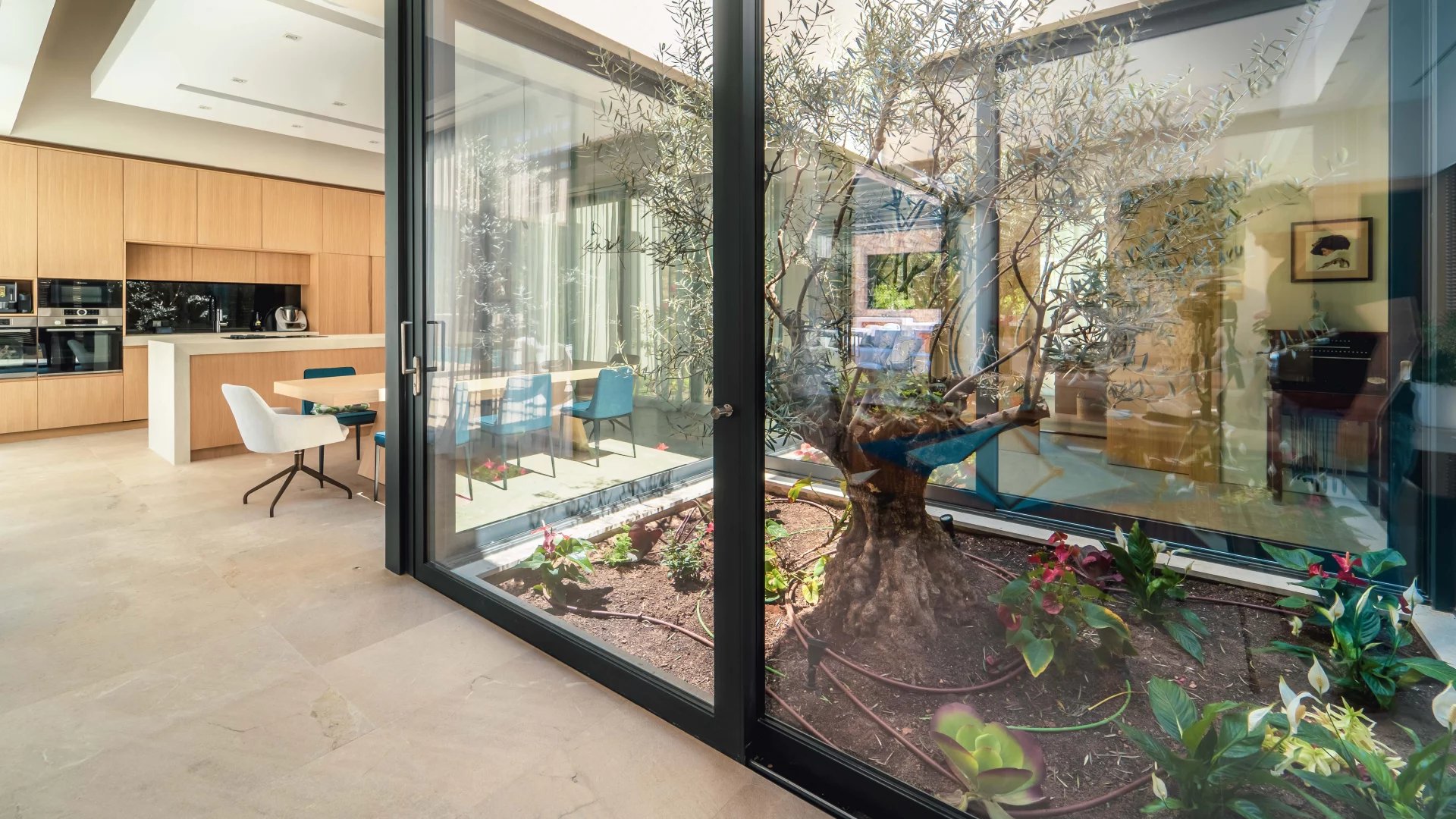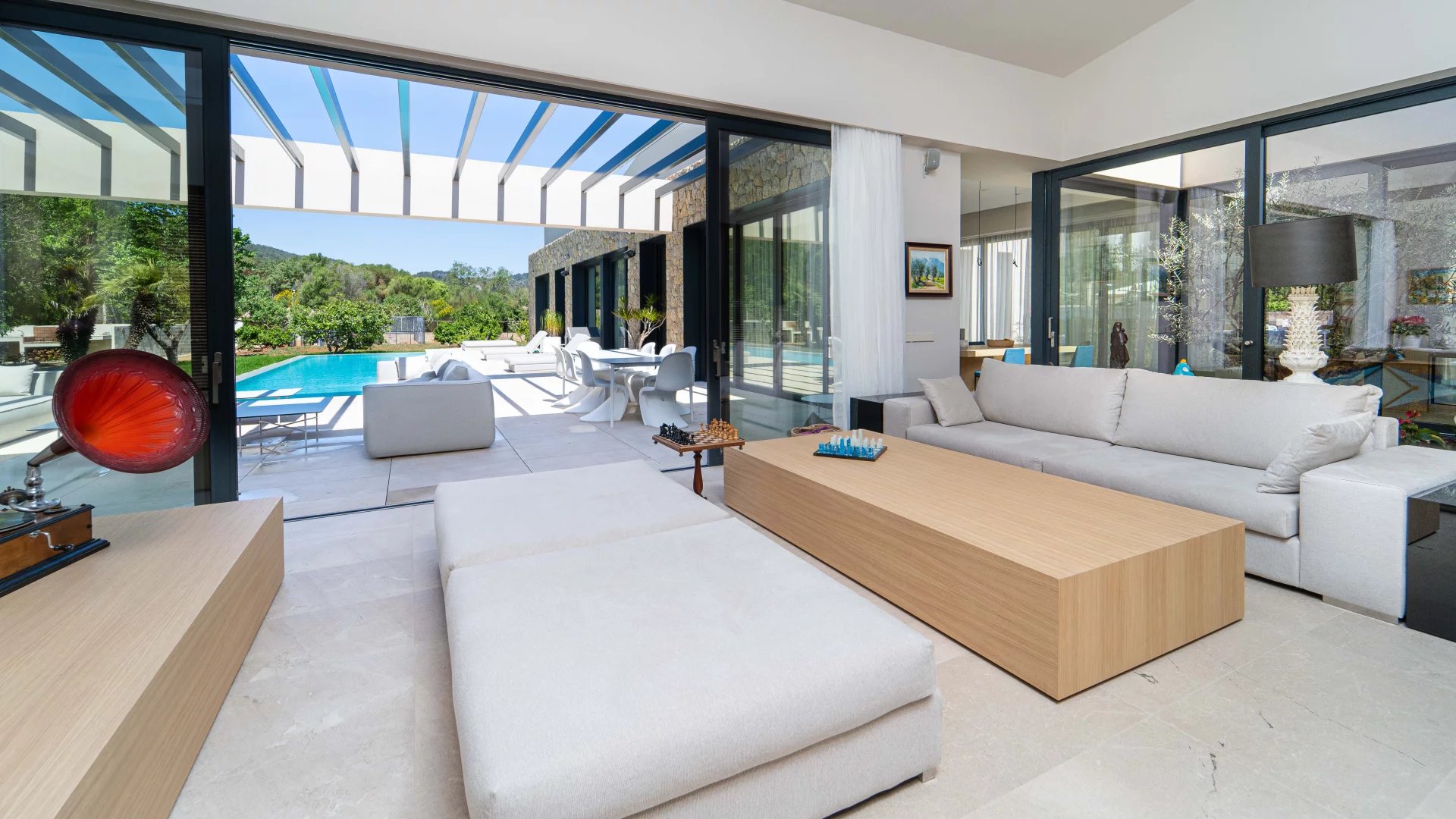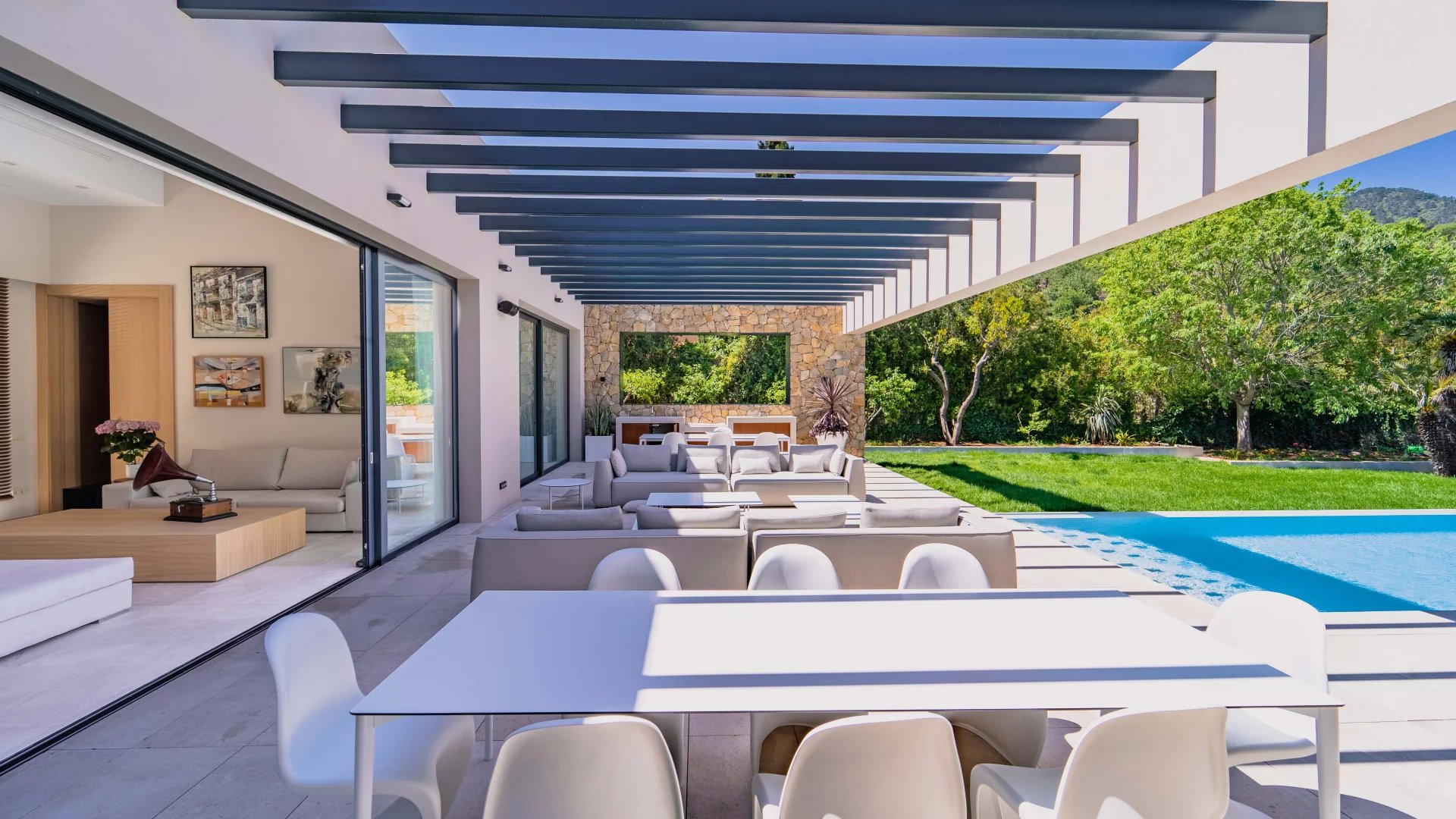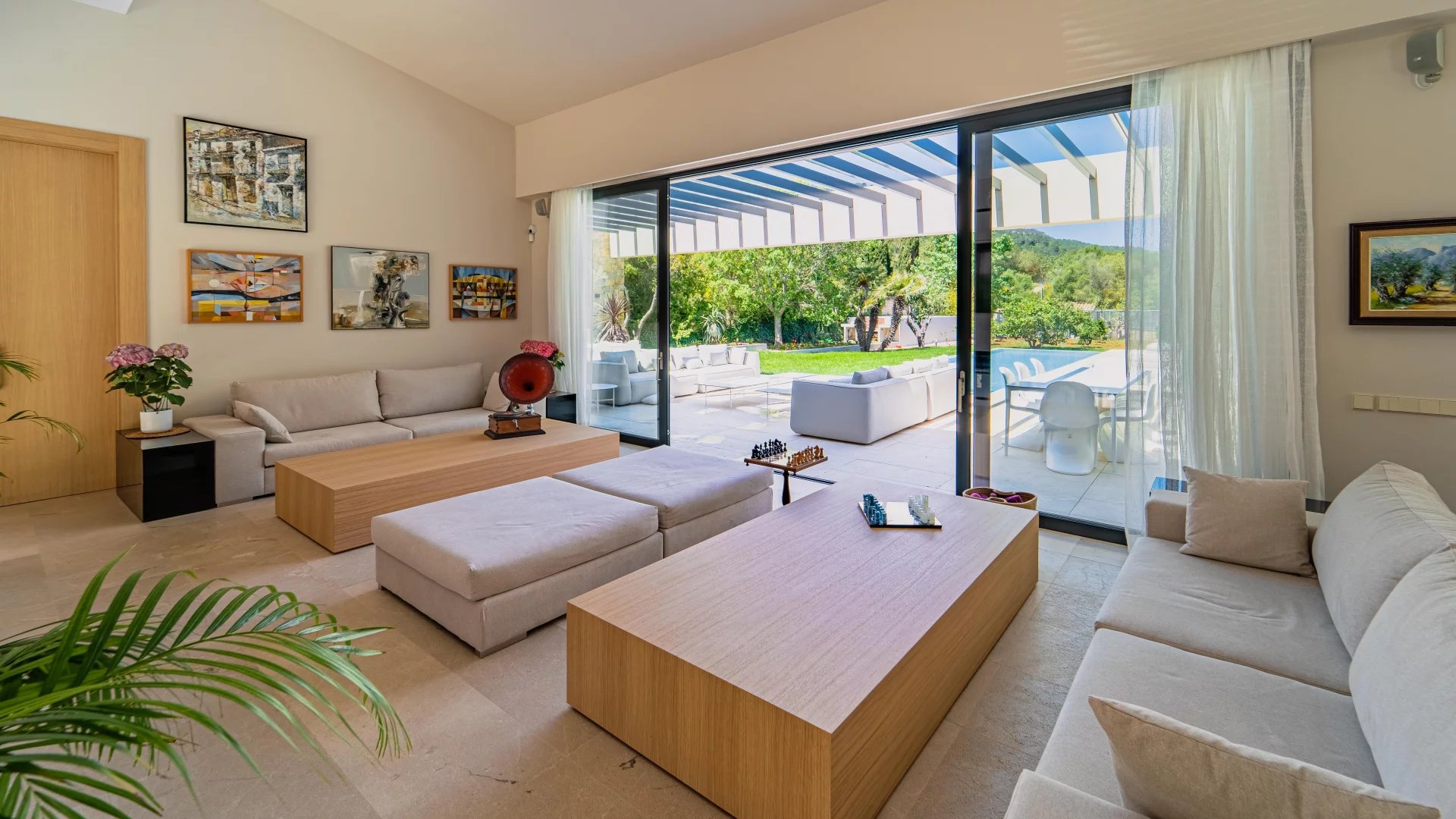 This new build Country house is located just 10mins from Palma. It's stunning architecture, floor to ceiling windows and open plan lay-out assures the maximum of design, natural light and absolute comfort. The main living area revolves around a central atrium with internal garden and consists of 4 bedrooms with bathrooms ensuite, living room with fireplace, fully fitted kitchen, pantry, wine celler, home office, guest cloakroom and lavatory, laundry room, private gym and garage parking, including two electric chargers. The entire interior area offers access to the exterior terrace area including B.B.Q. and Paella dedicated areas. The splendid garden includes both fruit trees and a vegetable patch. The property comes complete with the latest technology including underfloor heating, central A/C, alarm system, home automation system, integrated sound system. The property will be sold completely furnished and ready for its new owners to move in with everything ready to enjoy.