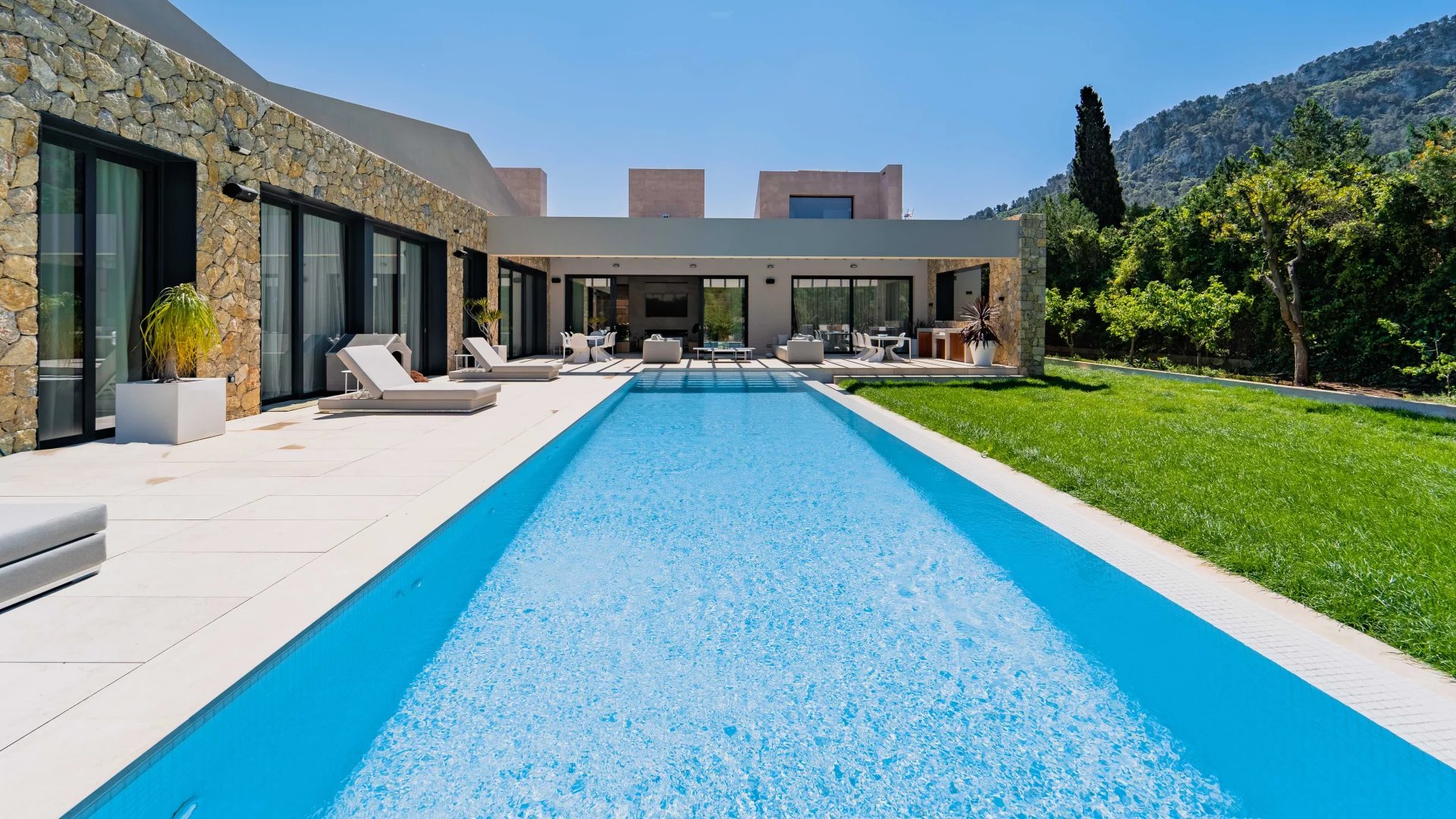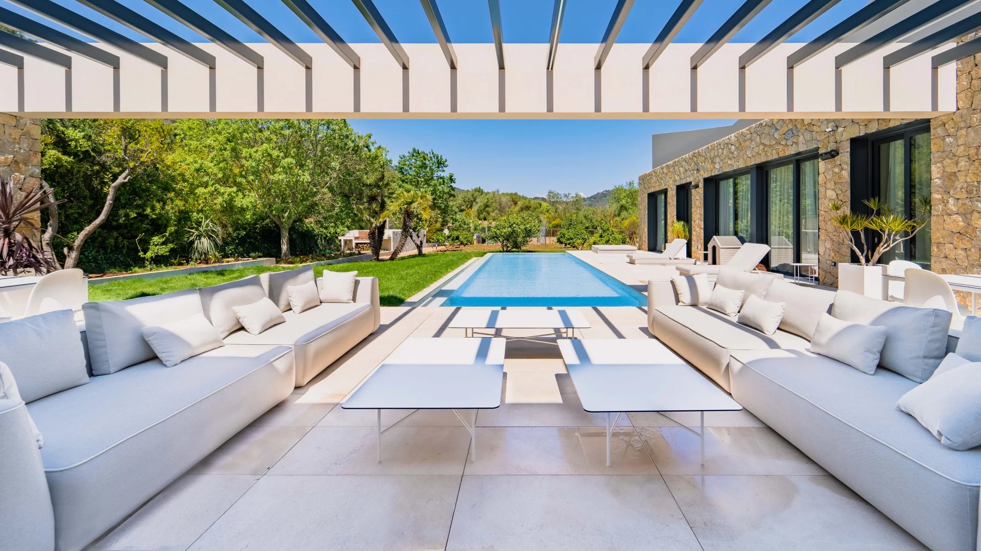 Esporles is a mountain village located in the Sierra de Tramuntana, in the west of Mallorca. It retains much of its original charm with typical Mallorcan houses with stone facades, winding streets and it also has an excellent infrastructure and a good access to the motorway network and major services. In this green and serene place one can find impressive fincas – new built and many dating back a few hundred years – with big plots of land and beautiful views of the mountains. Some are lived in all year round where some are solely summer residences. Most charateristic for these country houses is a covered terrace and pool area where most of the time is spend in the summer months.