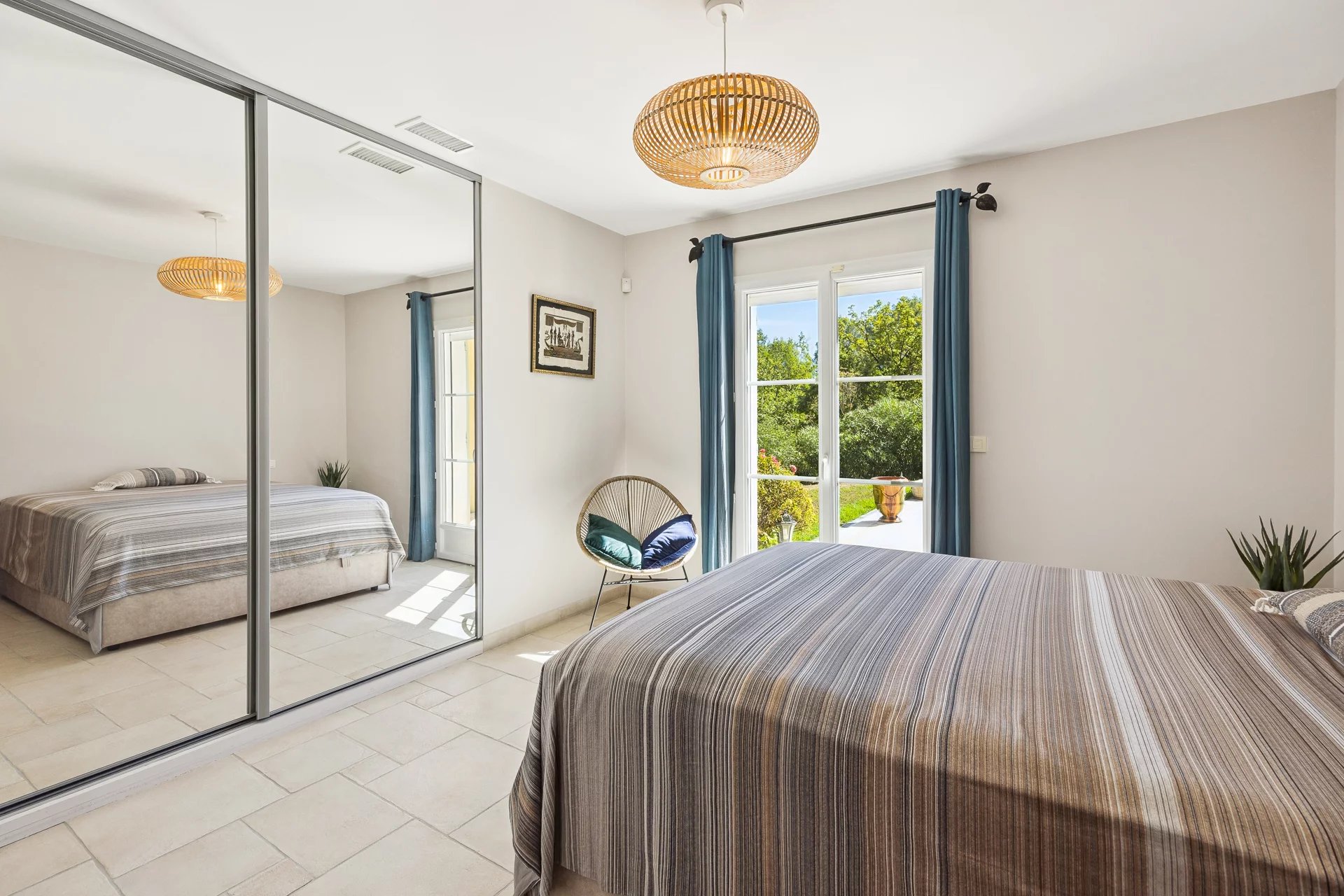 Located in a highly sought-after area close to the charming village of Fayence, it extends over a landscaped and wooded plot of 4,600 m², and offers a spacious single-storey main villa of approximately 220 m², as well as an independent two-room guest house, perfect for hosting family and friends.