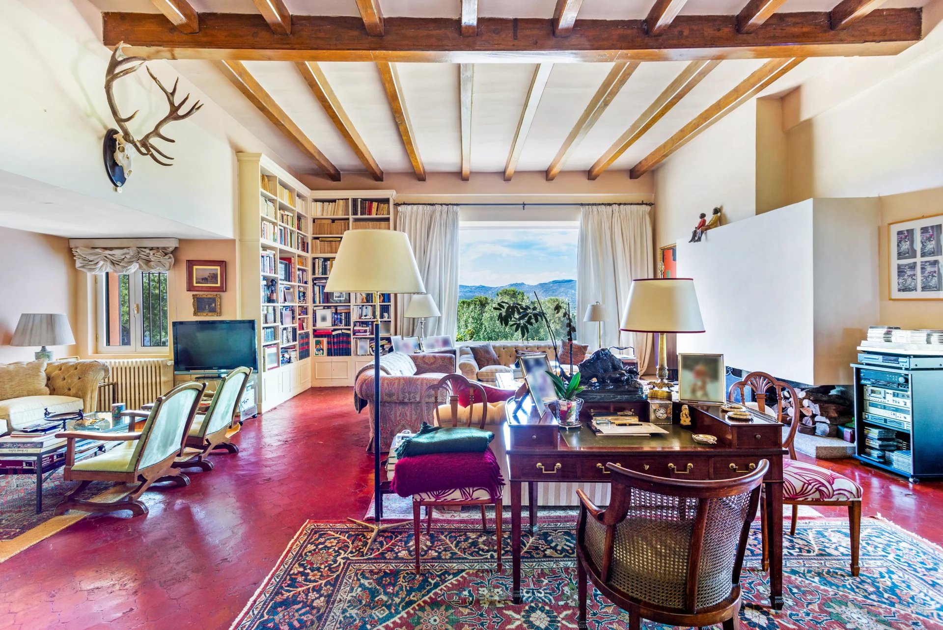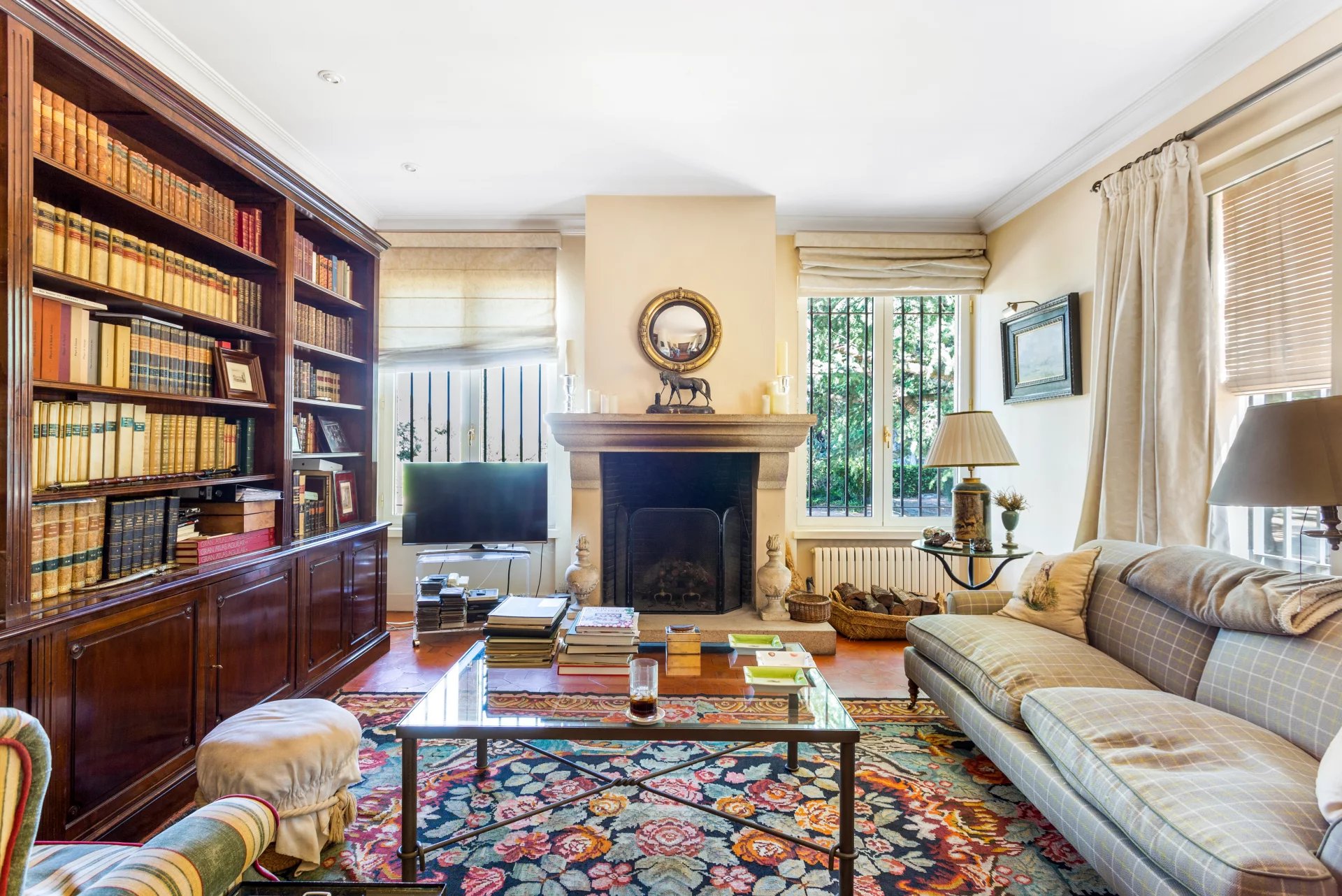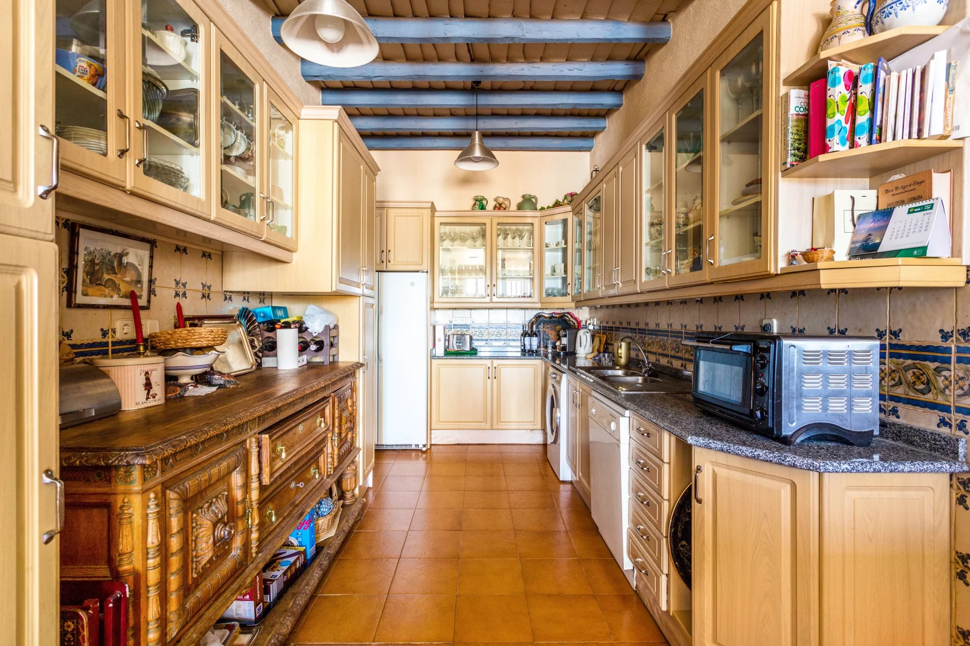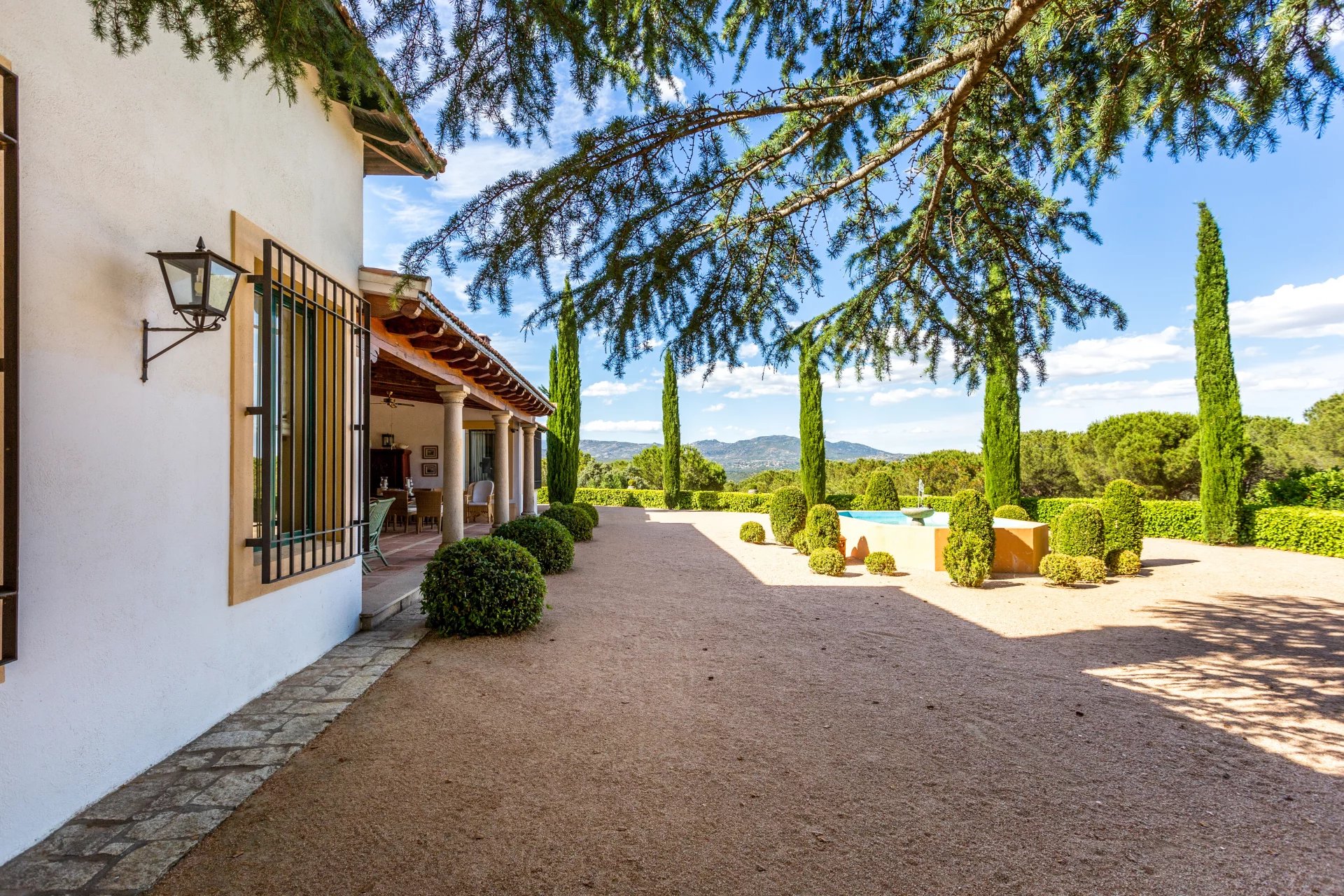 Main house: Upon entering the property, we are greeted by a fabulous porch that invites you to rest, peace and tranquility, undoubtedly one of the most desired places in the house for its orientation, its freshness and the sound of water falling into the fountain located in the garden. We access the interior of the house, through a welcoming hall that leads to the living room (90m²) with fireplace distributed in several rooms. This bright and intimate area is equipped with large windows that flood the room with light and offer unbeatable views. In the opposite area we find a dining area (20m²) that leads to the living room (35m²) also with fireplace. The sleeping area consists of five large bedrooms all with en suite bathrooms. The master bedroom has a separate dressing room. The kitchen area is distributed in office area, kitchen, technical room, and service bedroom with bathroom. From this area we can access the garden areas of the property.