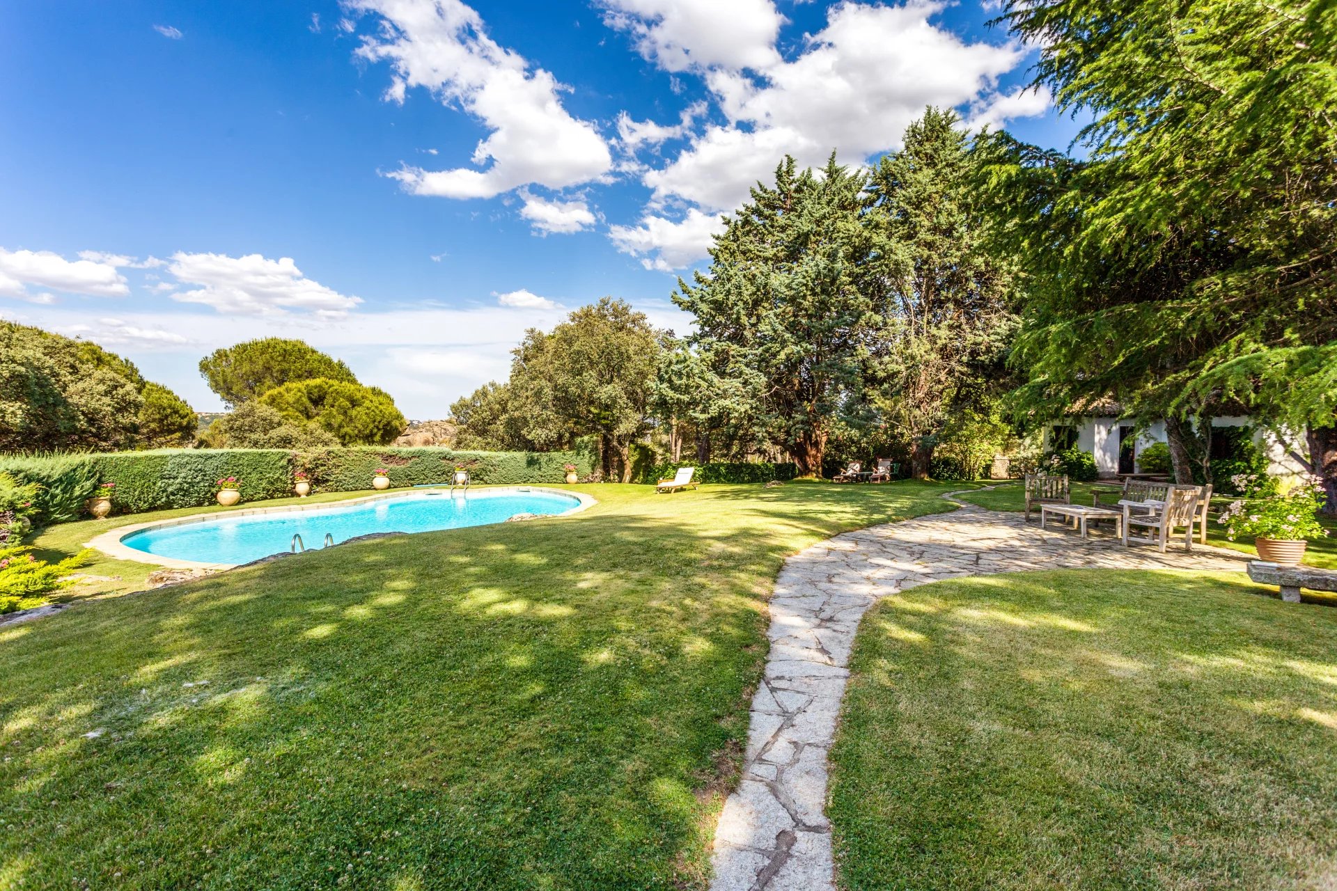 The main house sits on a plot of 160,000 m² at the top of Puerto de Galapagar, a natural paradise with a continental climate surrounded by lush vegetation. Its splendid location offers incredible views of the entire Madrid mountain range, guaranteeing an unbeatable quality of life.