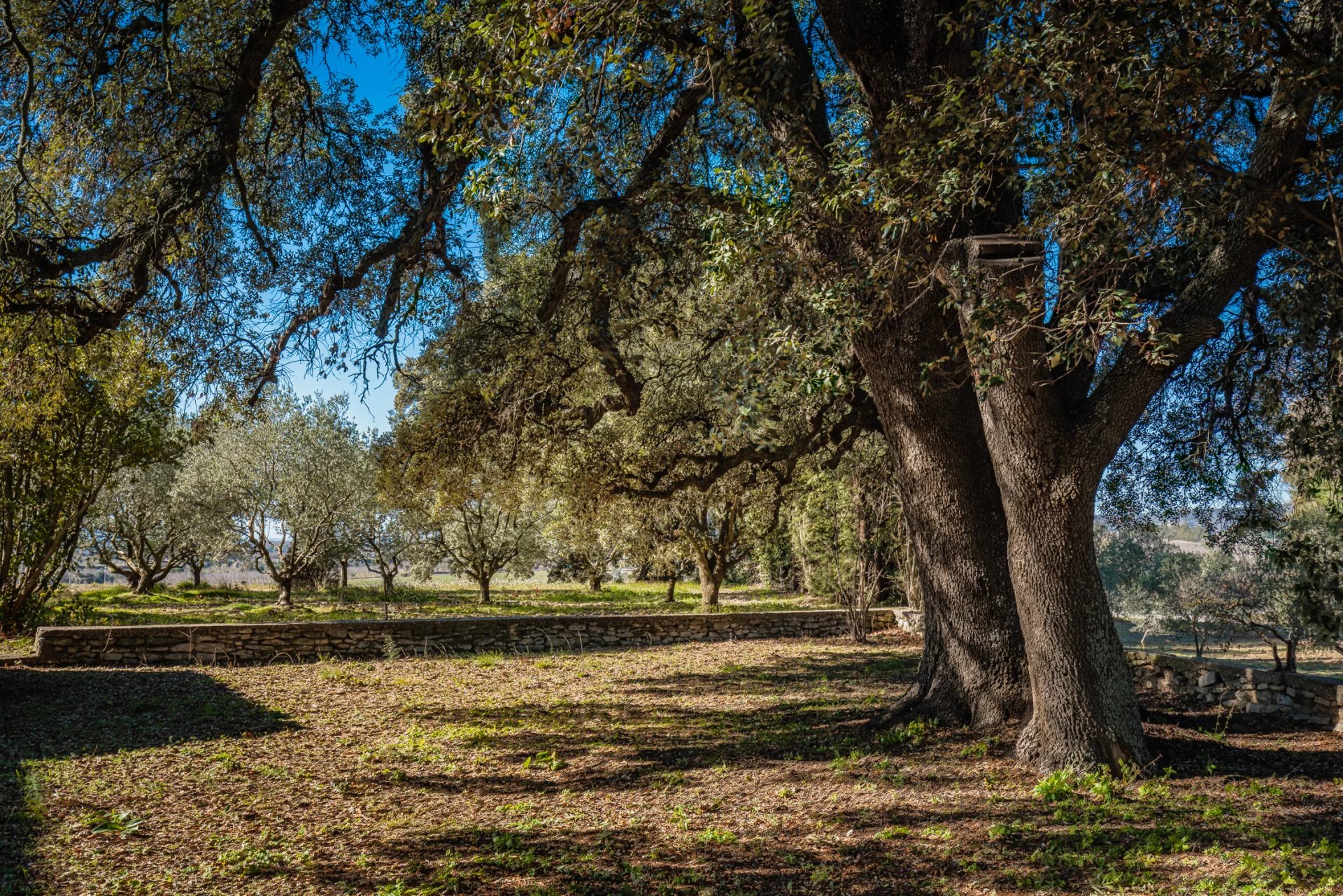 South-facing, the property enjoys generous sunlight throughout the day. The 4,186 m² grounds are planted with majestic three-hundred-year-old oaks, olive trees and dry-stone walls that punctuate the landscape.