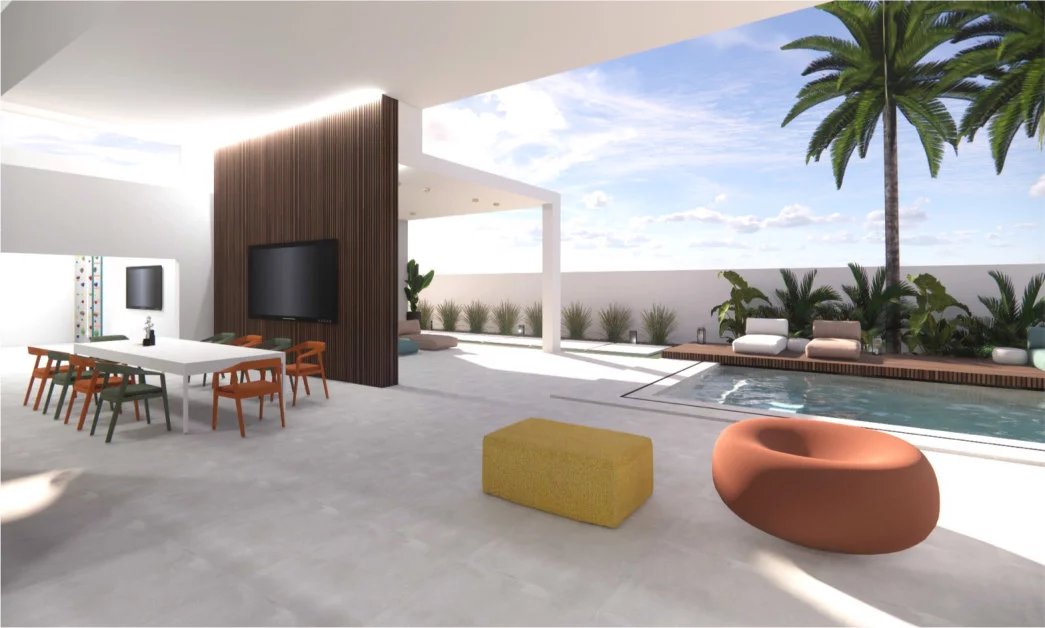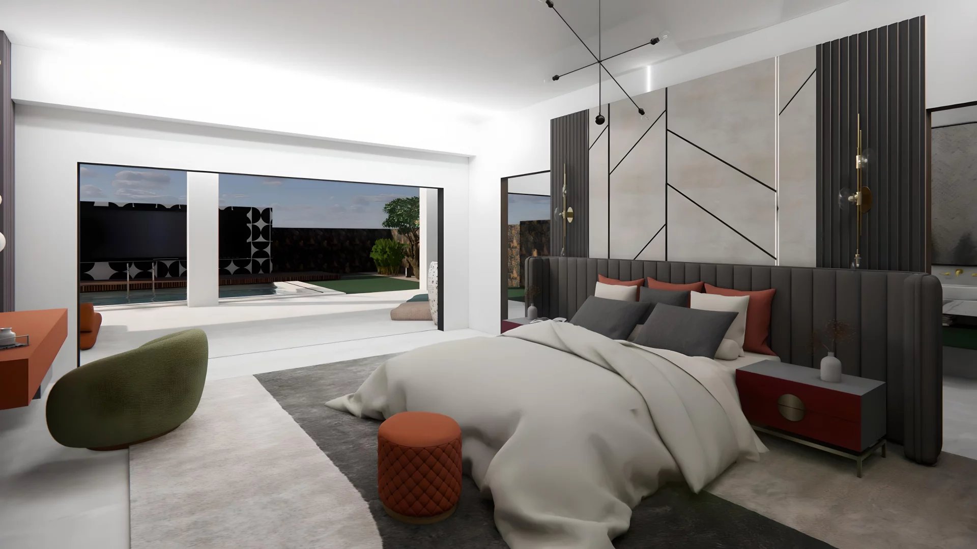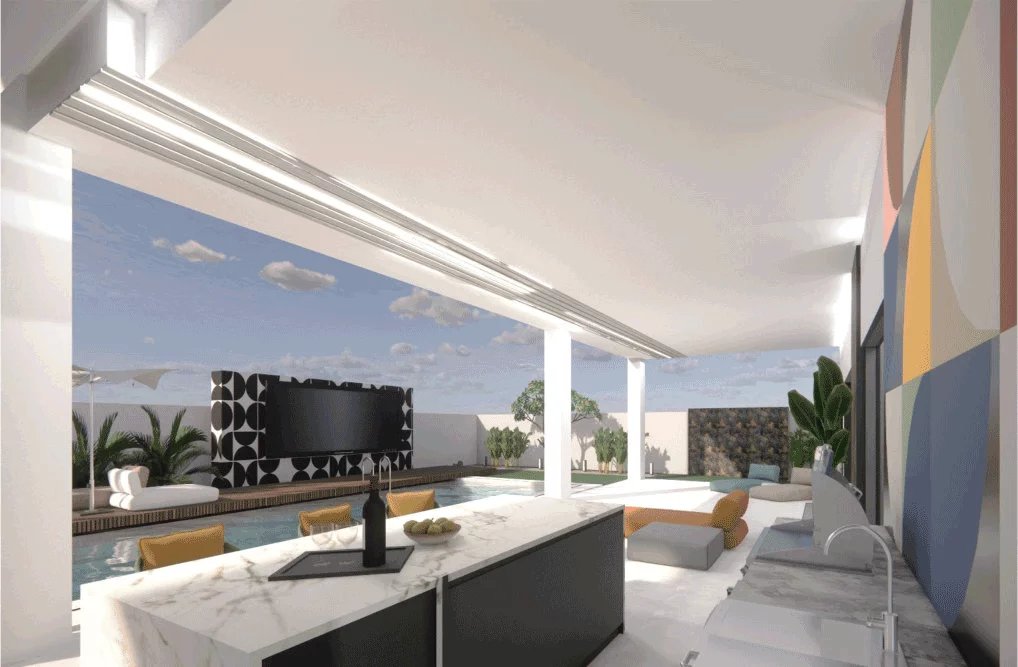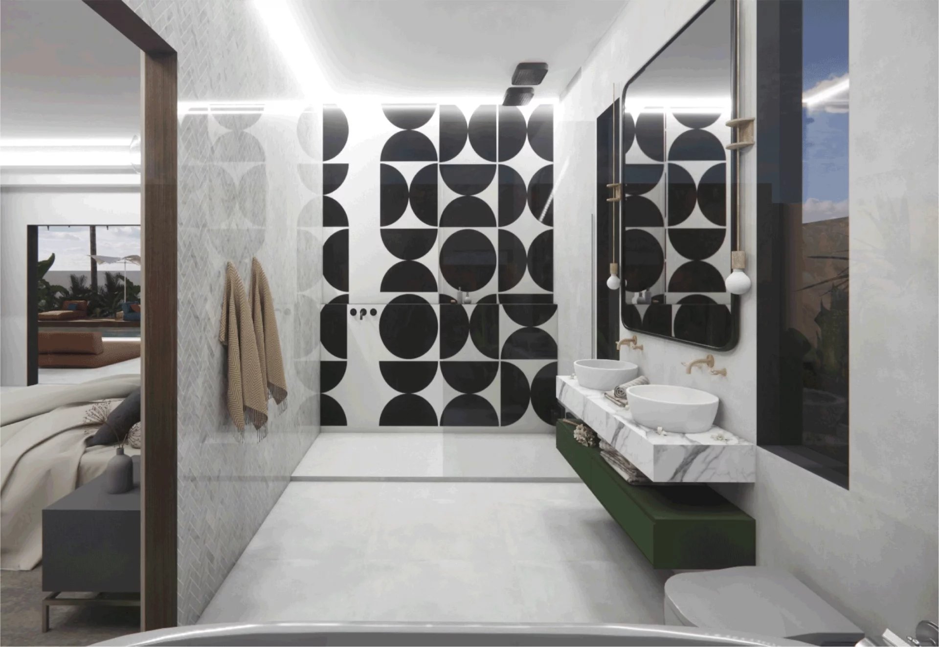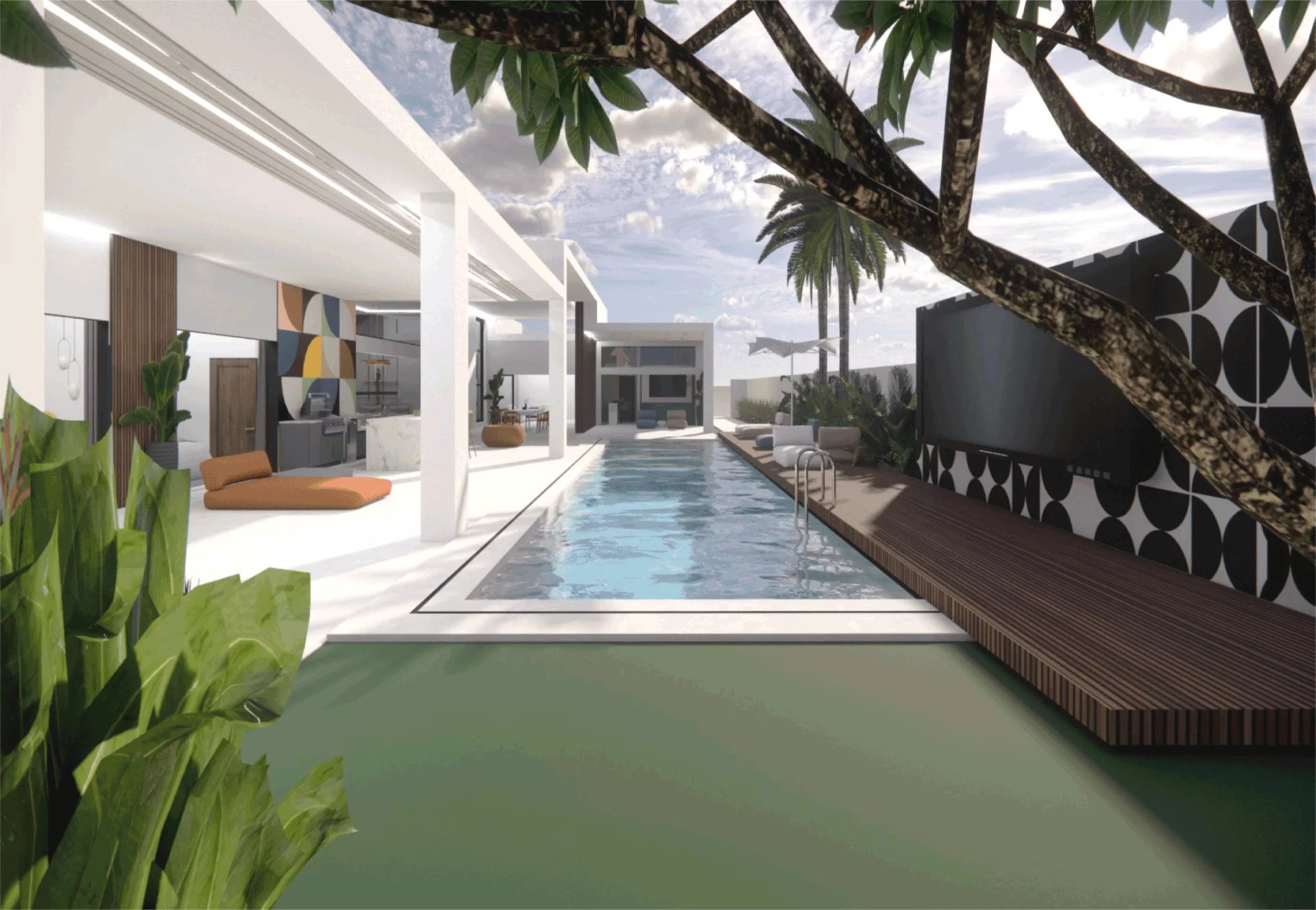 The LENI villa, with a surface area of 435 m², includes 3 bedrooms and a studio. It boasts high ceilings, a private pool, a terrace, and all the modern amenities one could need.