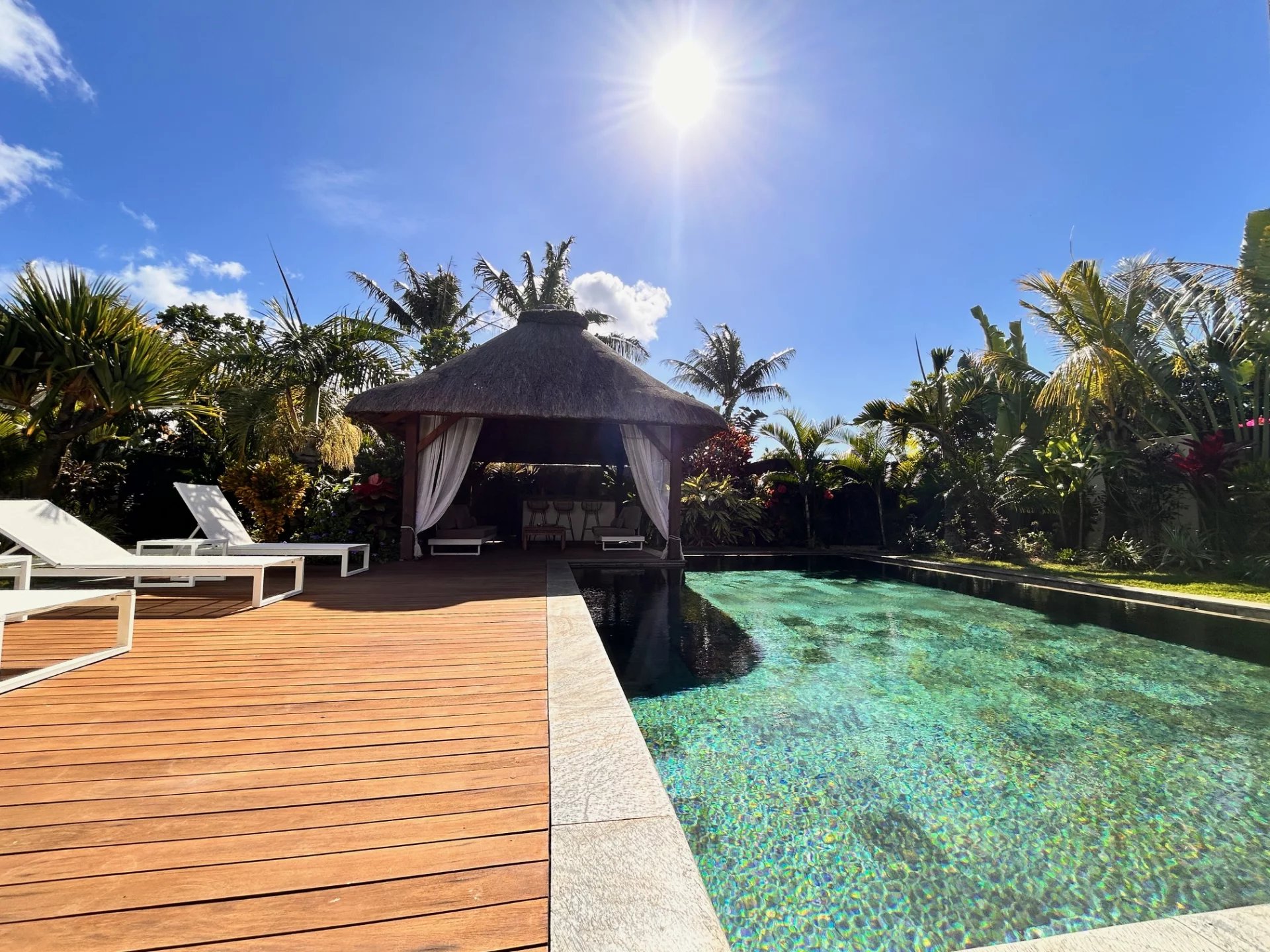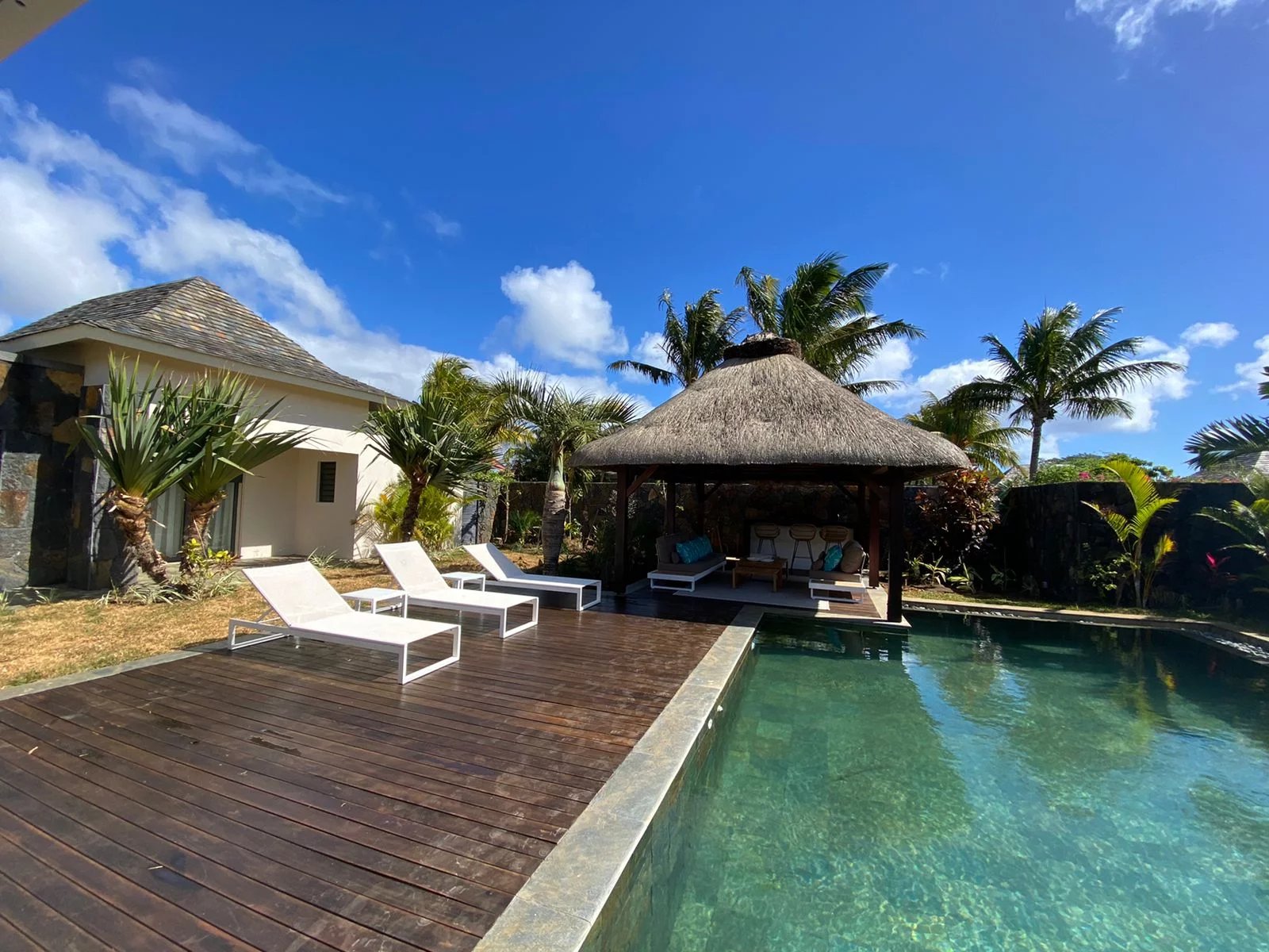 Discover this magnificent modern and authentic villa, located in a secure residence in Grand Bay. Perfectly designed to offer a luxurious and practical living environment, this home will seduce you with its charm and high -end services.