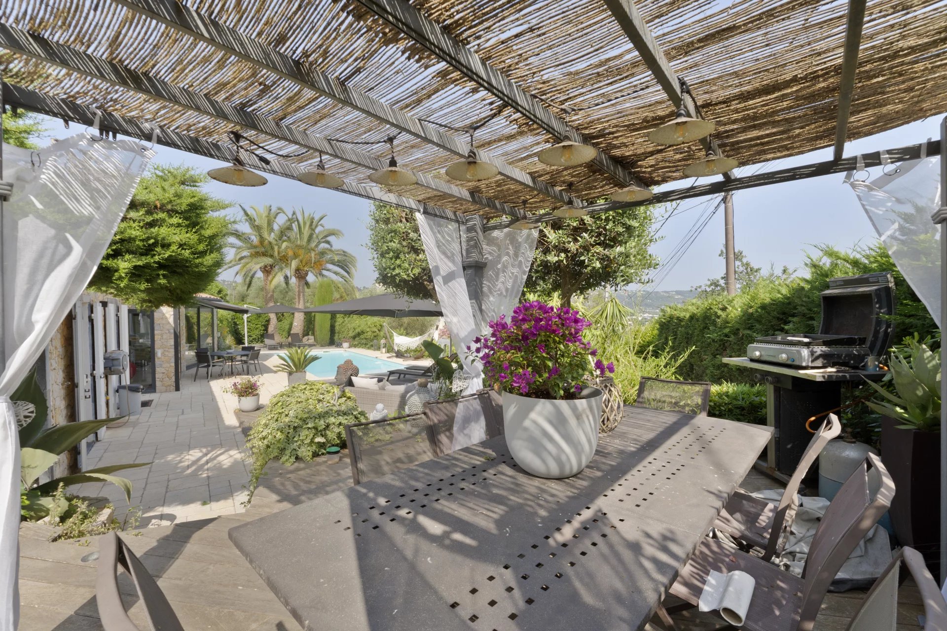 Outside, everything invites you to relax: a heated swimming pool, bordered by two elegantly appointed lounge areas, promises unforgettable moments of idleness in the sunshine.