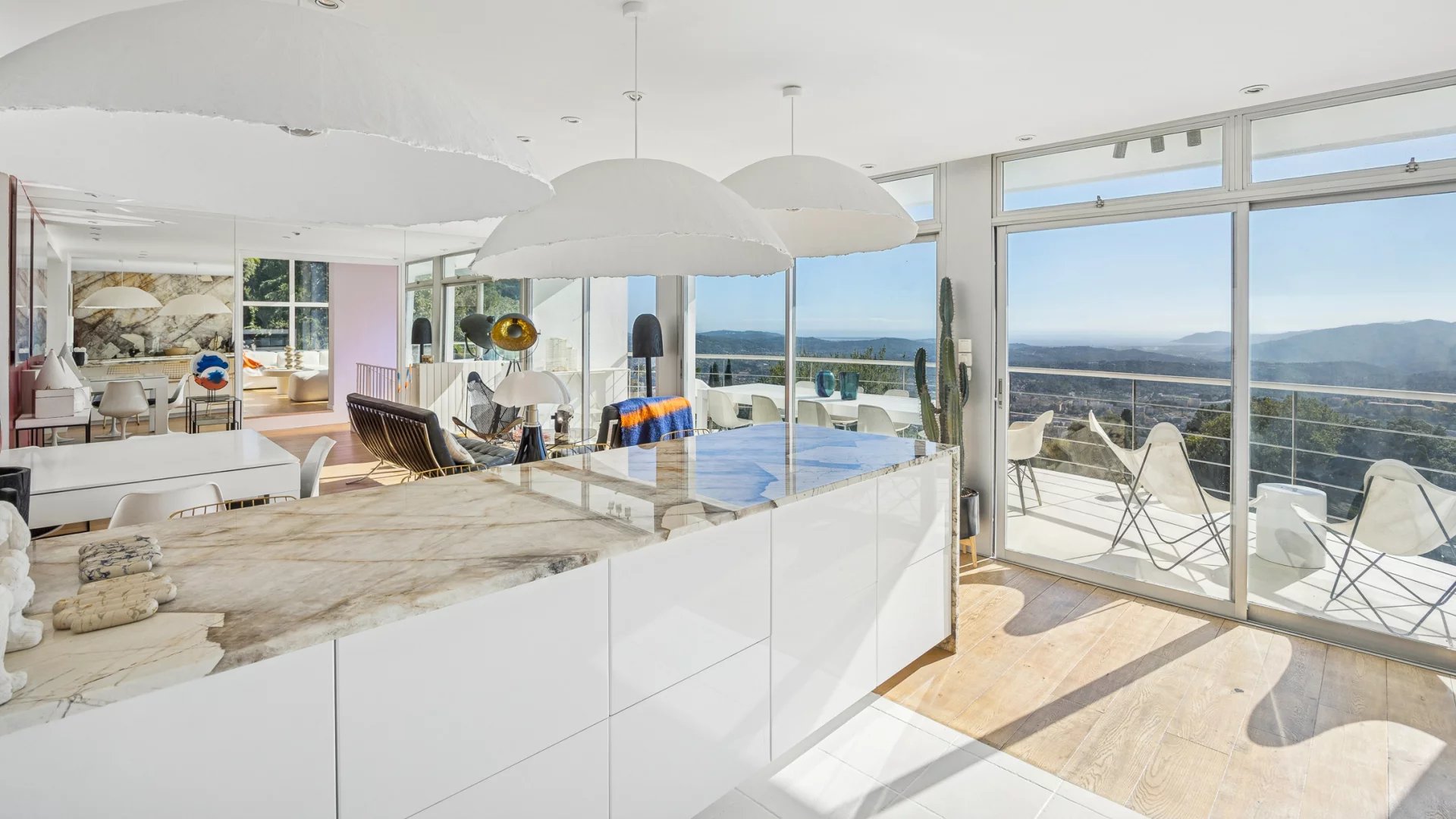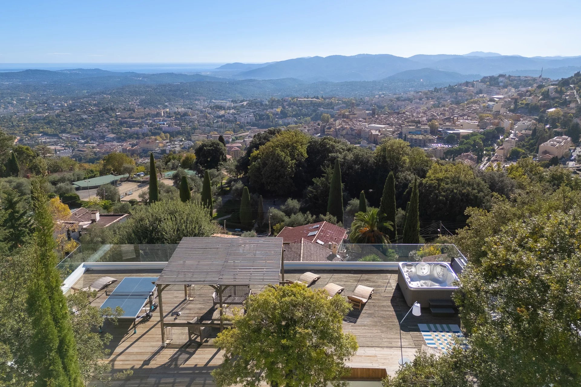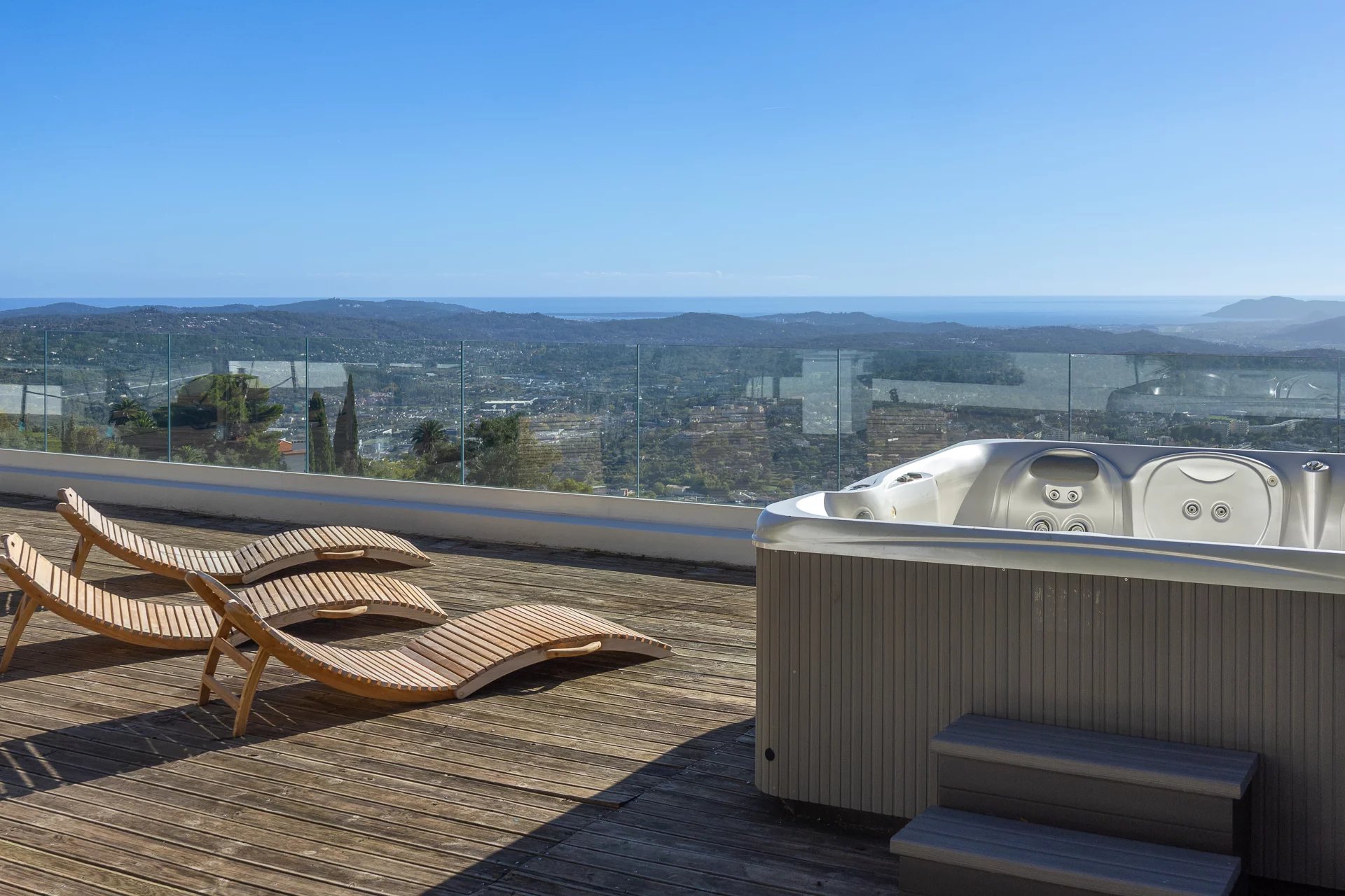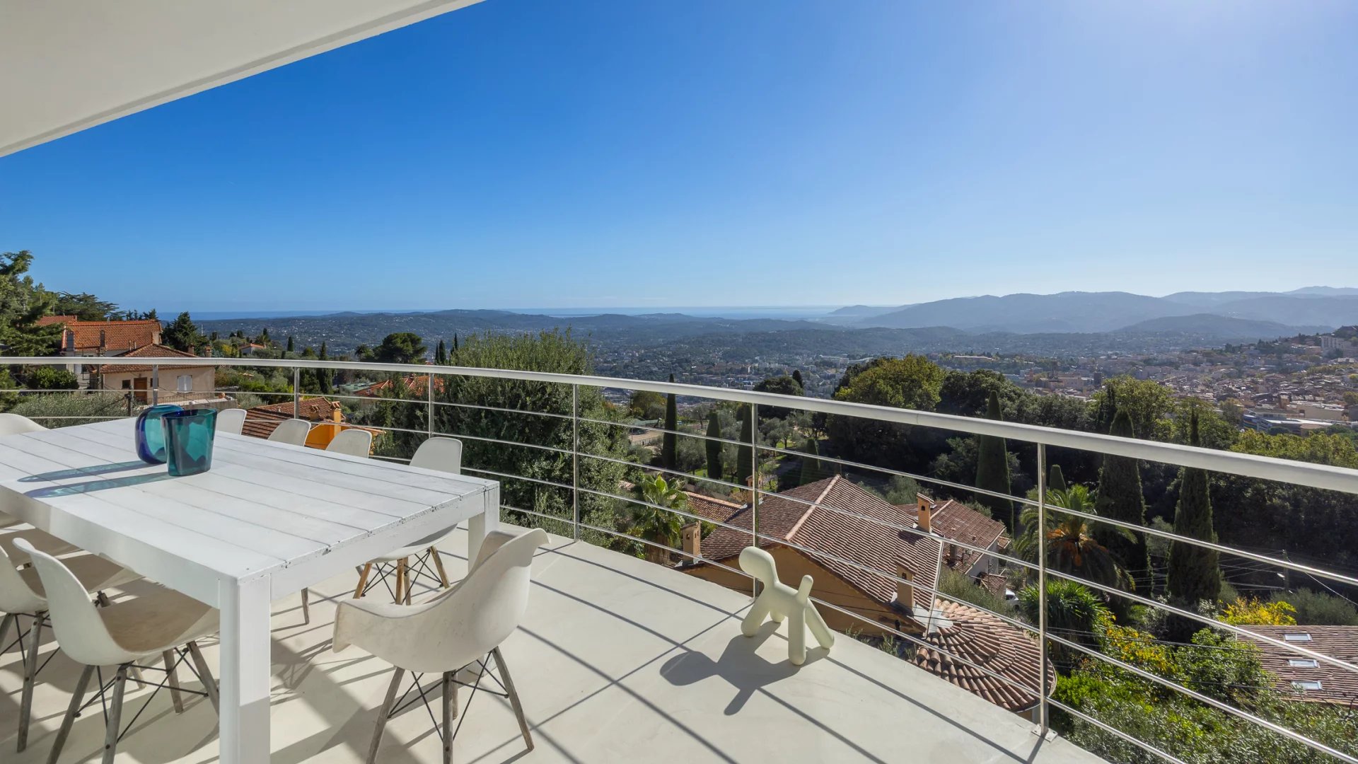 Set in a peaceful environment, this architect-designed villa of approximately 200 sqm offers an exceptional panoramic sea view, overlooking the valley down to the Mediterranean.