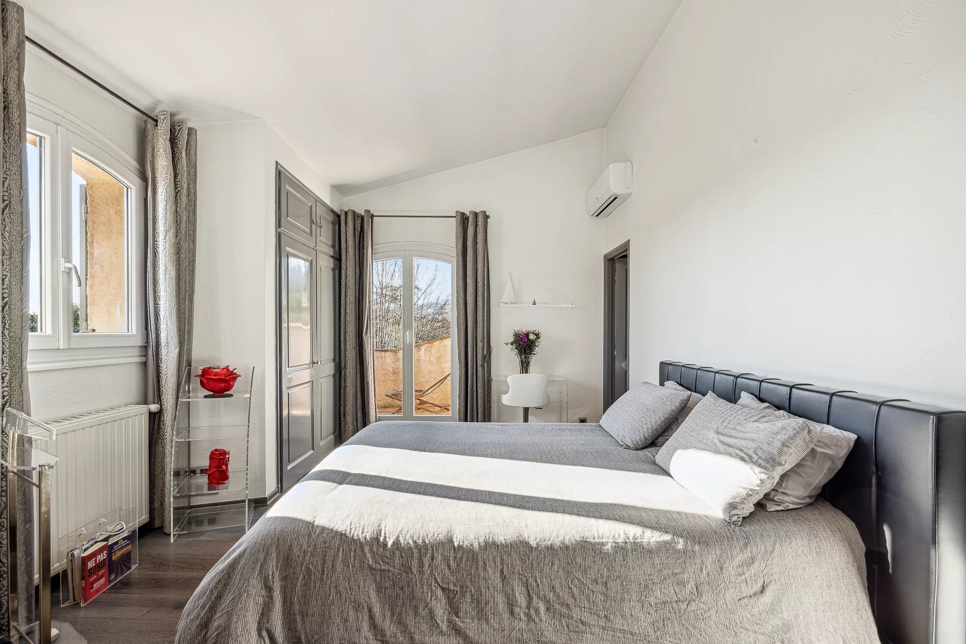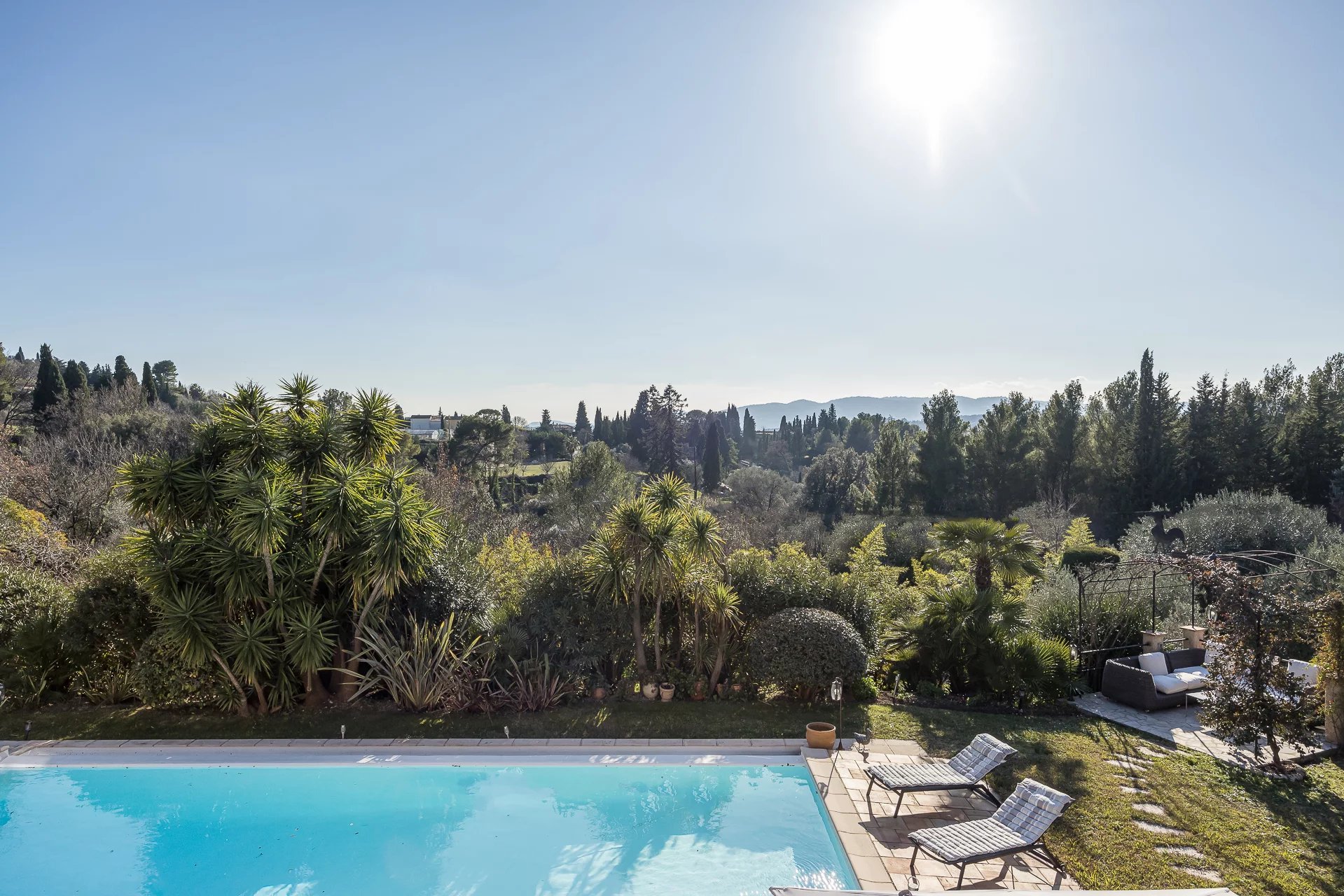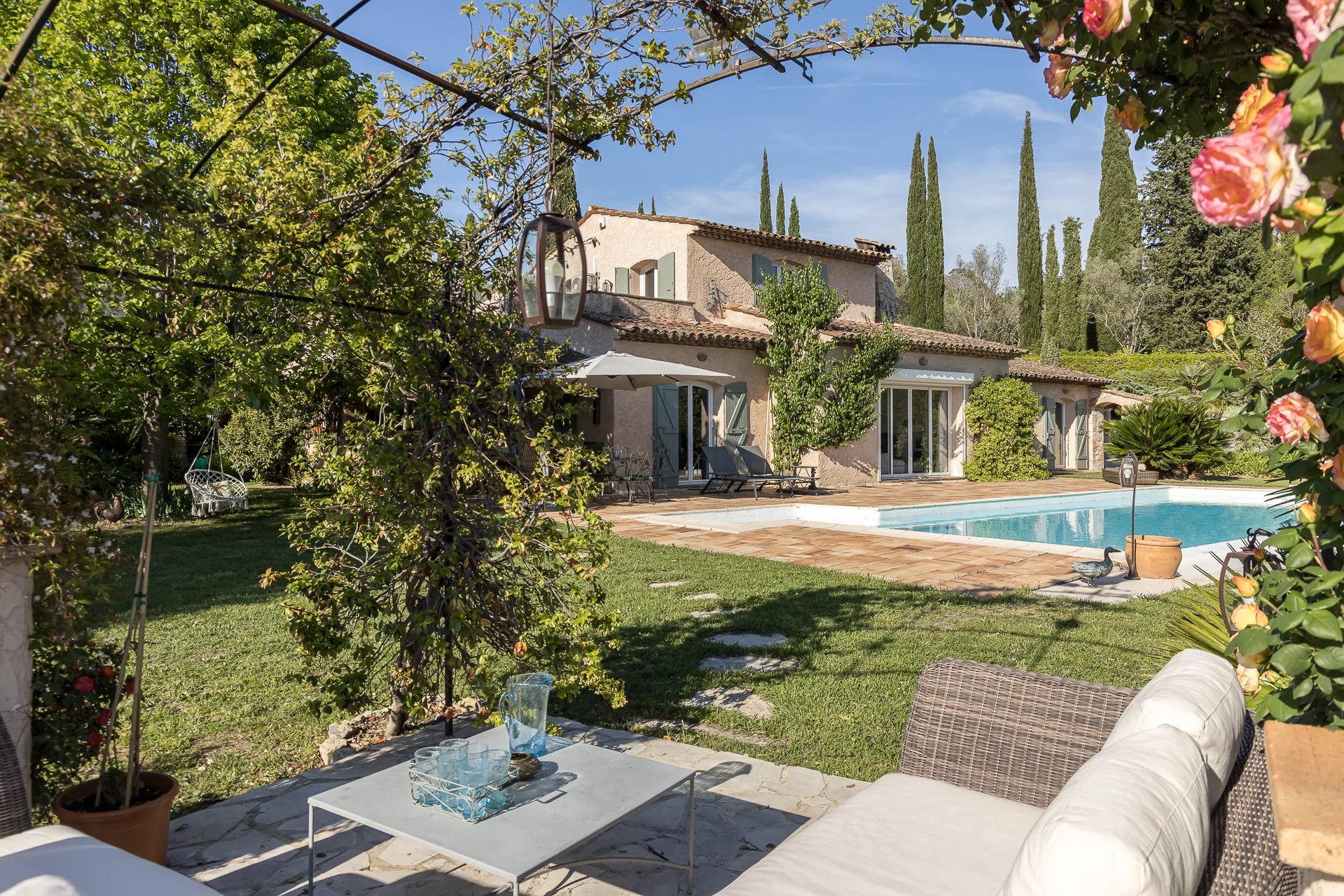 Located in a dominant position, this bright Provencal villa boasts 4 bedrooms, including a master bedroom on the first floor with its own Tropezian terrace. The large plot of land, of approx. 4375 sqm, offers numerous terraces to receive family and friends, a pleasant swimming pool, fruit trees, and a wooden chalet for the children.