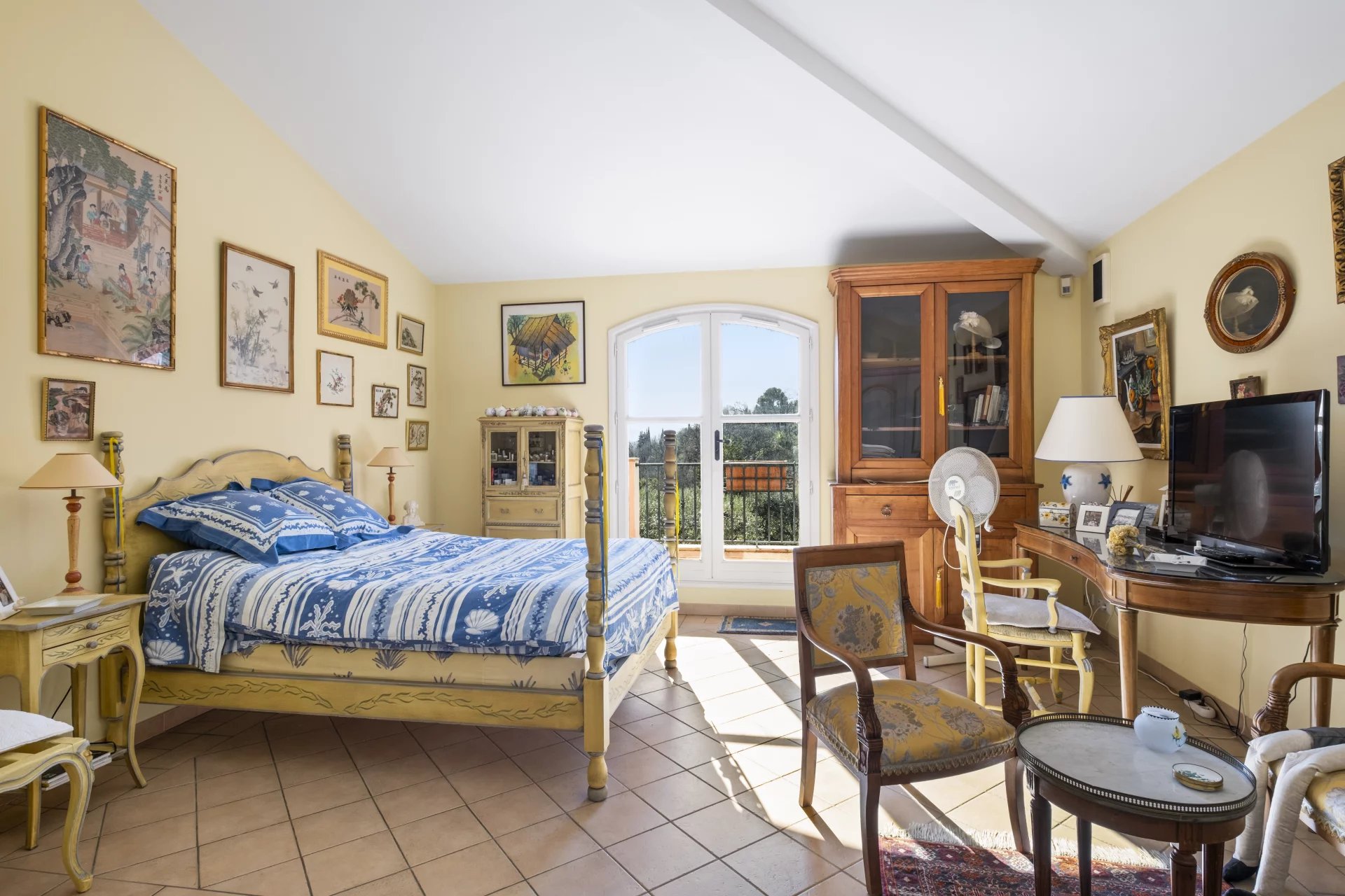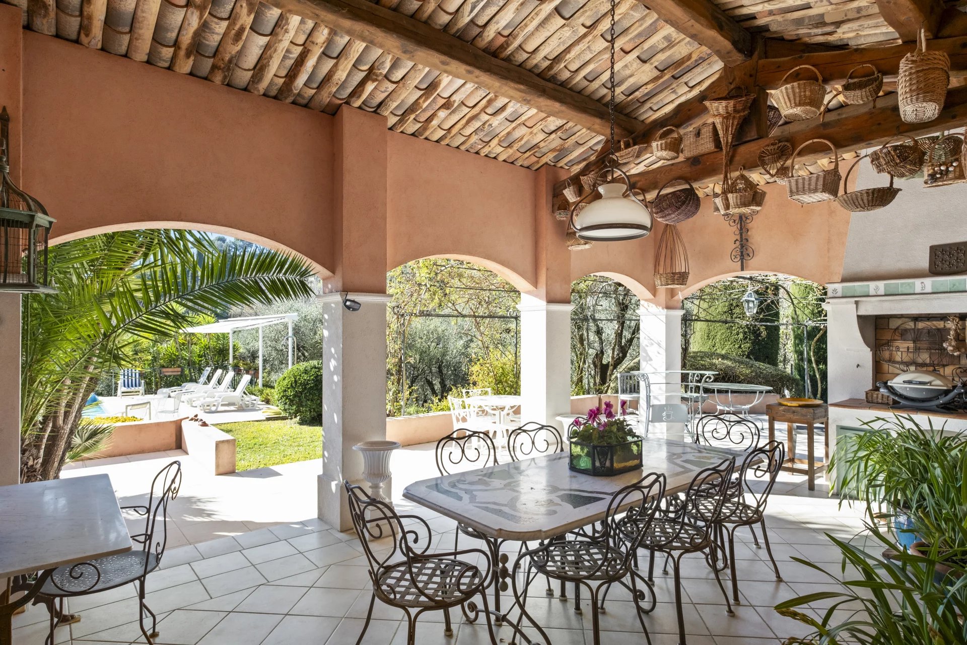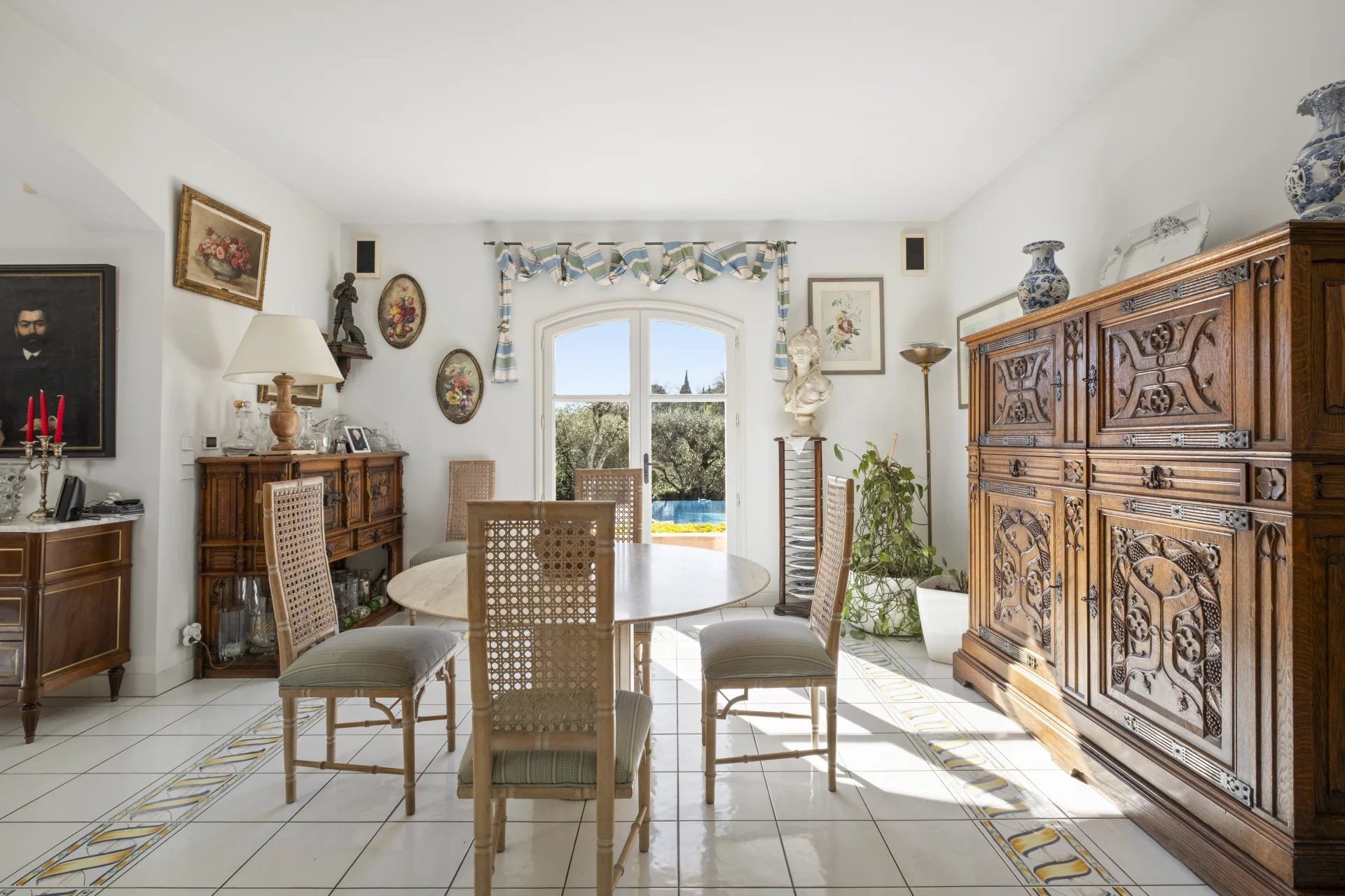 In the Cannois hinterland, this timelessly elegant villa in a peaceful setting with guest house will charm you with its 5,000 sq.m of beautifully landscaped grounds with a variety of Mediterranean trees, heated infinity pool and magnificent covered terrace with summer kitchen.