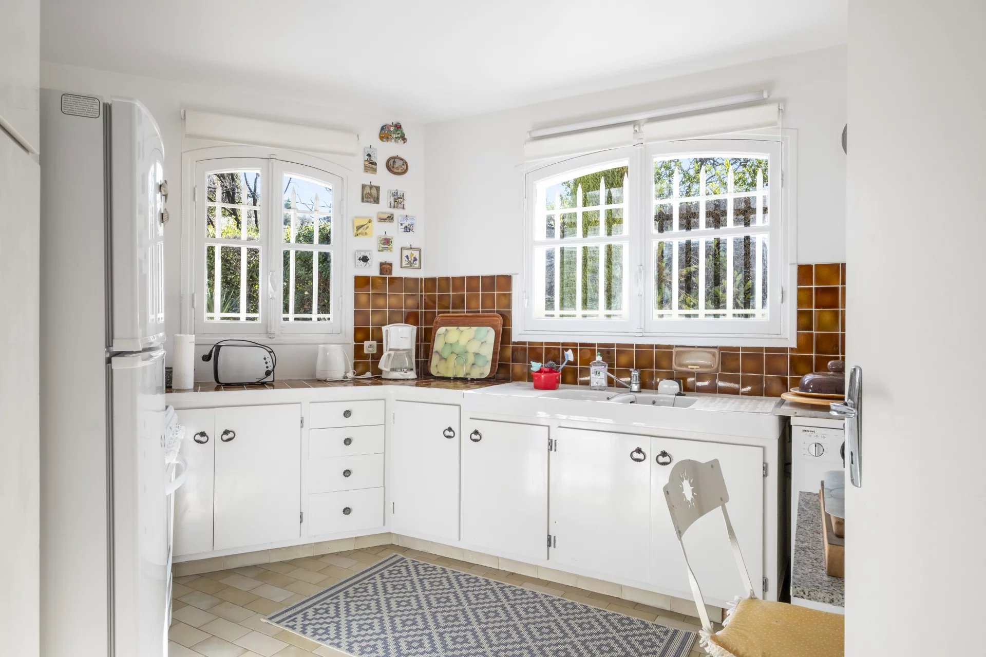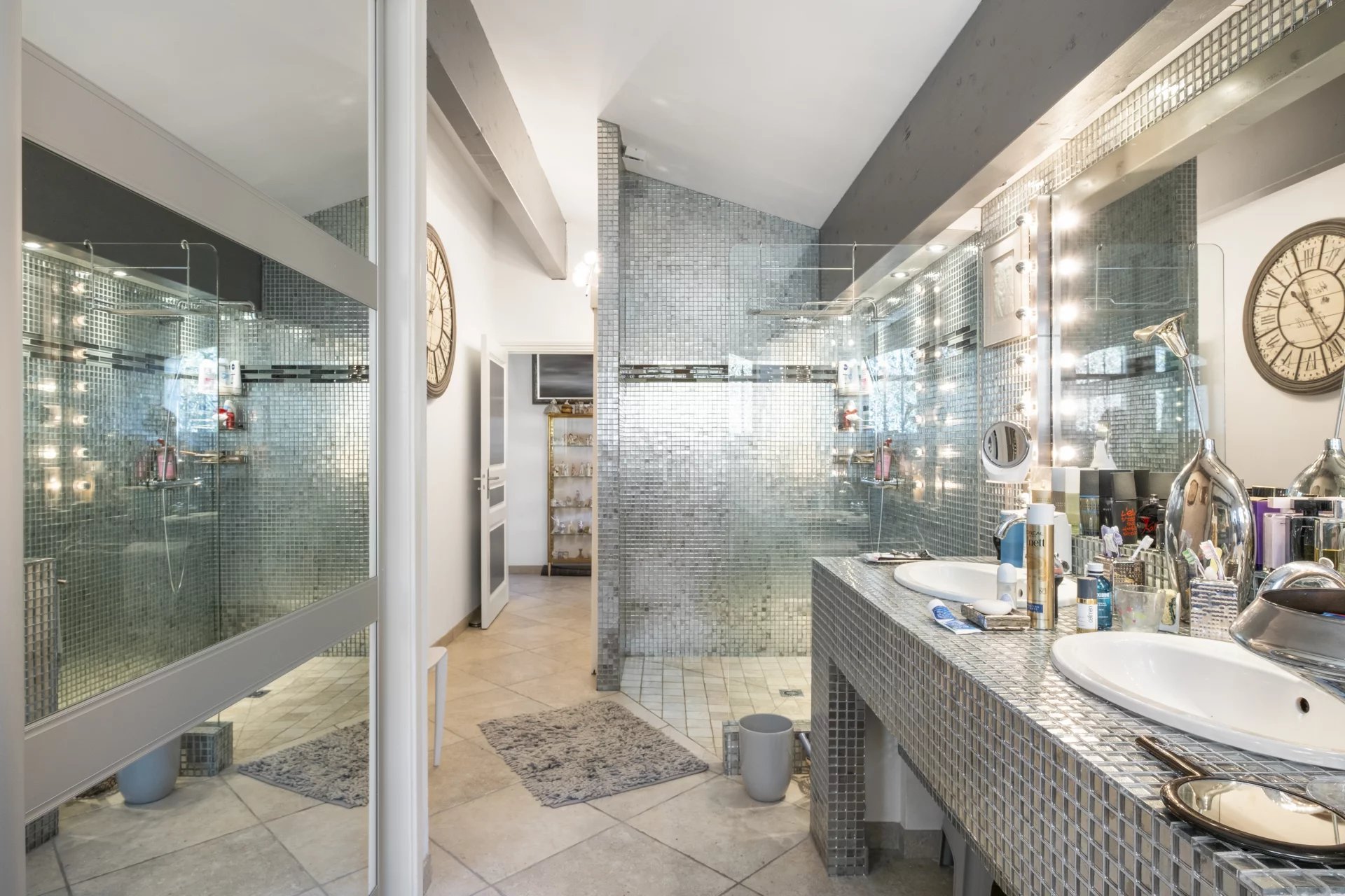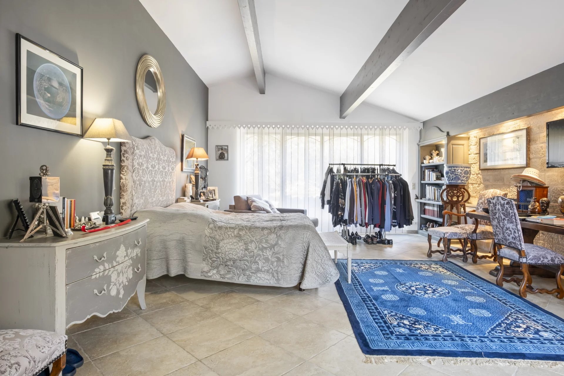 The main villa comprises a magnificent entrance hall with cathedral ceiling, a bright living room with cosy fireplace, a Provencal kitchen opening onto the dining room, a master bedroom of over 60 sq.m and, upstairs, two en suite bedrooms opening onto a balcony.