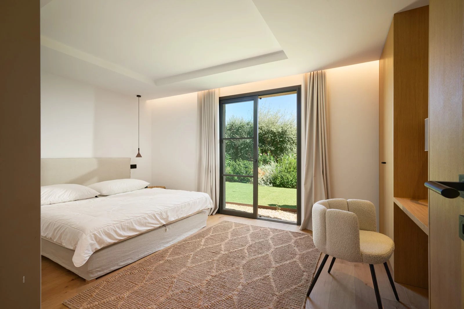 Close to the village and nestled in lush greenery, this contemporary 311 m² villa stands on approximately 2,276 m² of land, offering views of the Gulf of Saint-Tropez and the Château de Grimaud.