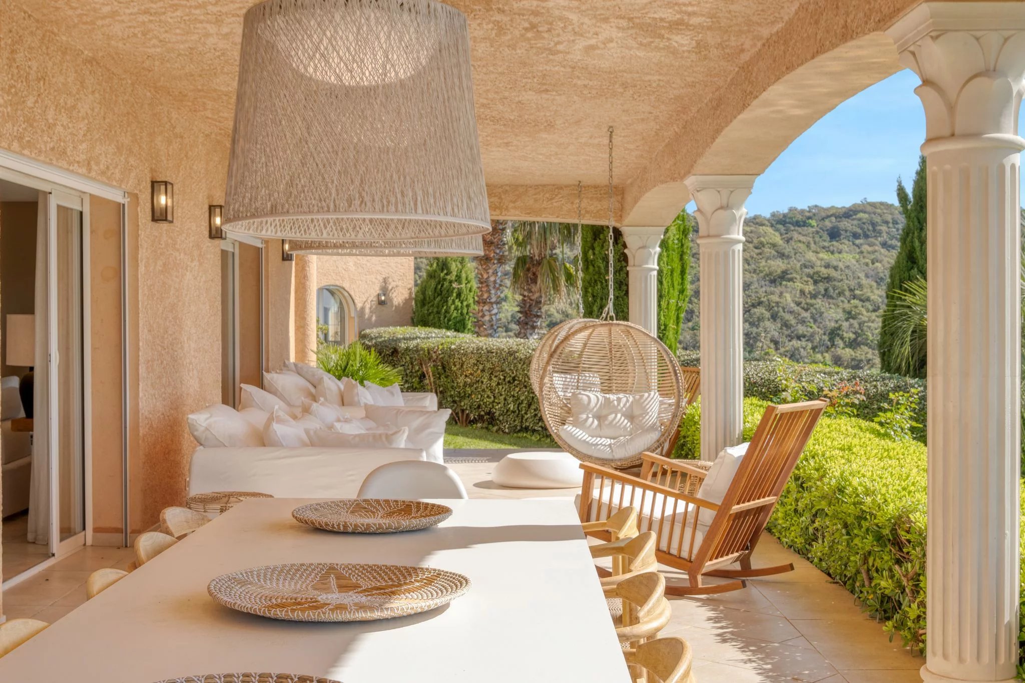 The exteriors, designed as a veritable showcase for relaxation, invite you to experience the Mediterranean art of living: a vast swimming pool bordered by wide terraces, a pool house, a Jacuzzi with panoramic views, and a helipad providing direct and exclusive access to the property. A garage and ample parking complete this rare ensemble.