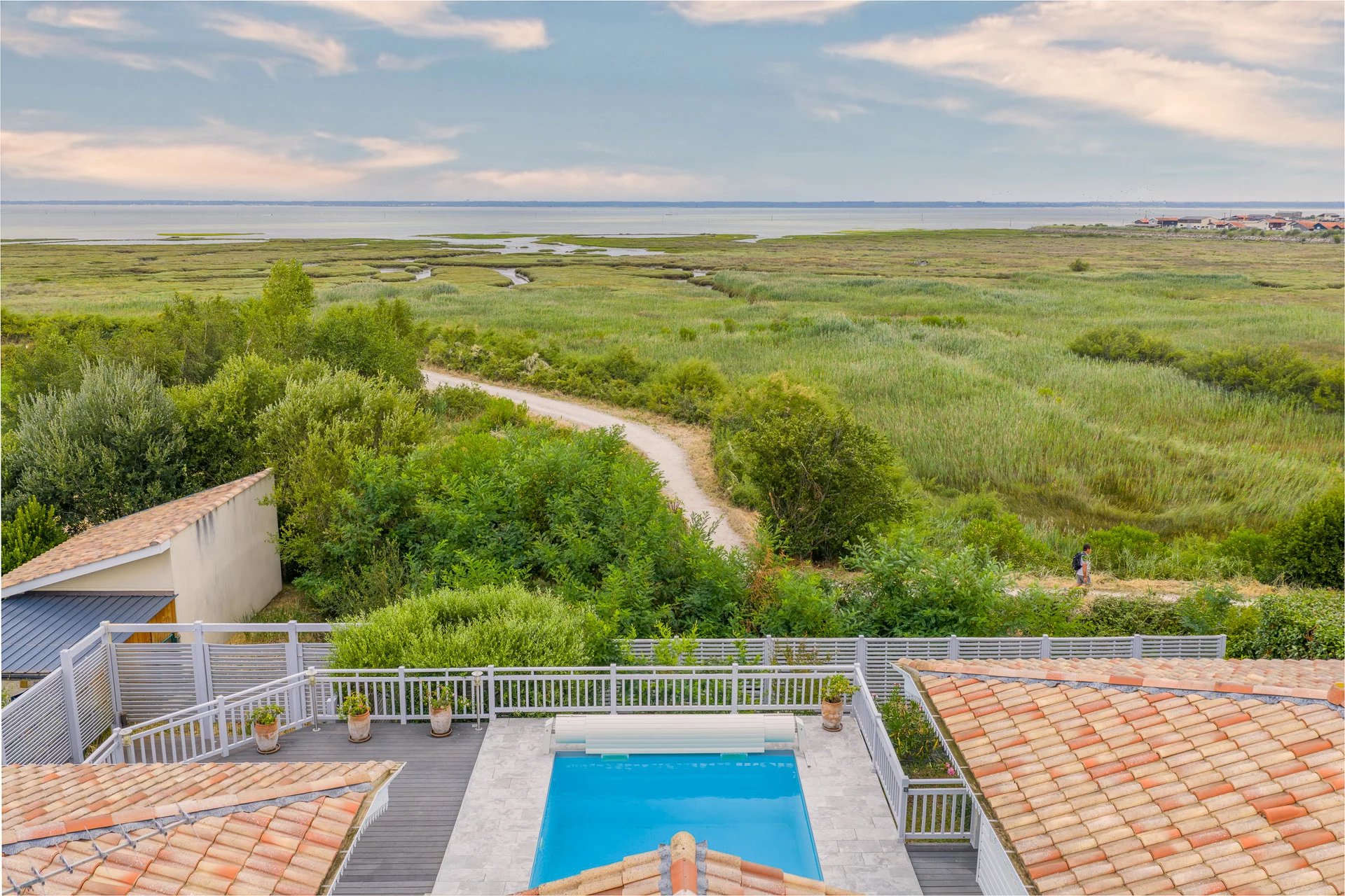 Agence Michael Zingraf offers you this magnificent prestige house in Gujan-Mestras, ideally located on the front line with an uninterrupted view of the sea. Nestled in a small, intimate and secure development, this property combines comfort and luxury.