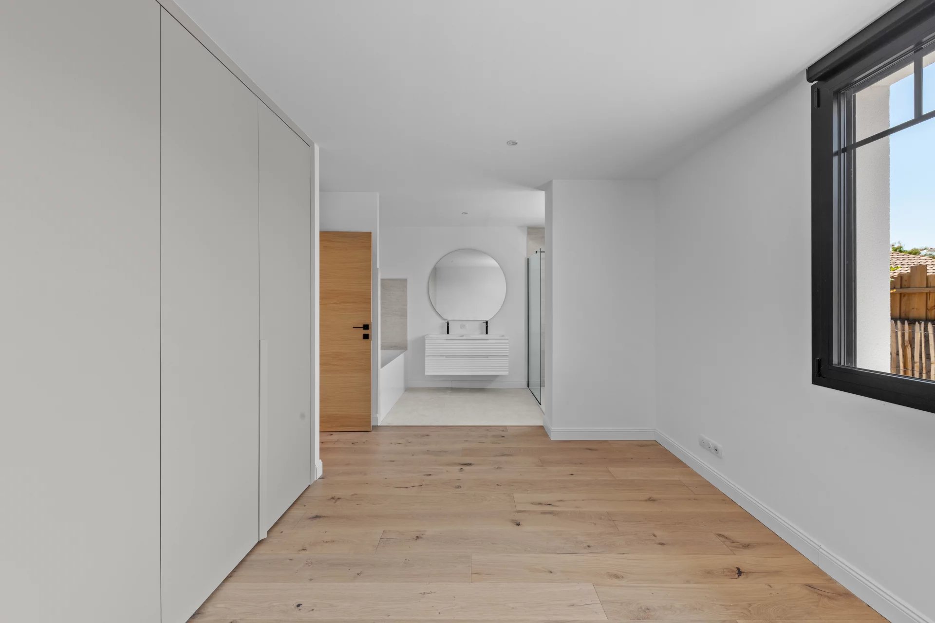 The house features four comfortable suites, each with its own private bathroom and built-in storage or dressing room, ensuring privacy and well-being for each occupant.
