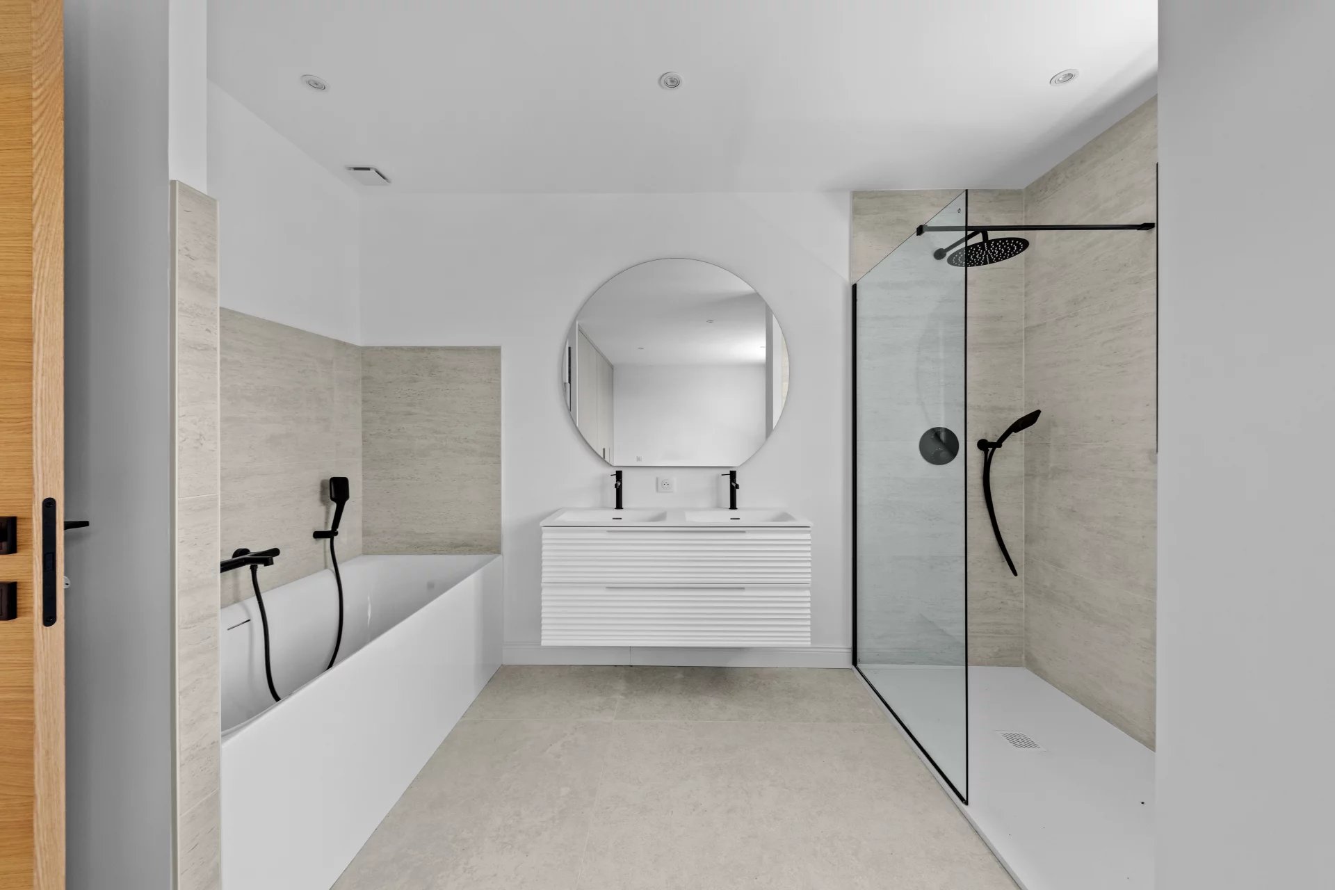 From the moment you enter, the warm, contemporary atmosphere envelops you. The generous living space, bathed in natural light, opens onto several sunny terraces, providing a seamless transition between indoors and outdoors. Ideal for relaxing or entertaining.