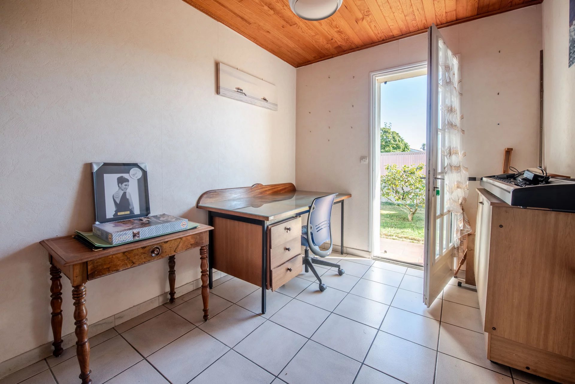 The night area comprises three bedrooms and an office opening onto the garden. With its solid and readable structure, the house provides an ideal base for a contemporary renovation — opening spaces, extending volumes, or redefining the flow of light and daily life.