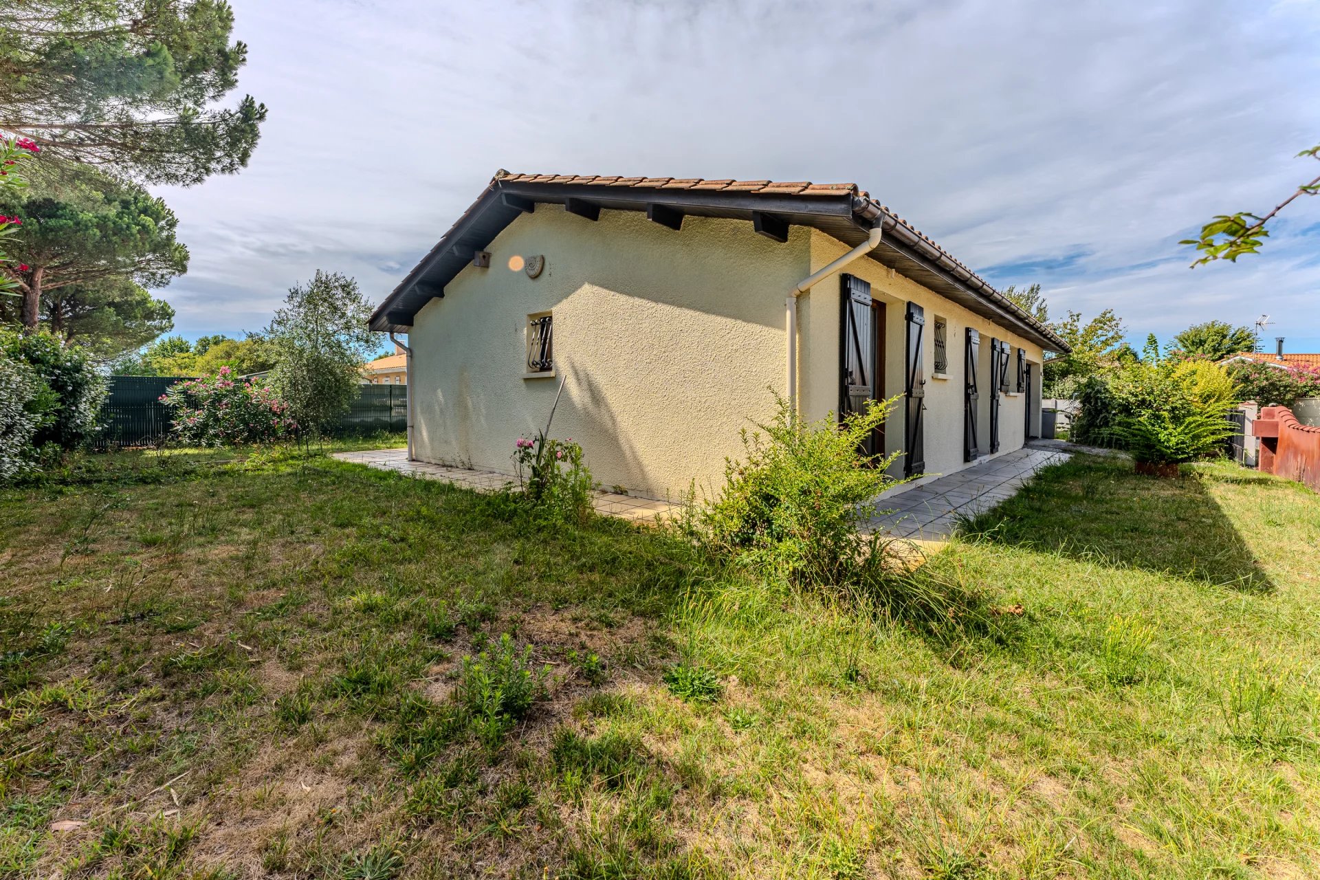 Built on a plot suitable for a swimming pool, this house enjoys a pleasant environment, both peaceful and close to everyday amenities.
