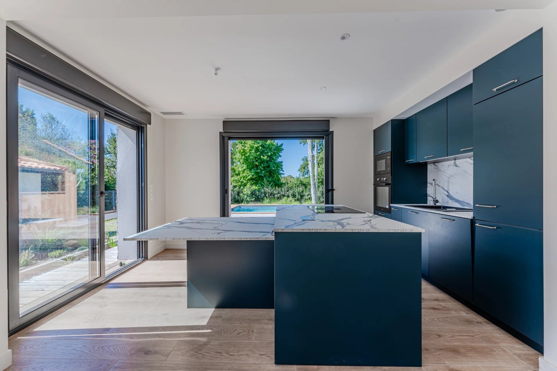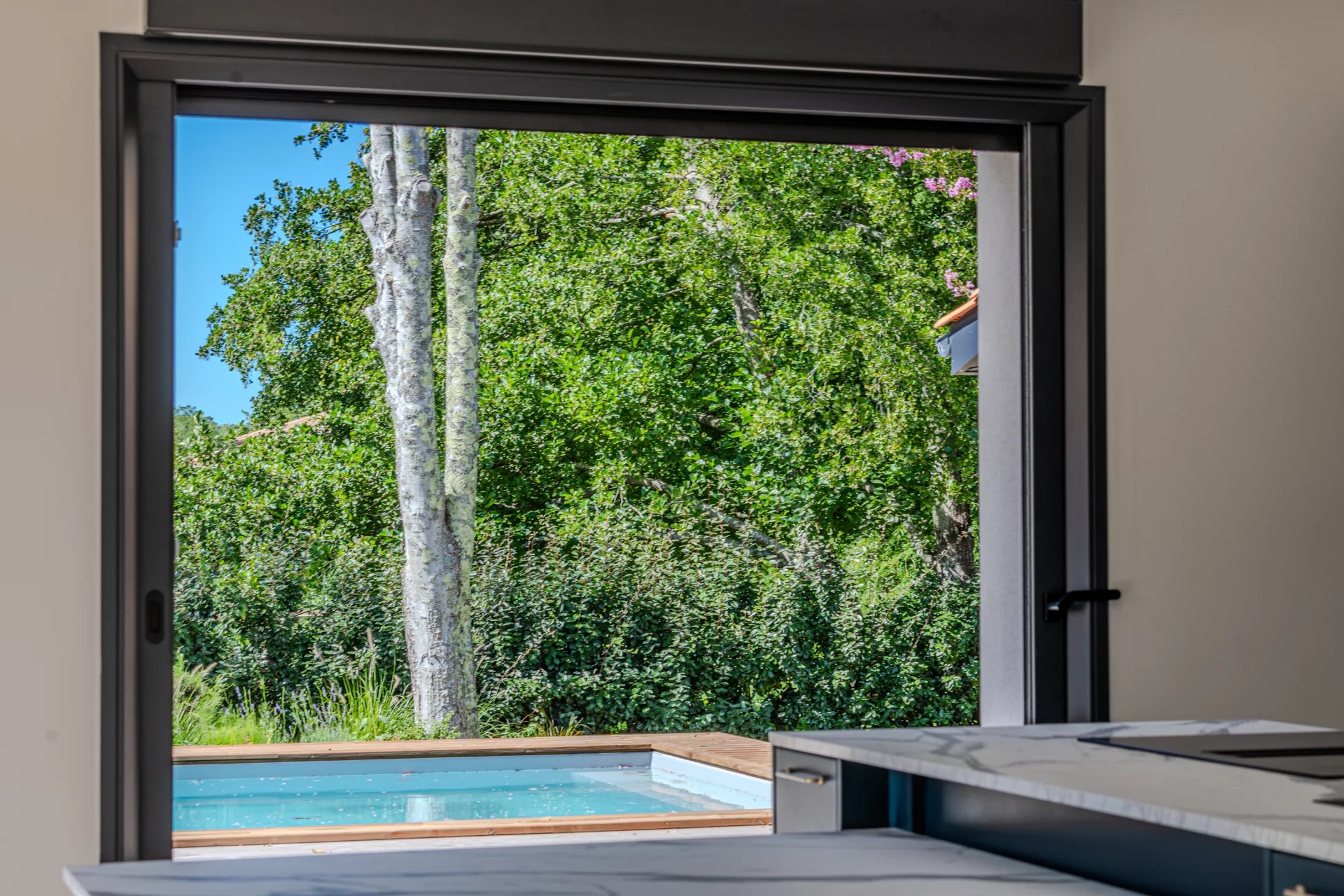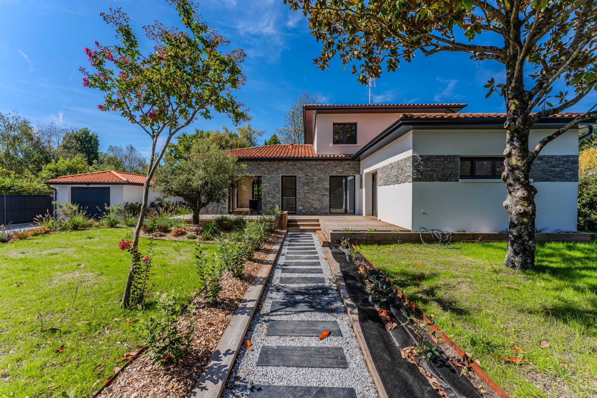 This villa is surrounded by a splendid 1130 sqm plot, where you can enjoy a large landscaped garden, a petanque court for friendly moments, and a beautiful 24 sqm swimming pool, perfect for cooling off on sunny days.