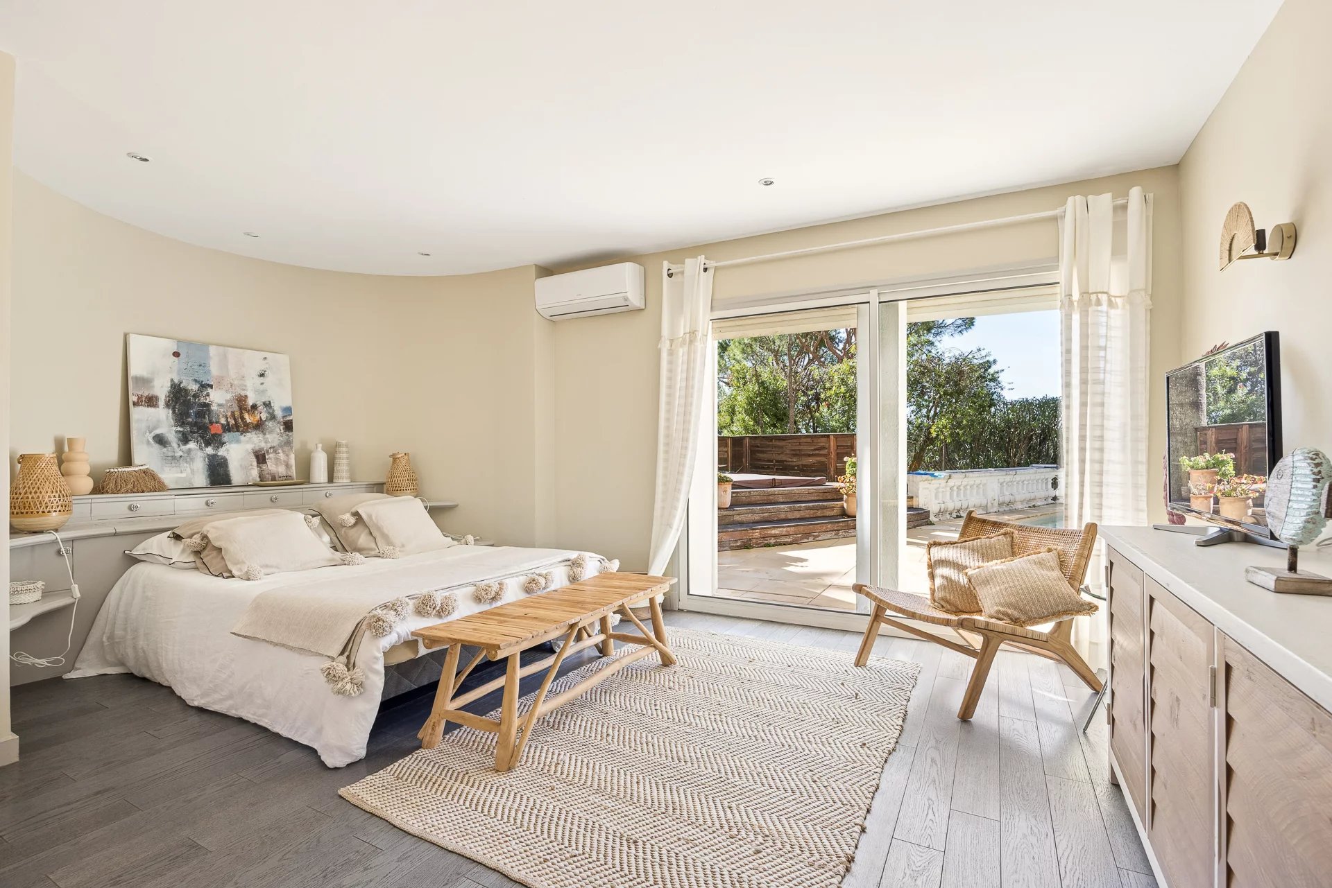 Facing south-west, the villa enjoys optimal sunshine in a peaceful and private setting. It boasts a lovely sea view extending as far as the Estérel mountains.