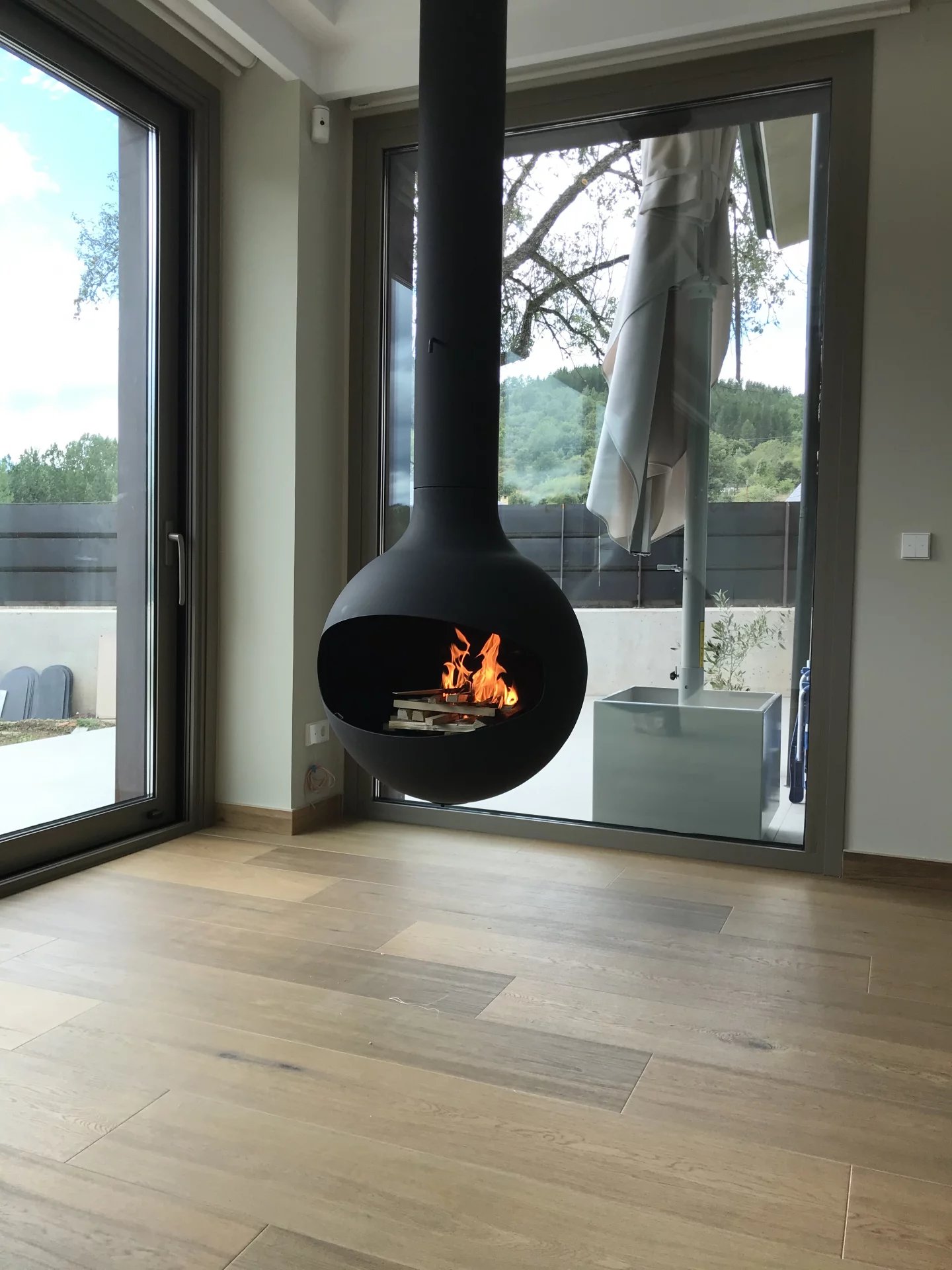 - Black Focus BATHYSCAFOCUS fireplace, suspended from the ceiling. Spark arrester and glove.
