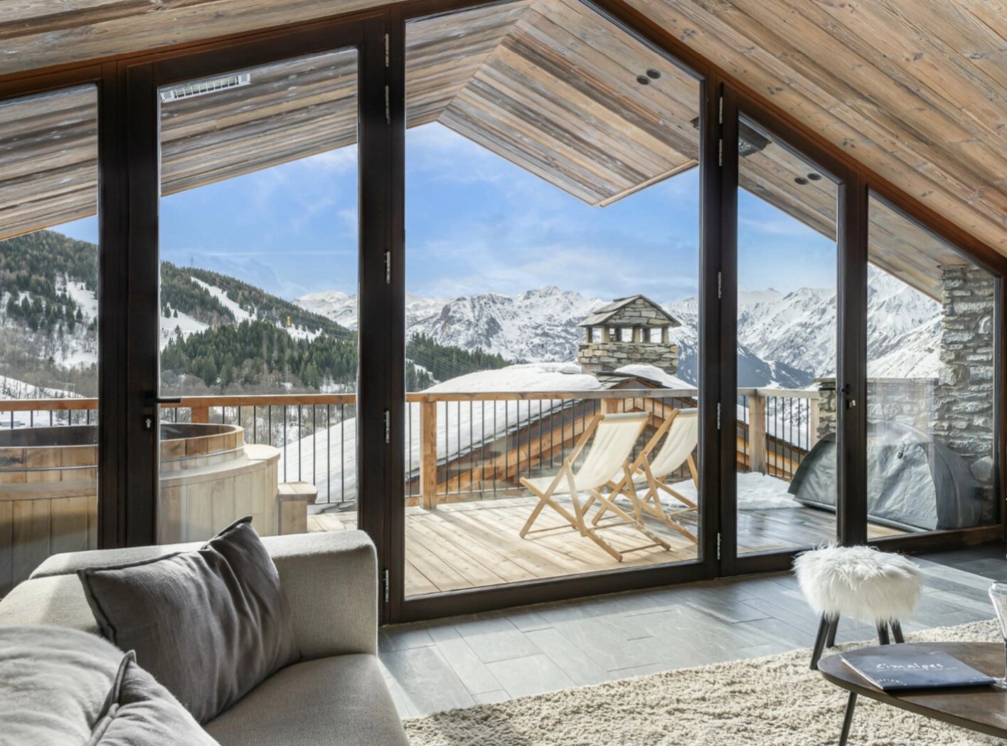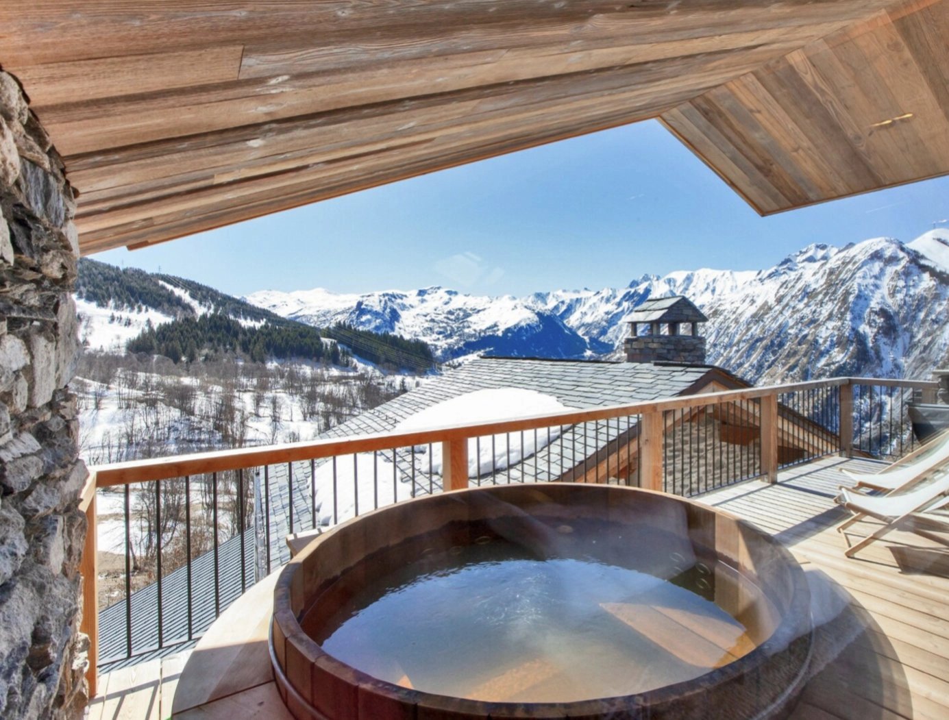 The balcony, located on the second floor, offers a panoramic view of the surrounding massifs while enjoying its Nordic bath. A real plus!