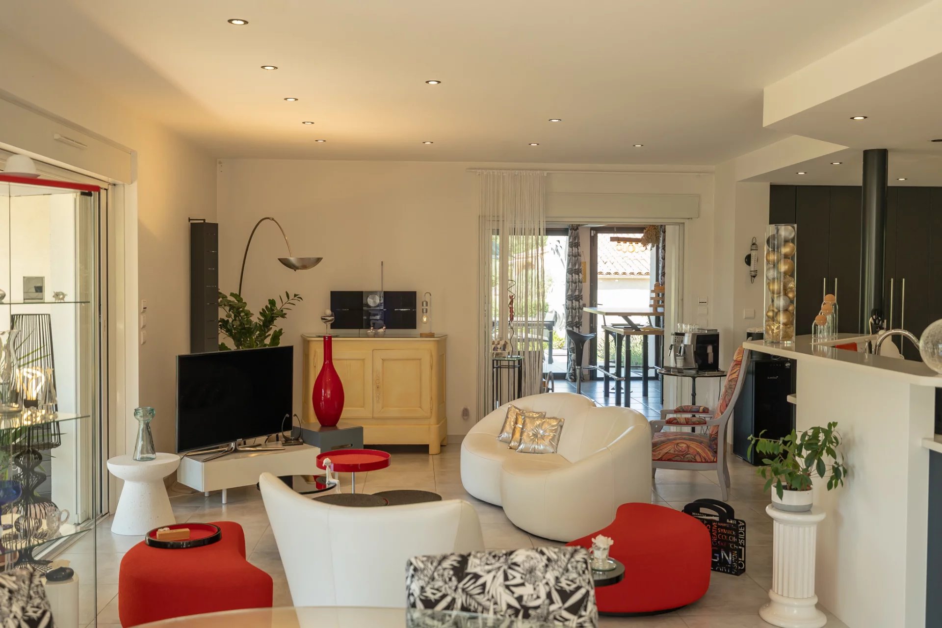An adjoining second dwelling, perfect for hosting your guests or considering seasonal rental activity, includes a beautiful living room and an independent suite. This space can be connected to the main house for more conviviality or kept as a separate accommodation.