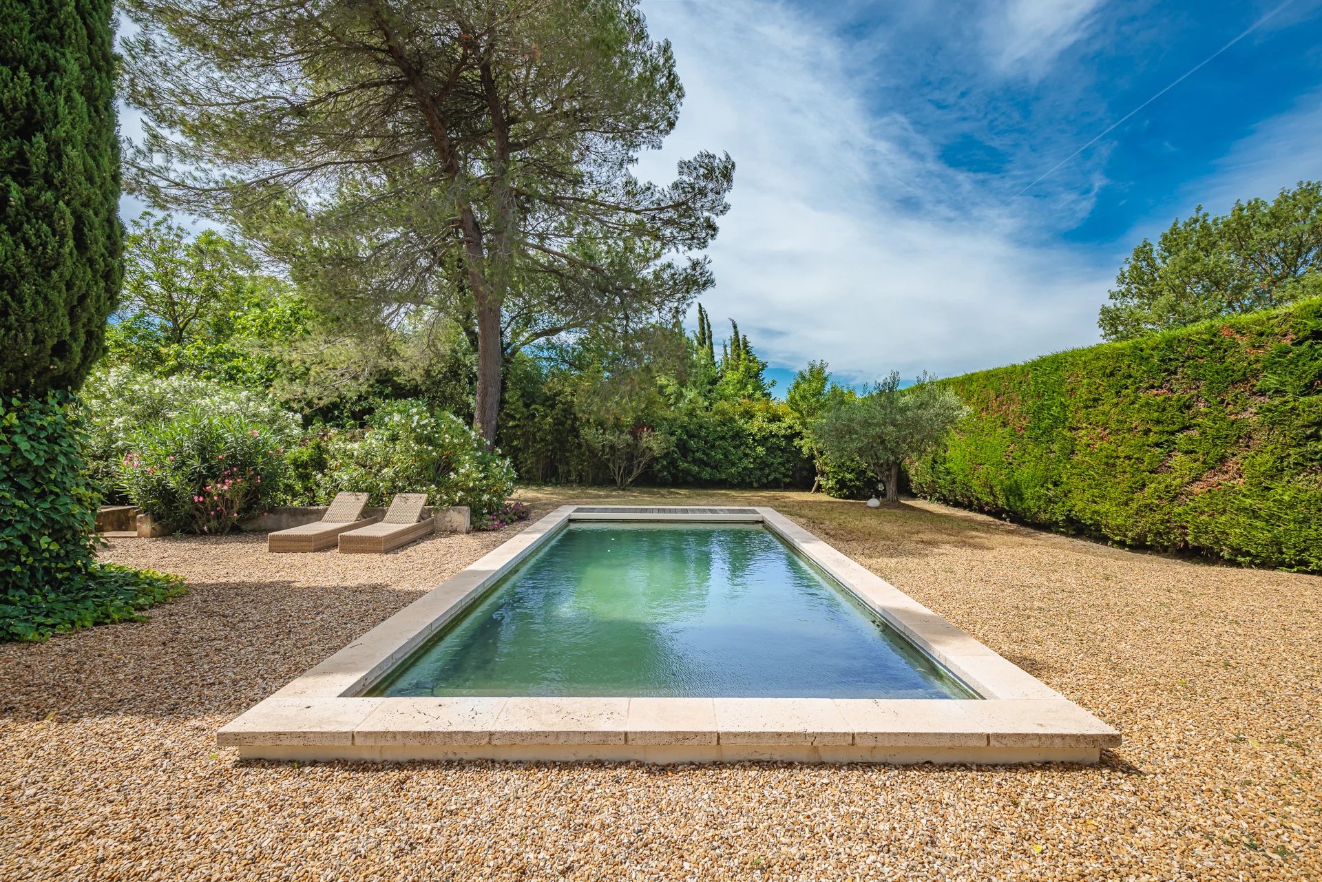 The beautifully wooded garden provides an idyllic setting for relaxing by the pool or playing pétanque on the boulodrome. The view over the Luberon is breathtaking, offering a spectacle that changes with the seasons.