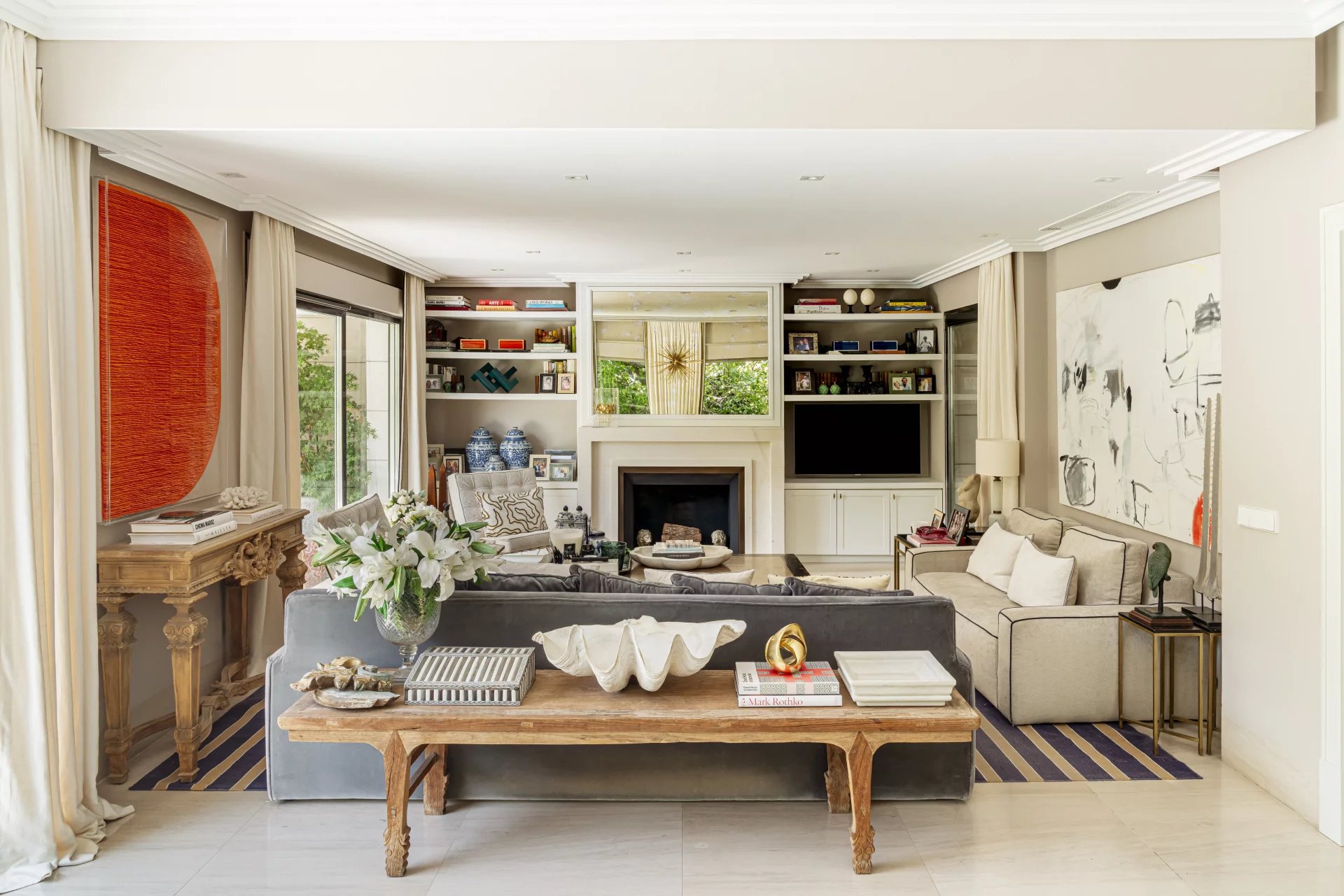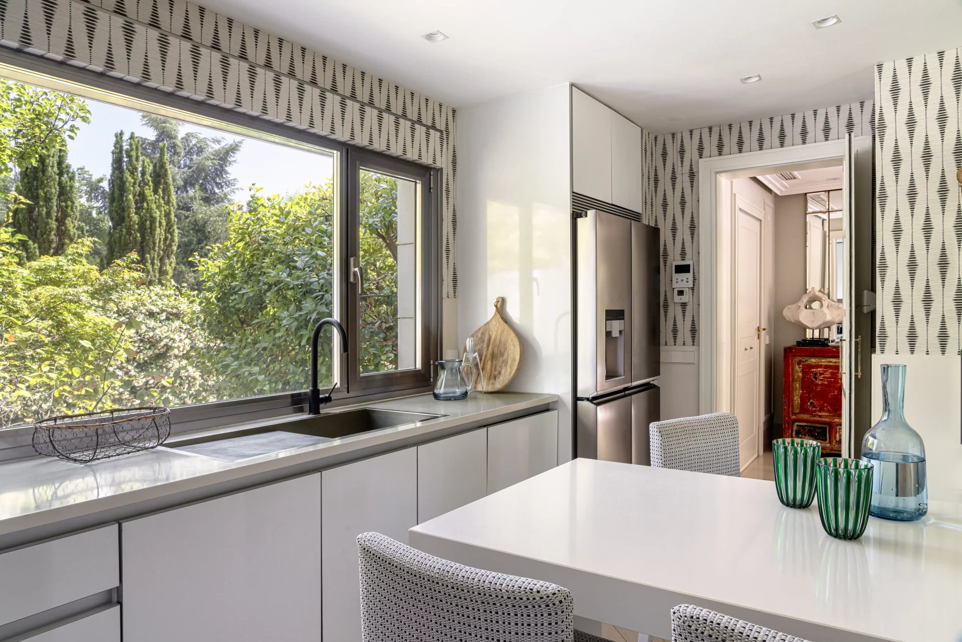 Architecture, interior design and landscaping project carried out with design pieces and materials of the highest quality, light oak and stone flooring, satin steel windows, lacquered cabinets and doors, electric security shutters and motorized awnings. The glazed patios and large windows bring great luminosity to the property.