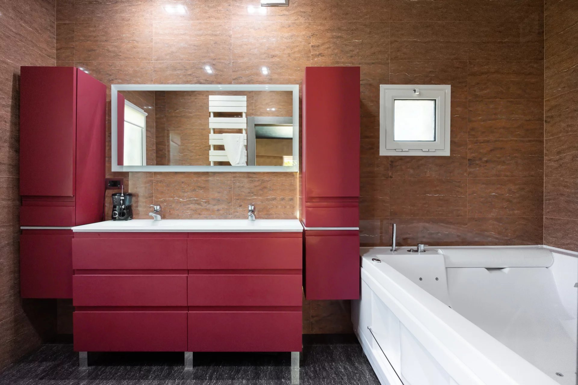 In the heart of Mandelieu-La Napoule, in a sought-after residential area, in a private, secure estate with caretaker, superb single-storey villa featuring a vast living area with fireplace and high ceilings, a cosy outdoor patio area, a vast kitchen, guest wc, two bedrooms, bathroom and en suite bedroom with bathroom and dressing room.