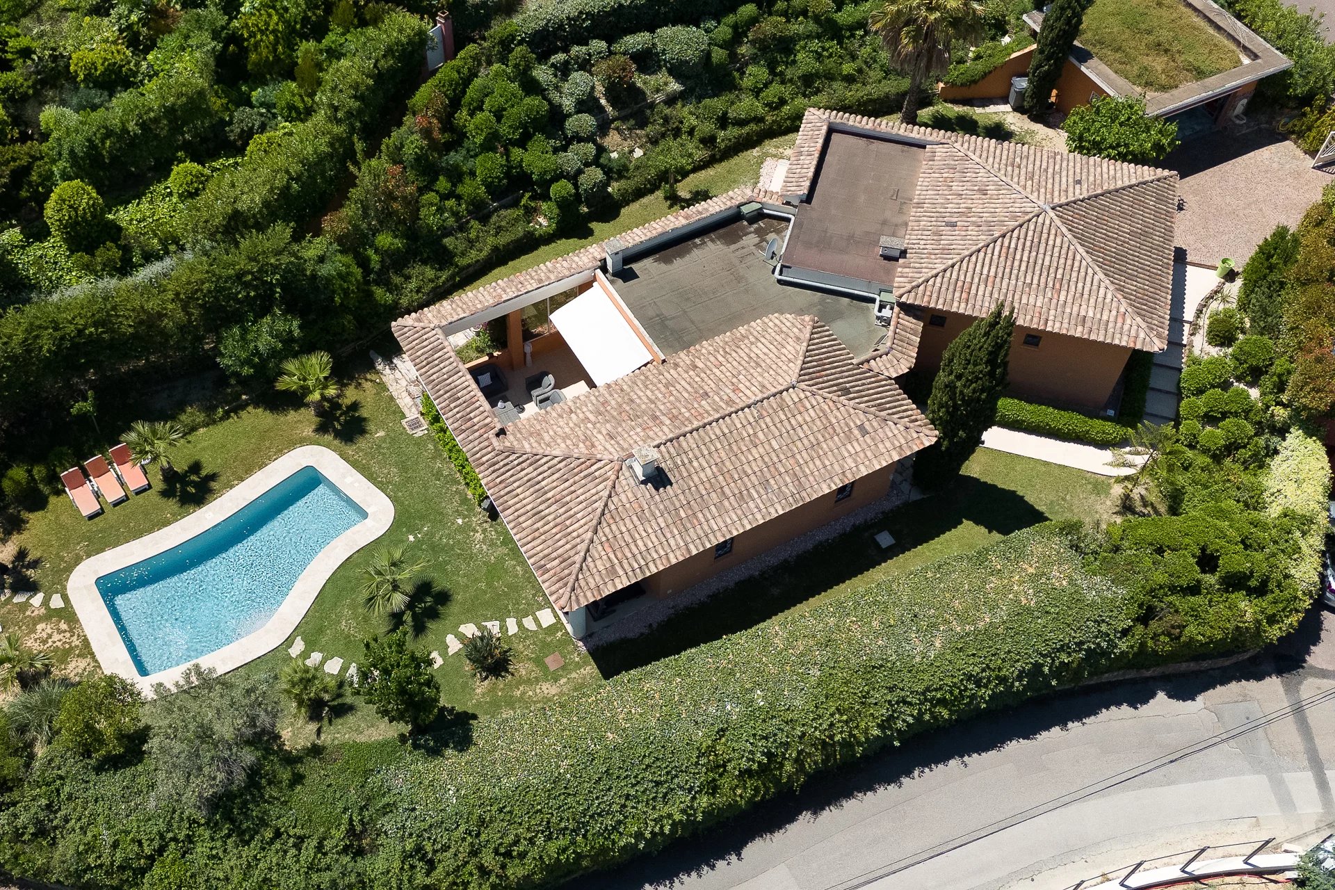 A swimming pool, enclosed grounds of 1,235m2, a two-car garage and parking spaces are just some of the features on offer in this exceptional property close to shops, schools, golf courses and beaches. Just 20 minutes from the Croisette and 30 minutes from Nice airport.