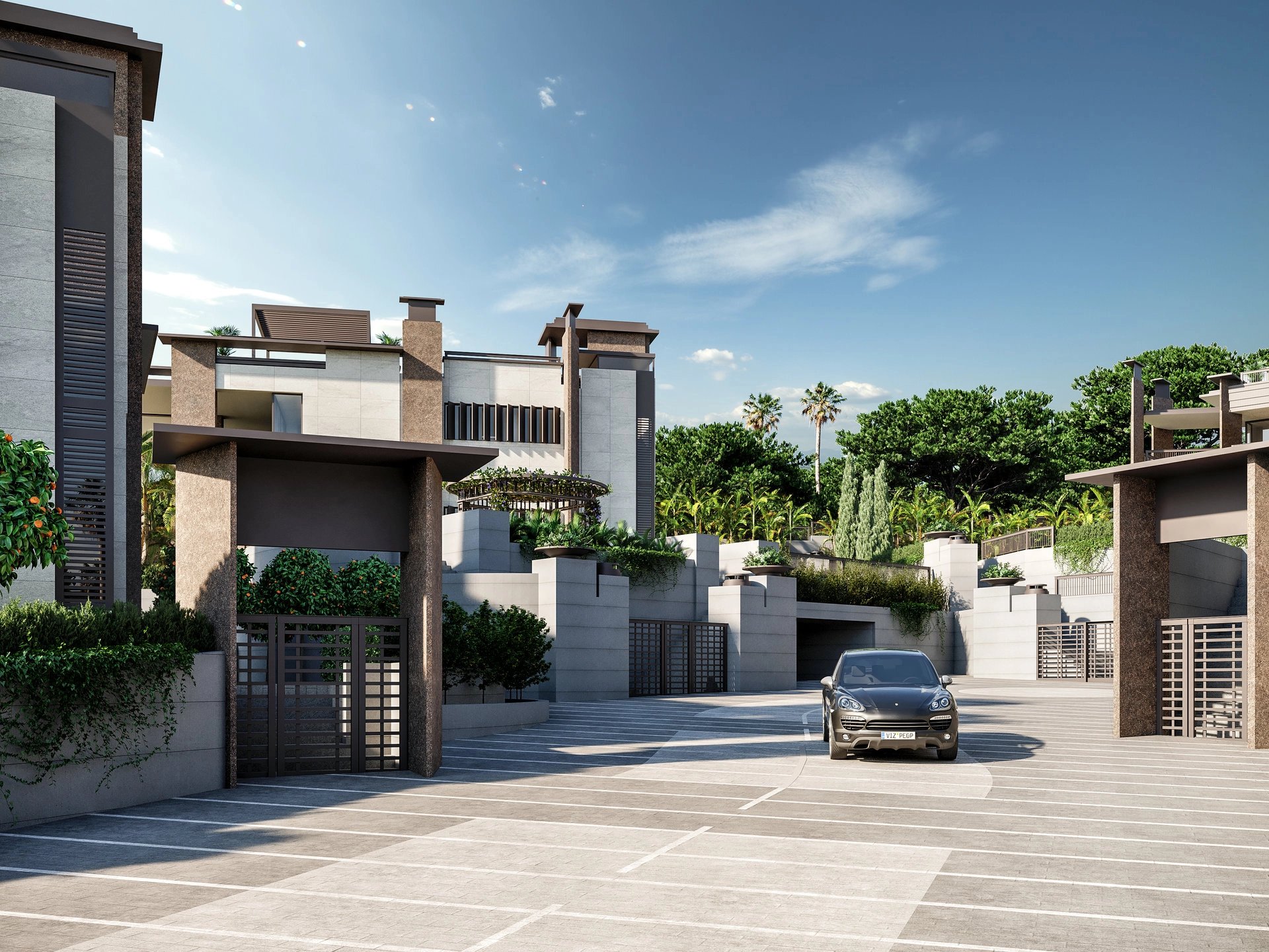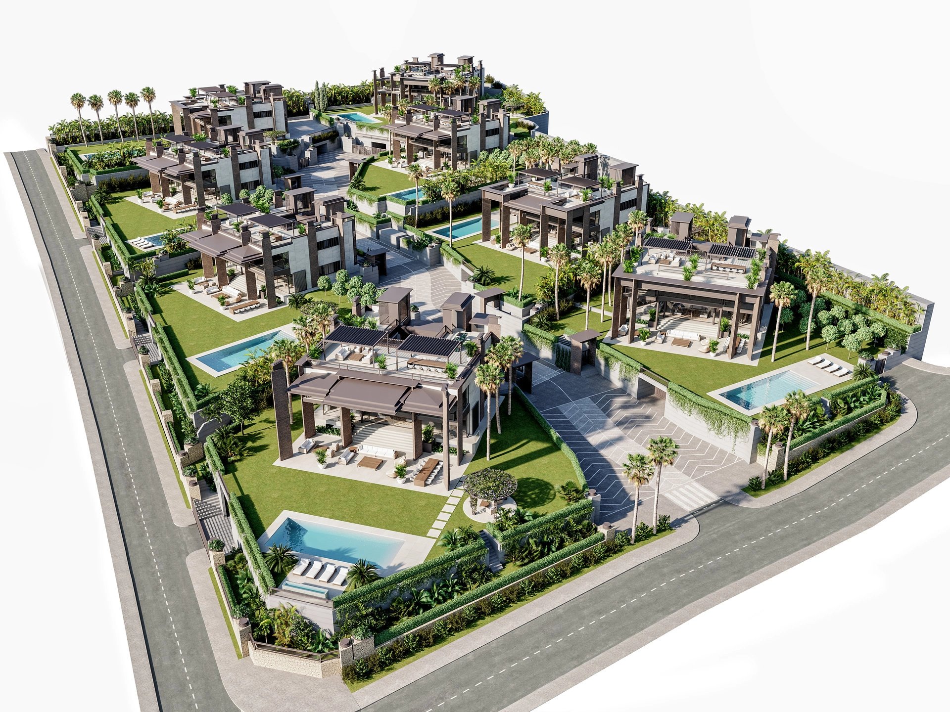 They are luxurious villas built in a modern style with natural materials of the highest quality, conserving all the attributes of a classic Mediterranean mansion with its proportions, galleries, patios and gardens.