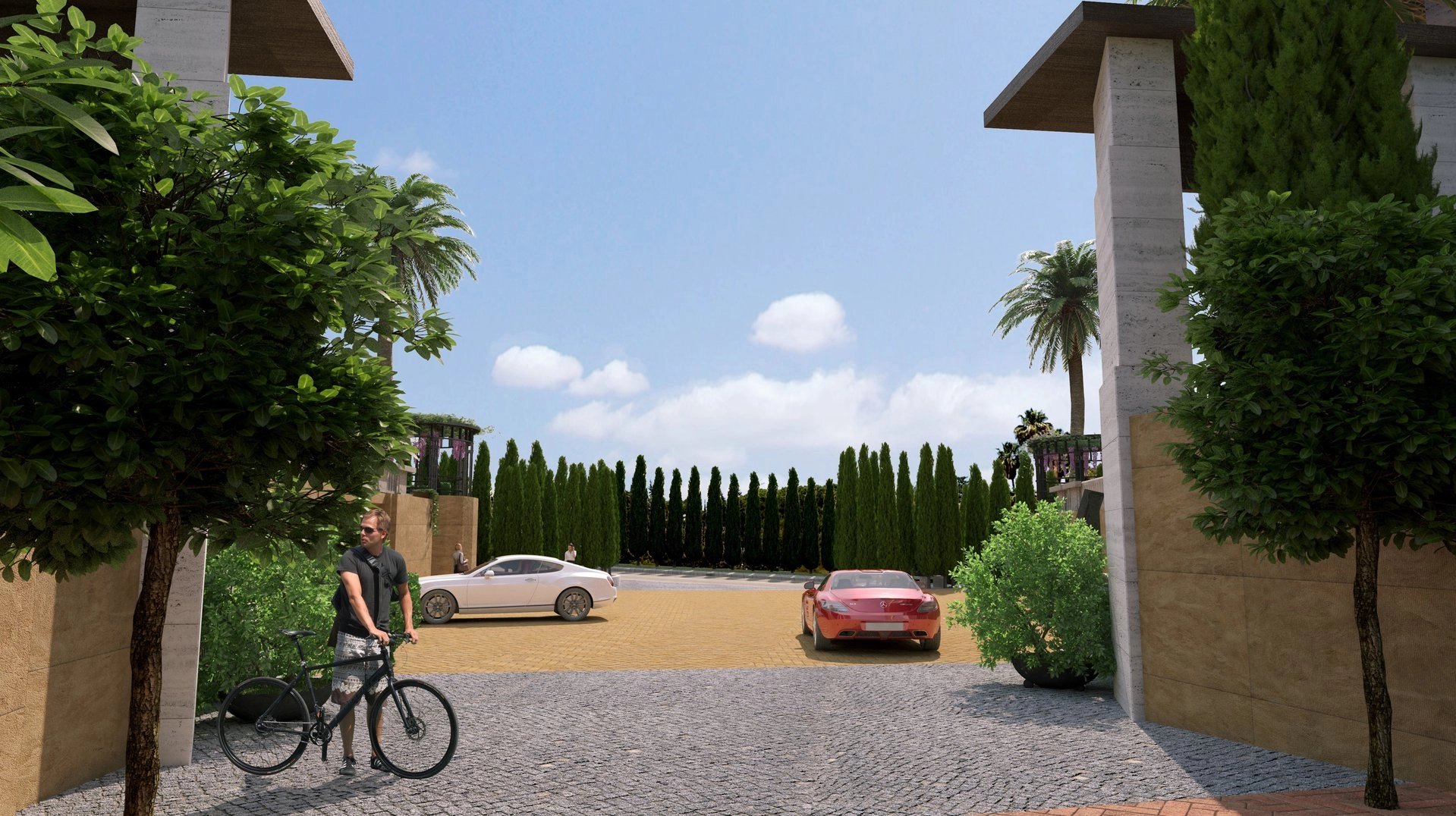 Each villa is unique in its architecture and has special characteristics that distinguish it from neighbouring houses. Several porches, terraces and patios, different shapes of swimming pools and relaxation areas, varied vegetation in the gardens.