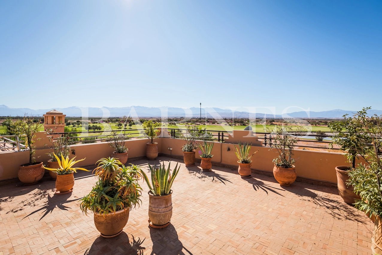 The rooftop terrace is designed as a reception area to enjoy the view of the golf course and the Atlas Mountains.