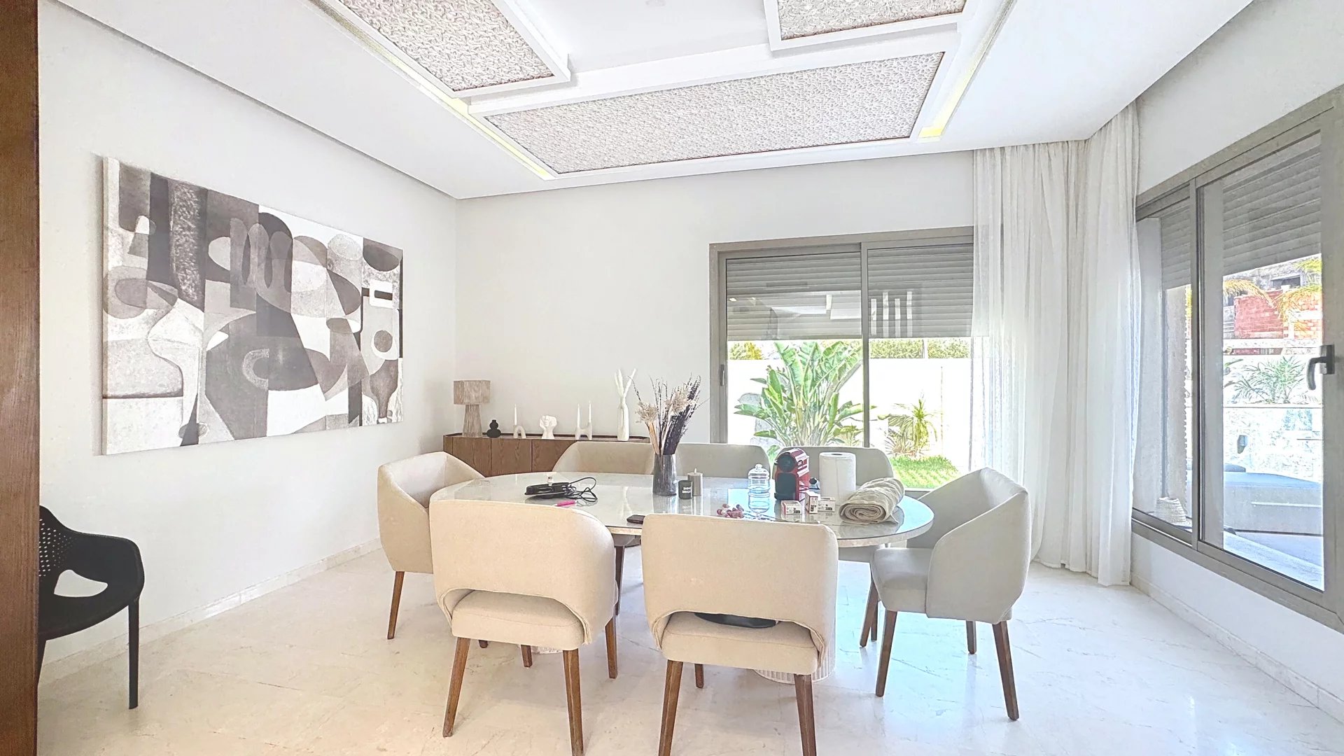 Located on the highly sought-after Route de l’Ourika, just 20 minutes from downtown Marrakech (km 12), this elegant detached villa offers a peaceful lifestyle, combining comfort and refinement.