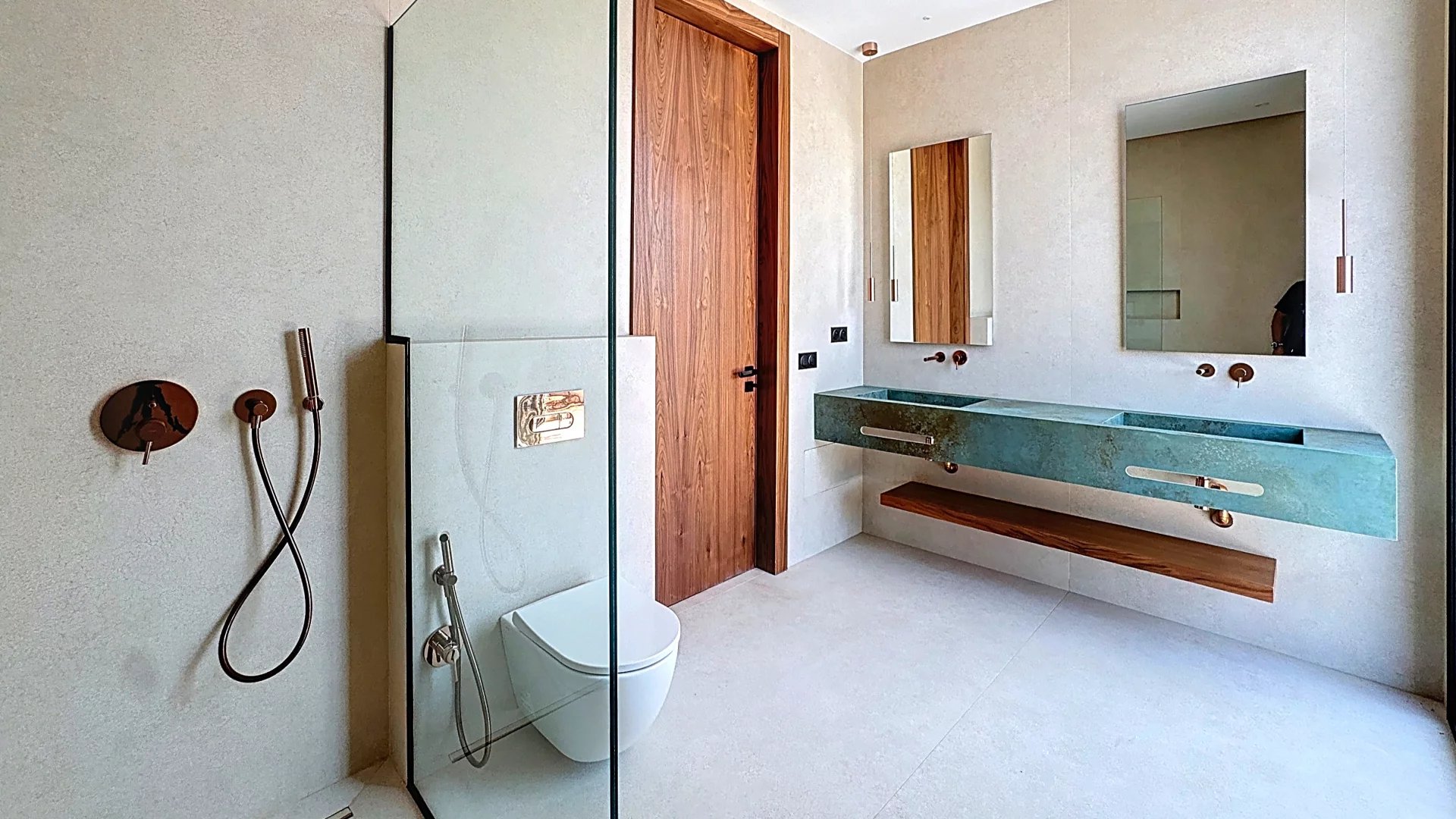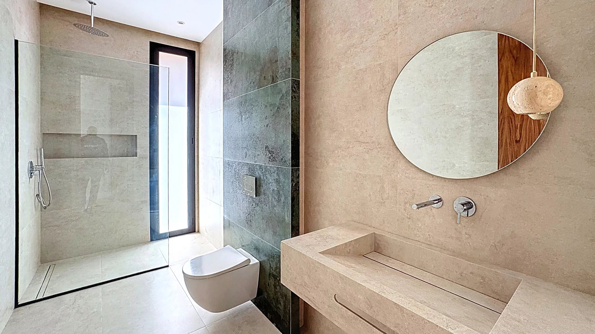 The ground floor features a guest suite with a private bathroom and a traditional hammam. Upstairs, four elegant suites, including a sumptuous master suite with a dressing room and a view of the pool, complete the night area. A spacious living room with a fireplace, a high-end kitchen, and a refined dining area add to the villa’s charm.