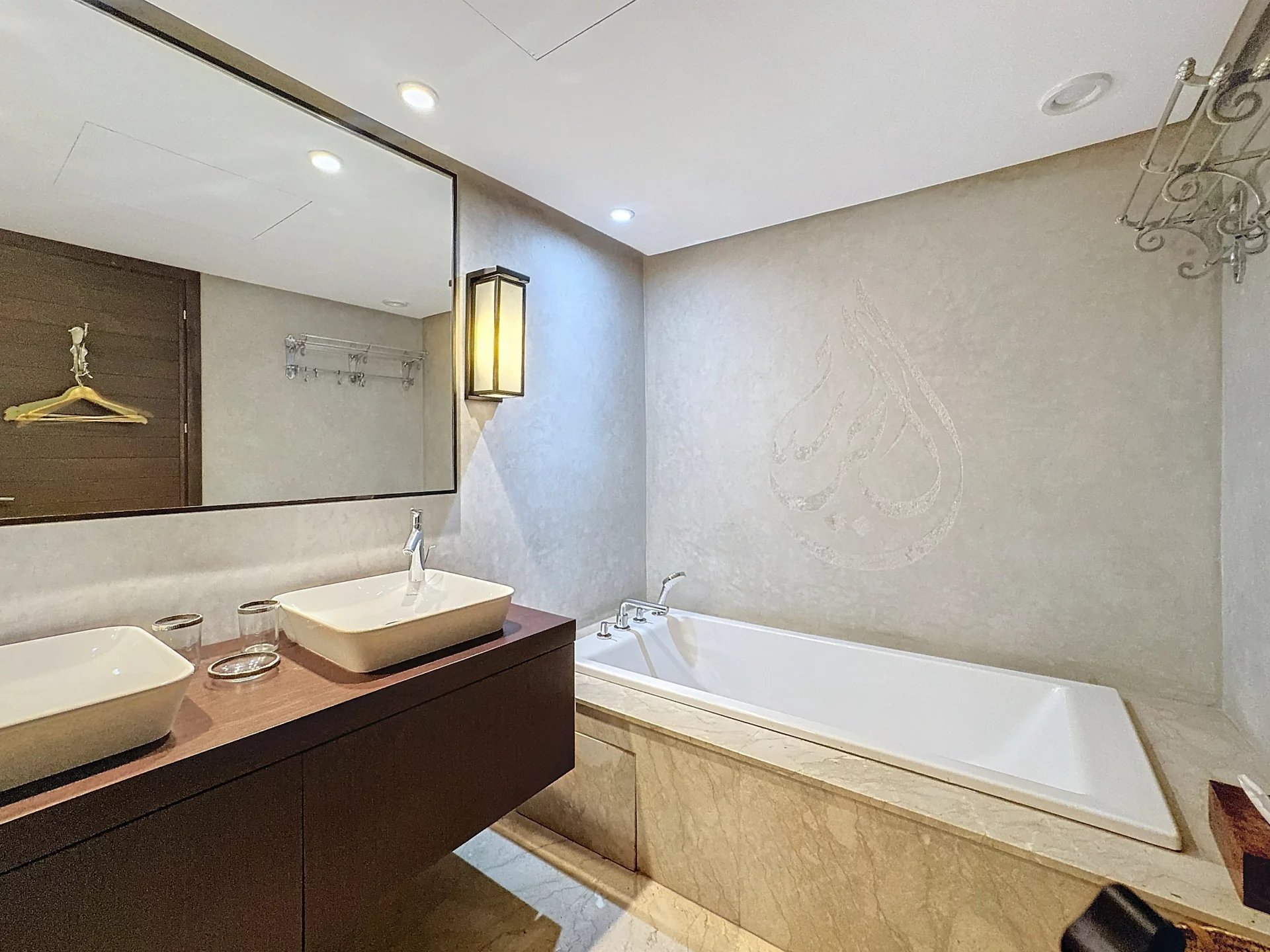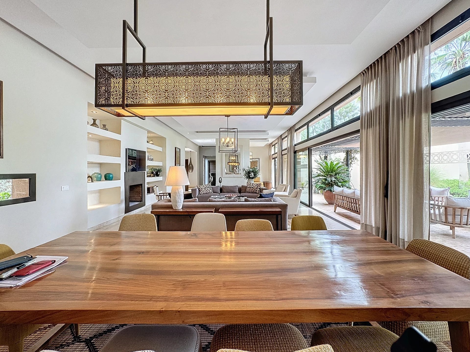 Among its many high-end features, the villa includes a fully equipped kitchen, a massage room, a traditional Beldi hammam, and a covered garage. Modern comfort is ensured with reversible air conditioning in all rooms and a fireplace in the living room.