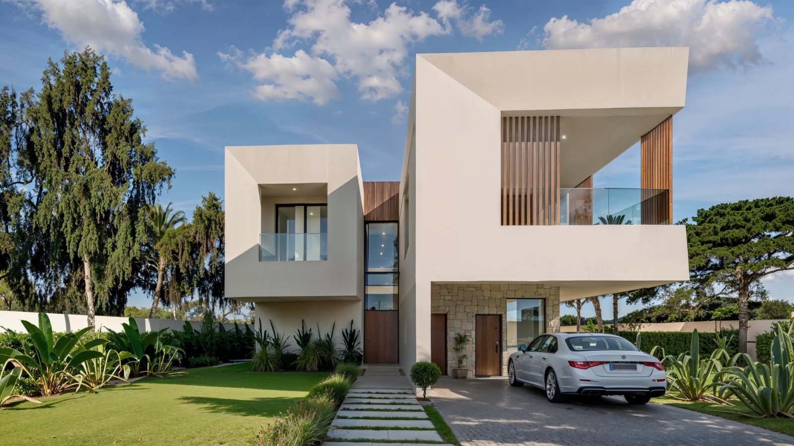 This contemporary villa blends sleek design with clean lines, set within a fully enclosed garden ensuring complete privacy. The property sits on a 1,250 m² plot and offers 670 m² of living space, including 265 m² of covered terrace and a garage.