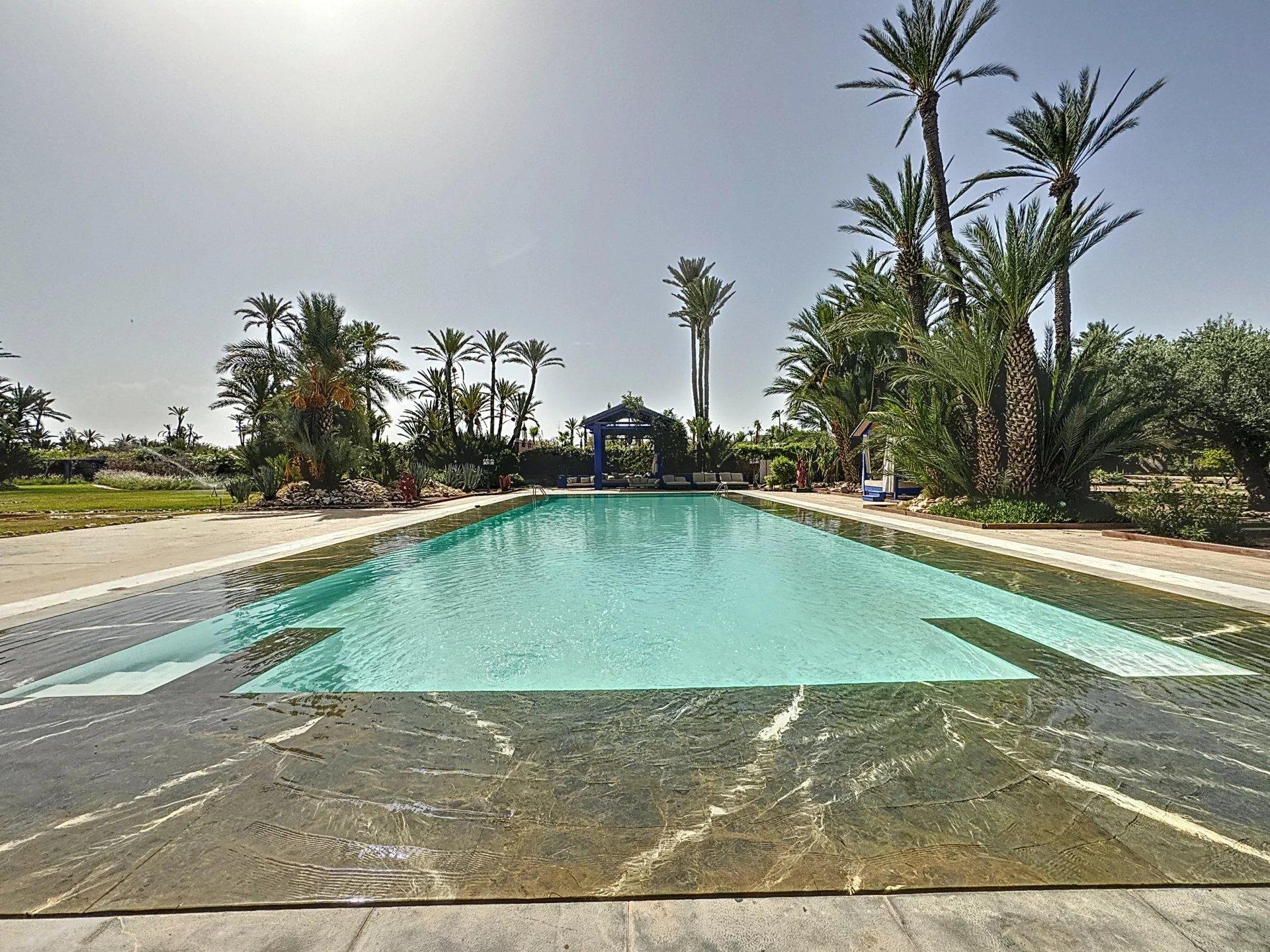 This stunning property, set on a vast 20,000 m² plot, is a true oasis of tranquility. The spacious pool offers breathtaking views of the Atlas Mountains, adding to the allure of this magnificent space.