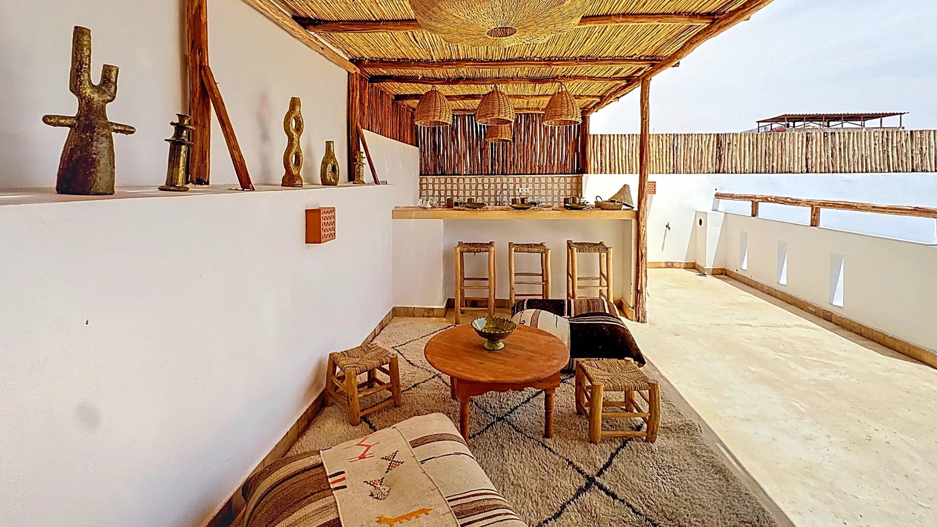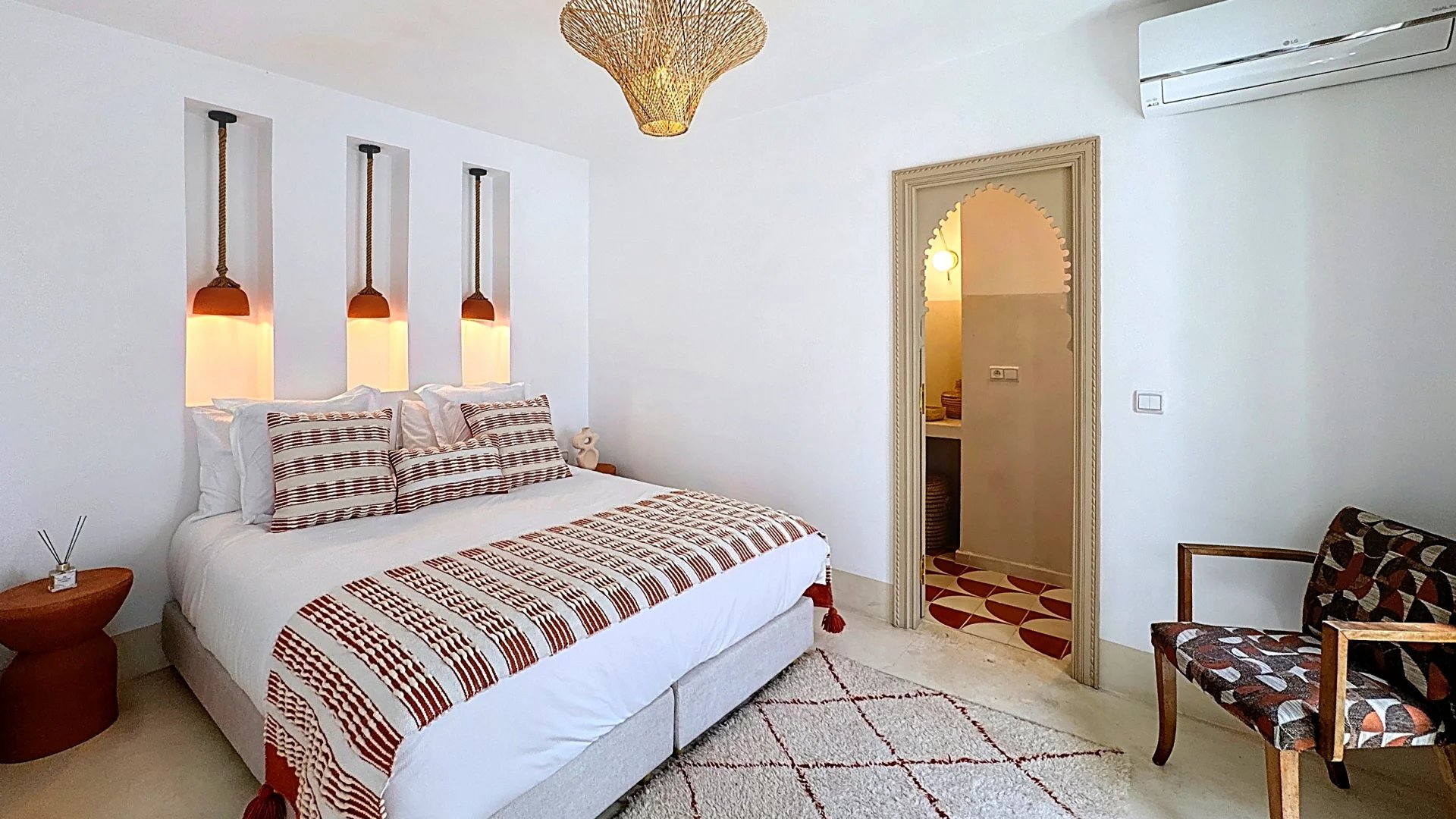 Nestled in the heart of the Kasbah, one of the most sought-after areas of the Marrakech Medina, this charming “Beldi Chic” riad embodies natural Moroccan elegance, subtly reinterpreted with a contemporary flair.
