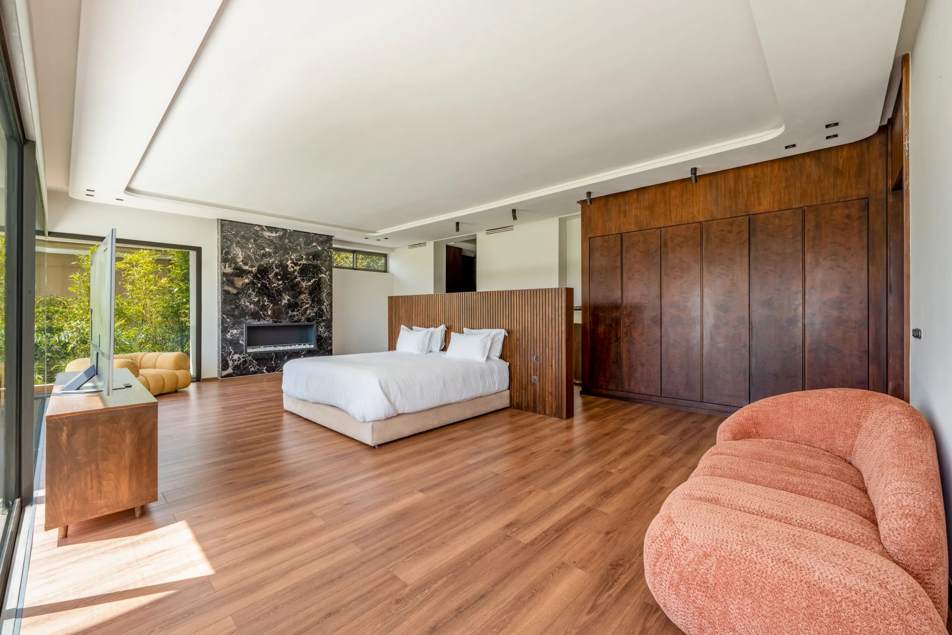 The villa also stands out for the quality of its interior features: finely crafted marble, American walnut woodwork, top-of-the-line appliances, and carefully curated furniture.
