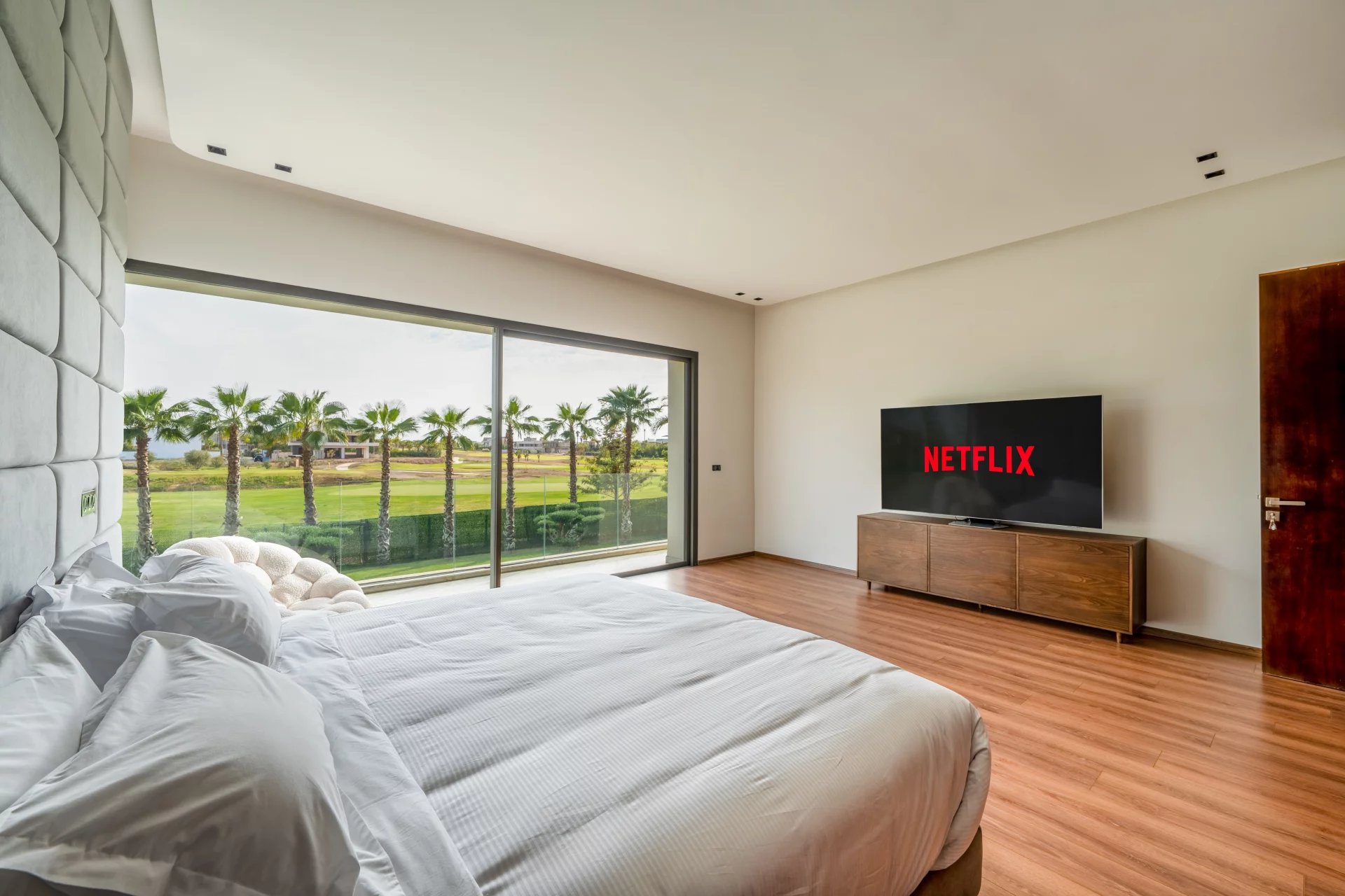 Ideally located on the golf front, this villa will captivate you from the very first moment with its brightness, generous volumes, and elegant architecture. Each suite has been designed to offer optimal comfort, using noble materials and a sleek, contemporary decor.